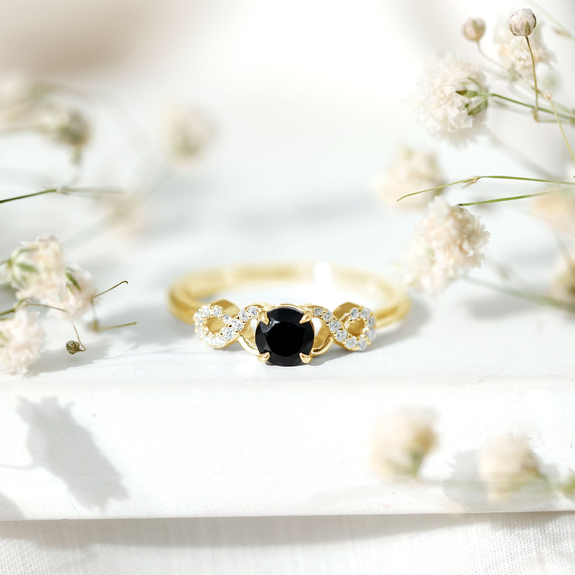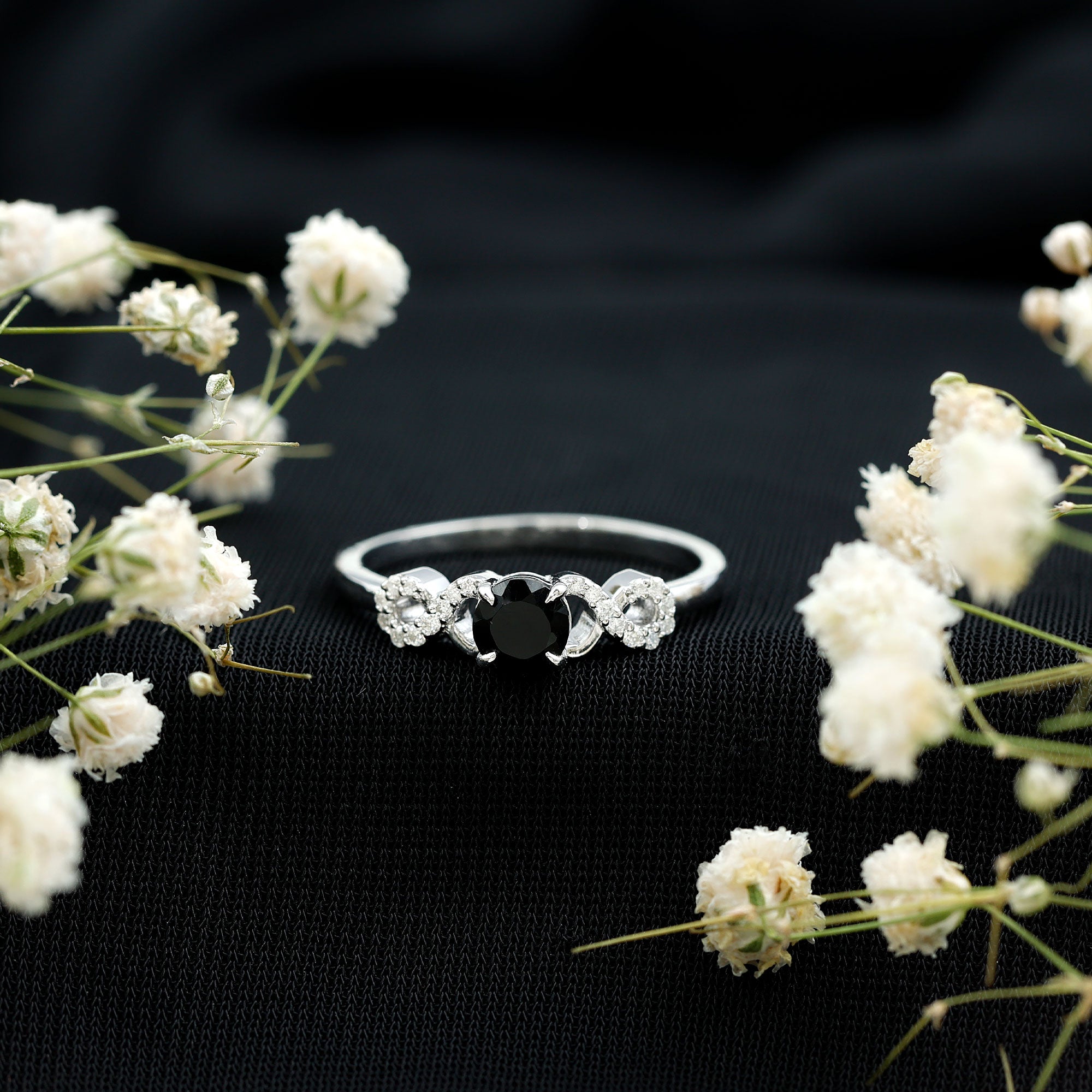 1/2 CT Black Onyx and Diamond Criss Cross Engagement Ring