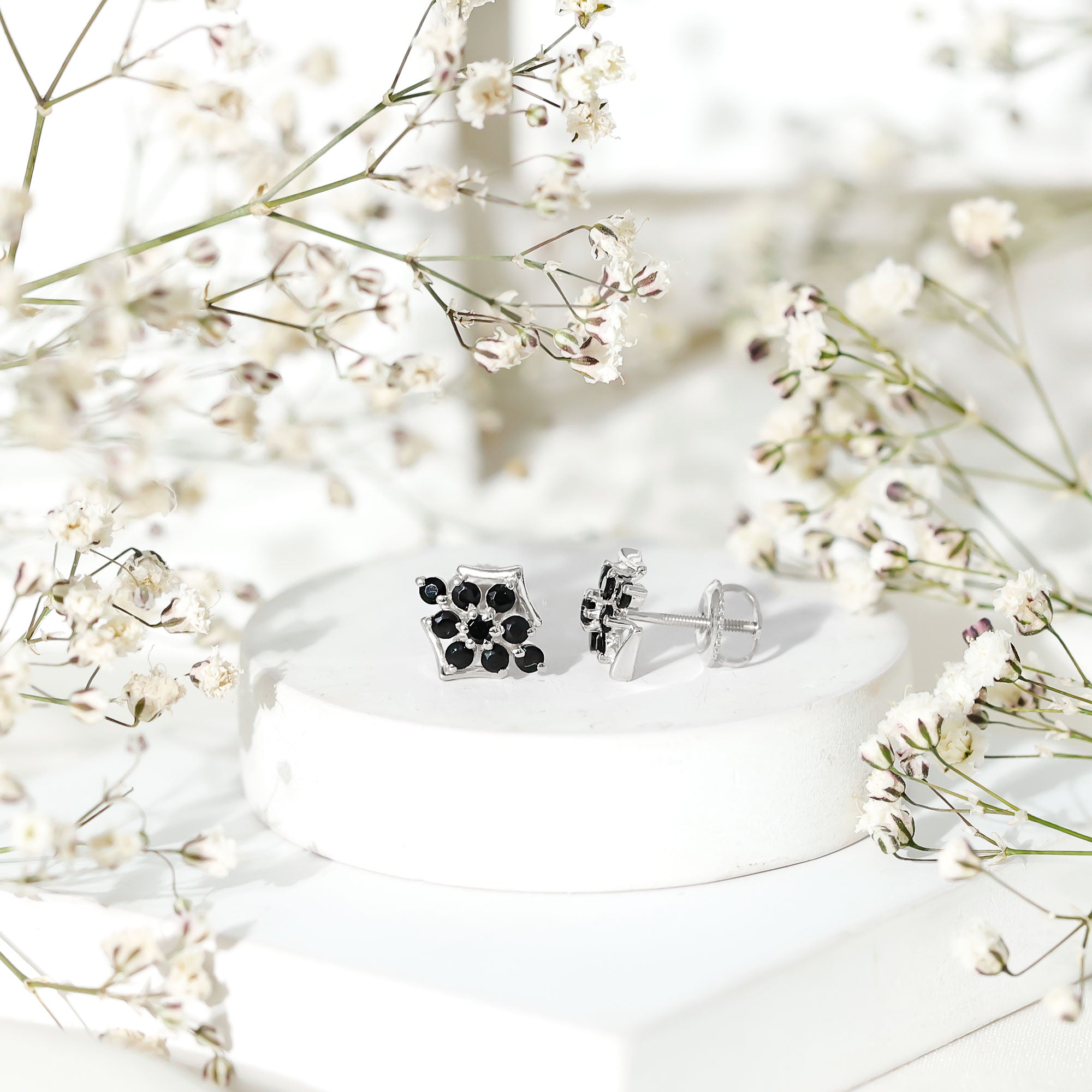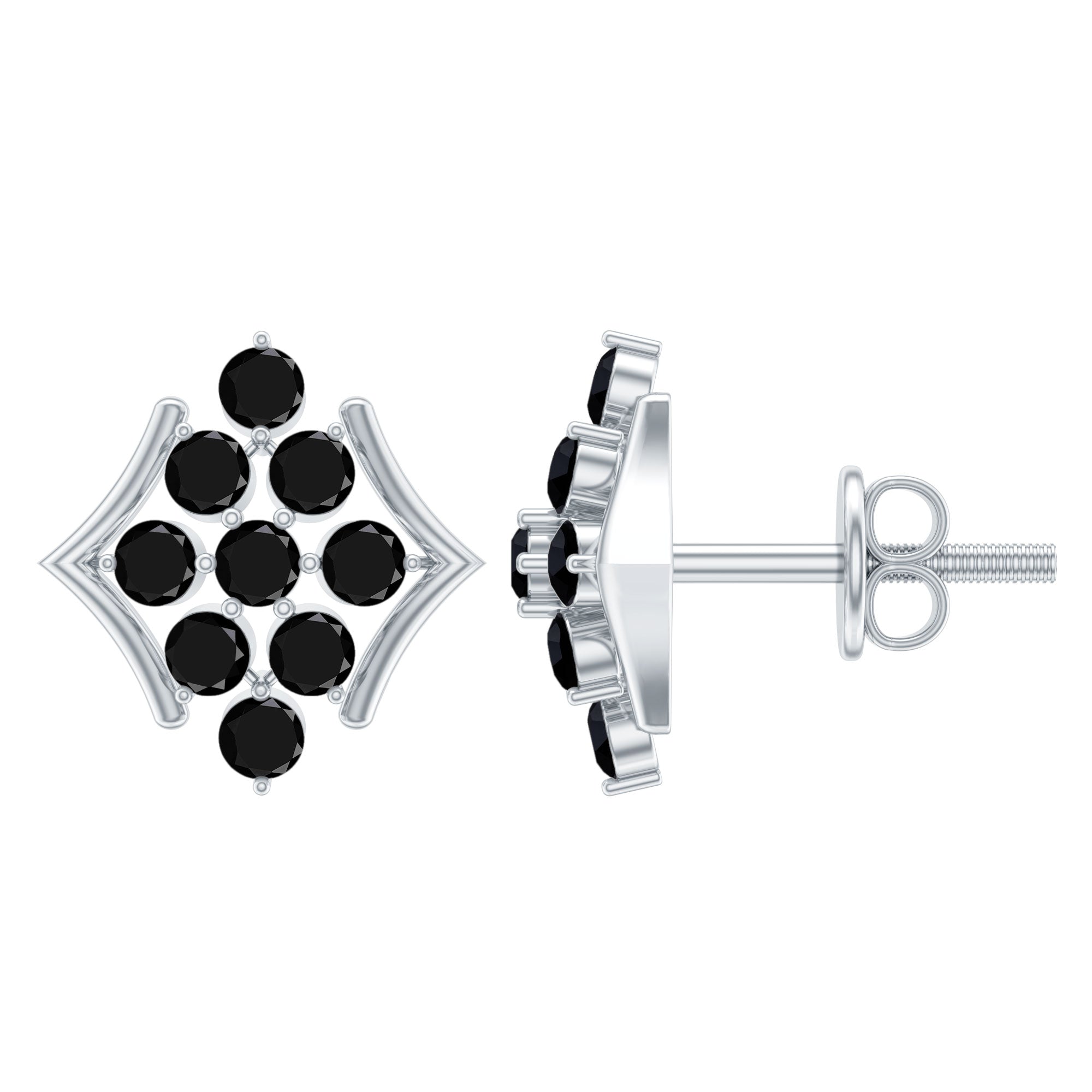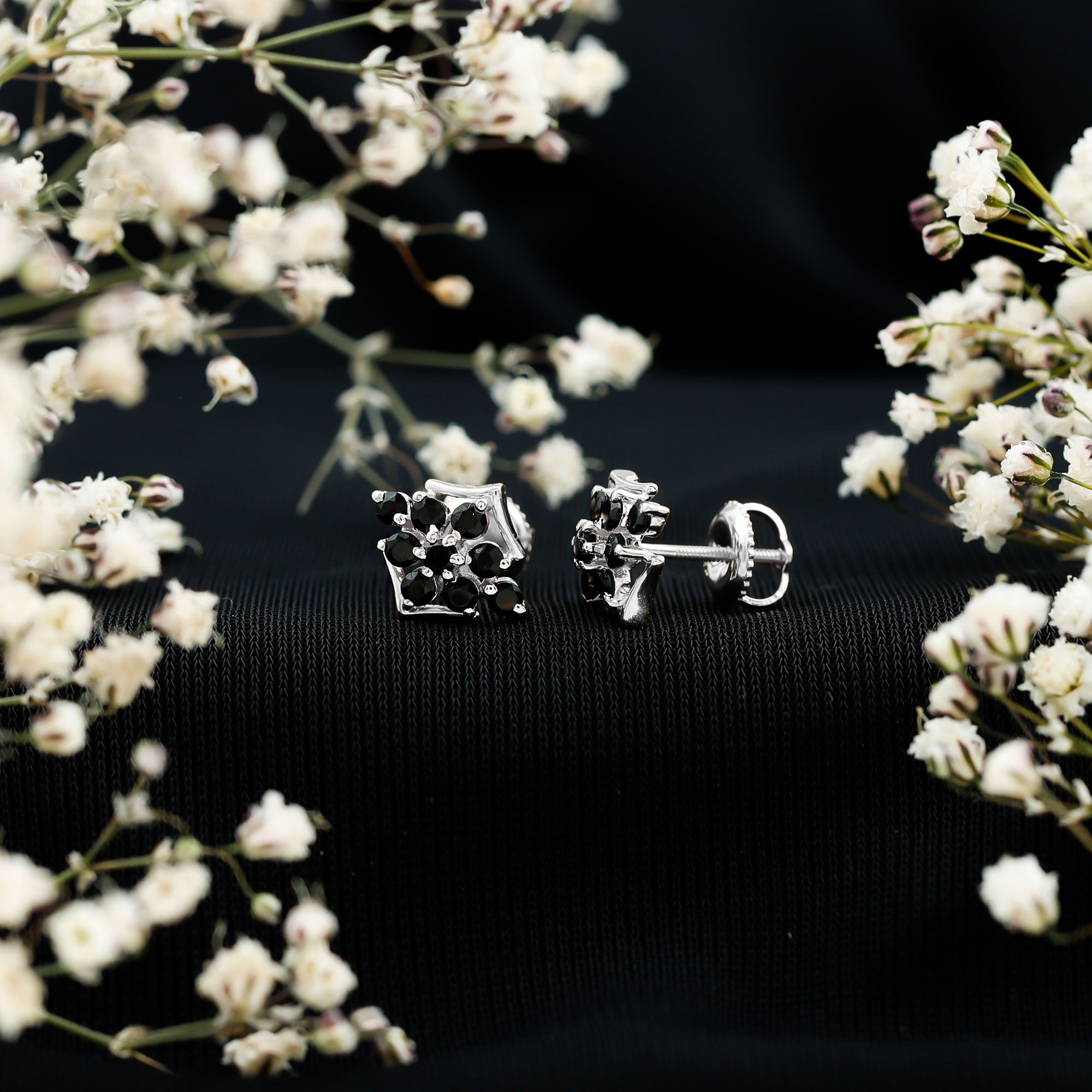 1/2 CT Black Onyx Cluster Stud Earrings