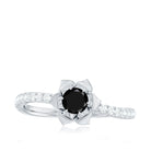1/2 CT Black Spinel and Diamond Flower Engagement Ring