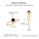 The Perfect Combination of Black Spinel and Diamond in this Rose Flower Ring is mesmerizing. The Round Natural Black Spinel is set in the Centre of Gold Petals of a Rose Flower in the curved shank. Get this Floral Inspired Engagement Ring for your Blooming Lady Love, this Black Spinel and Diamond Engagement Ring is a stunning piece of jewelry, which she will cherish her whole life.
