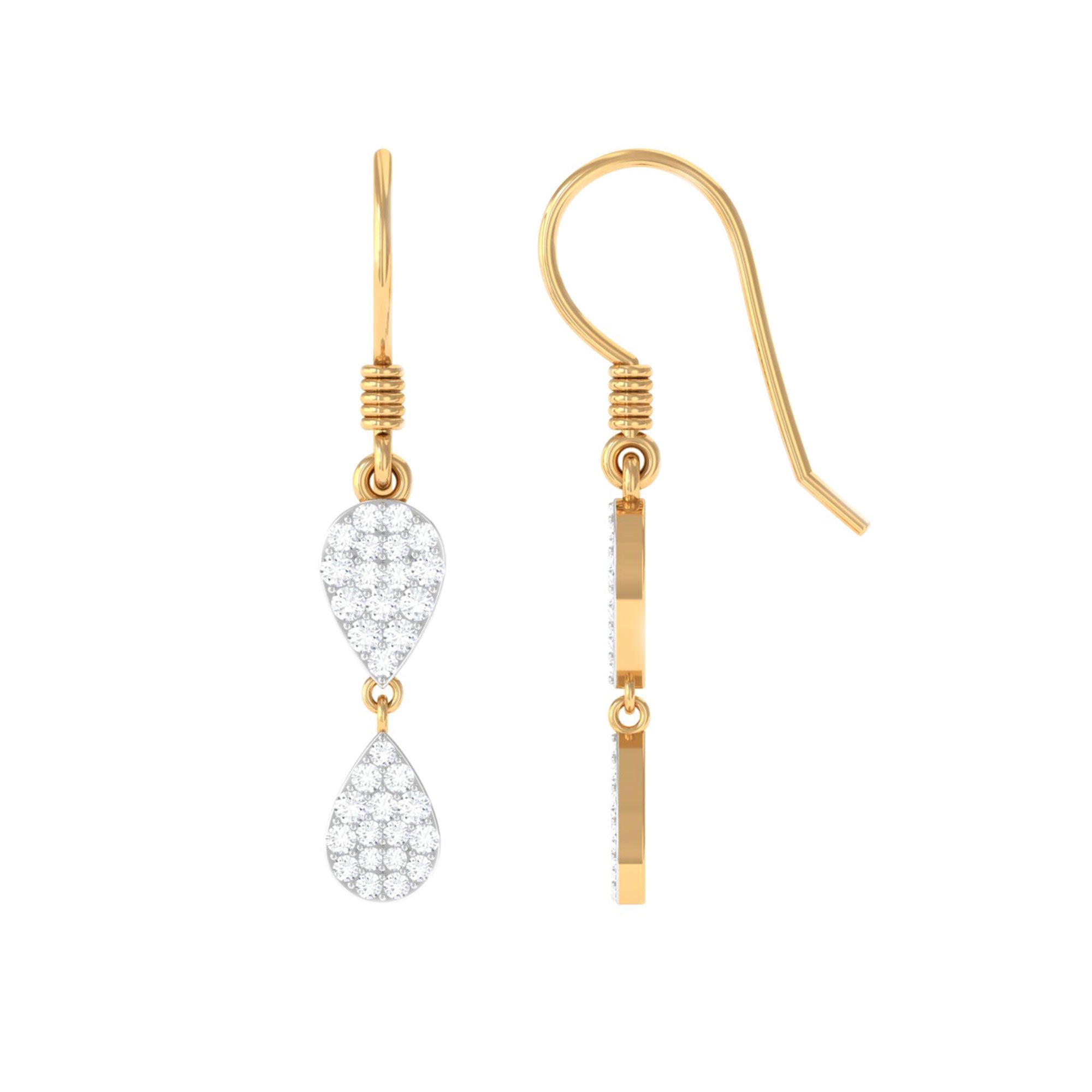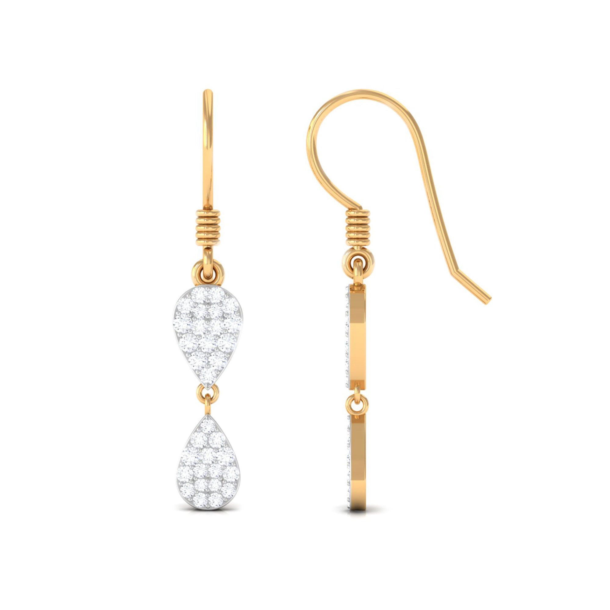 Enhance your look with our stunning Moissanite Dangle Earrings that radiate brilliance and dazzle. These Moissanite earrings feature a dangle pattern adorned with round Moissanite in a pave setting and secured with a fish hook. Made from solid gold, these drop earrings will add a touch of glamour to any outfit and make you shine brighter than ever before. Adorn yourself with these scintillating and dazzling earrings to make a statement and turn heads wherever you go.