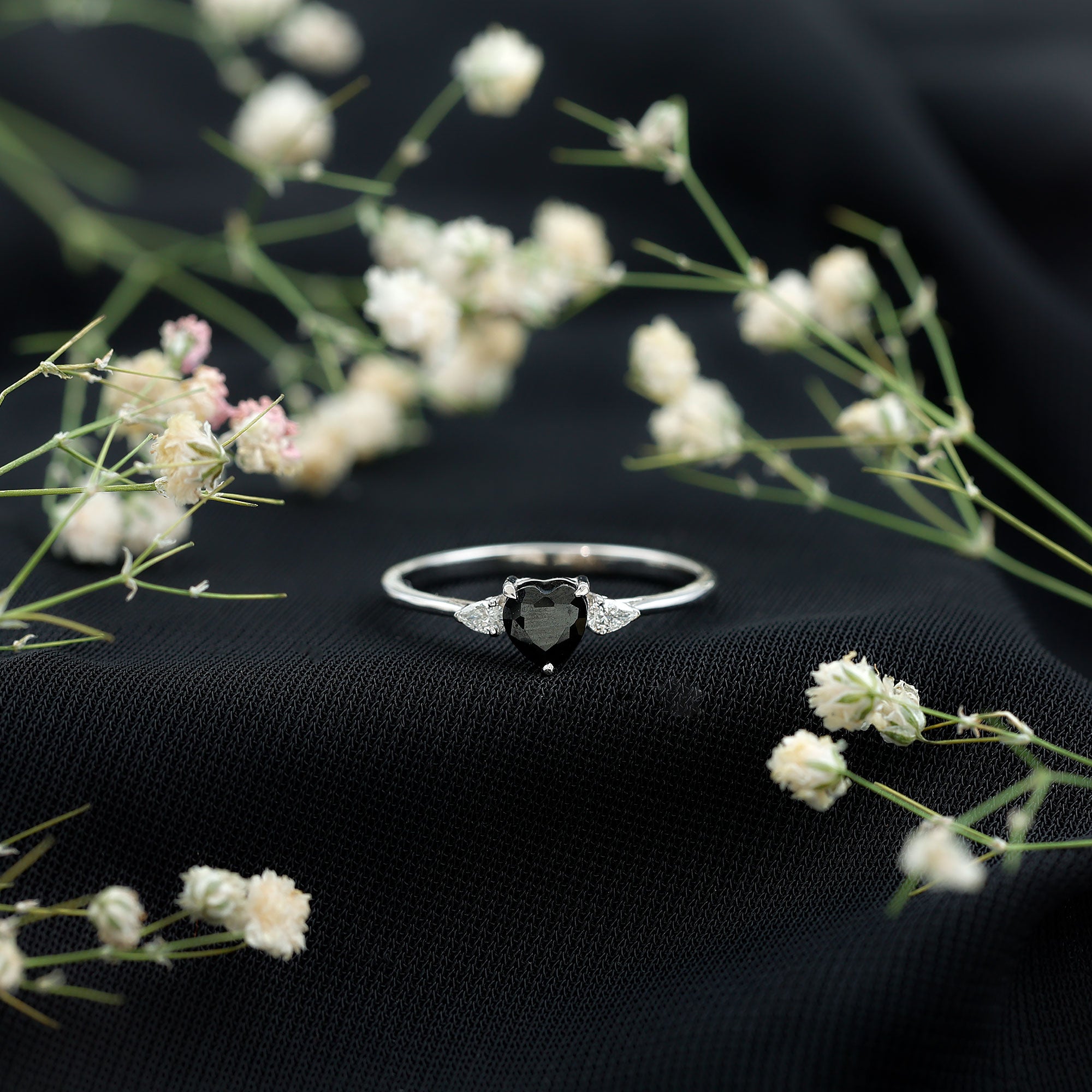 Heart Shape Created Black Diamond Promise Ring with Pear Diamond