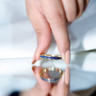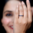 Make her feel Special by gifting her this Extra Ordinary beautiful Jewelry Piece which will tell her about your love. The ring is embellished with Round Cut Blue Sapphire in Channel Setting studded on the Half part of Ring.