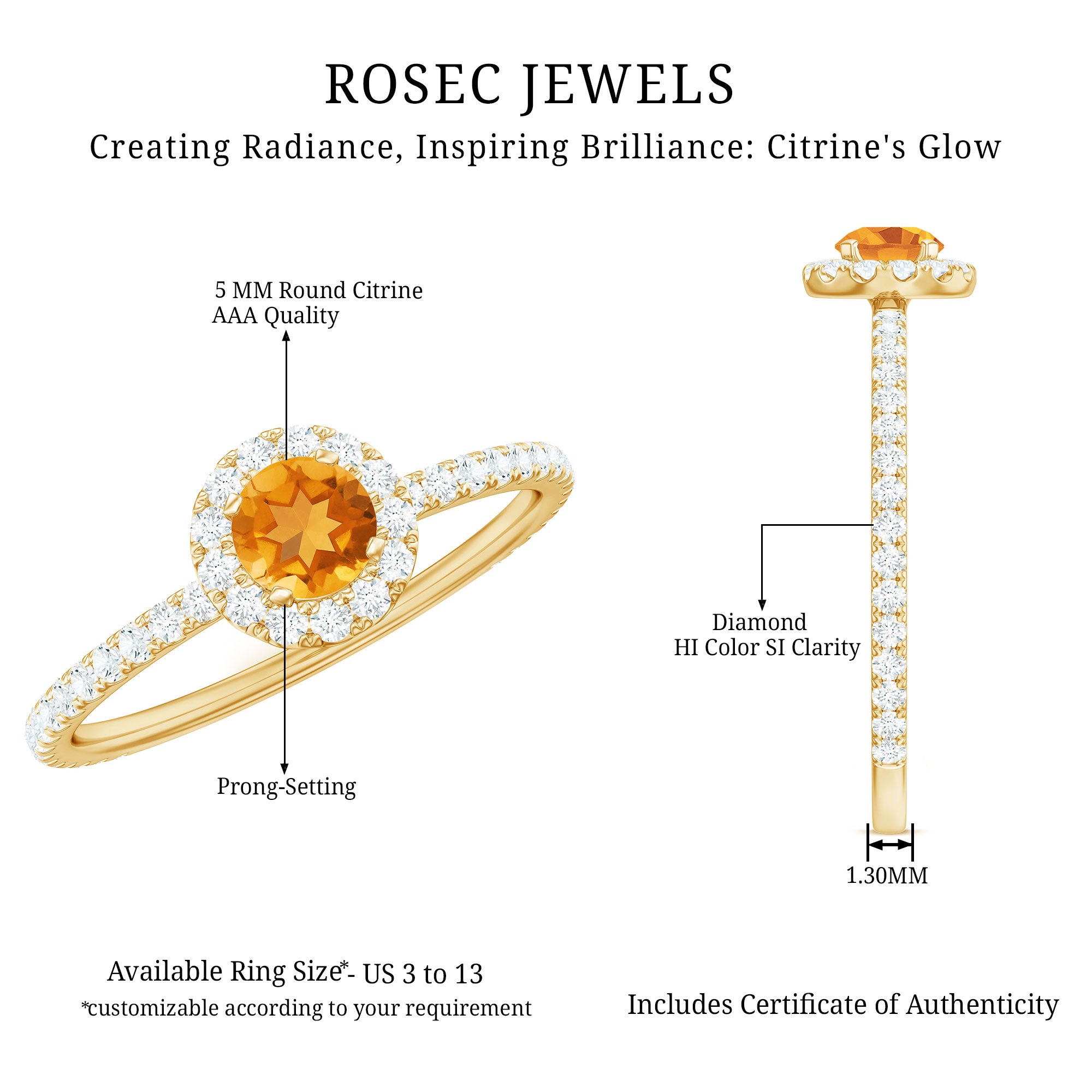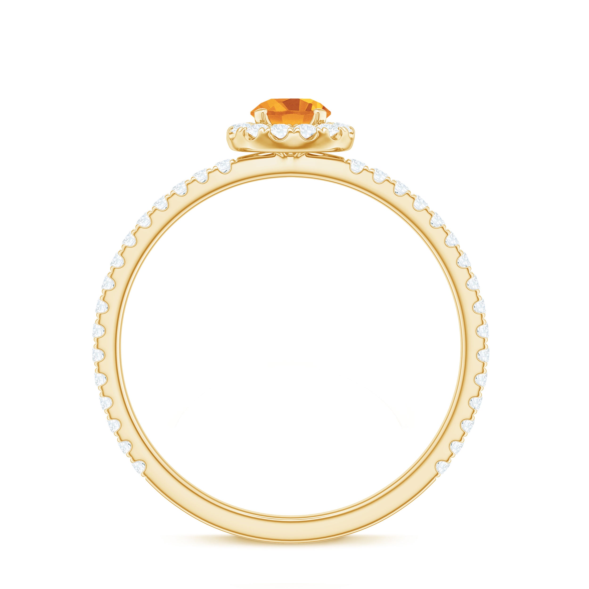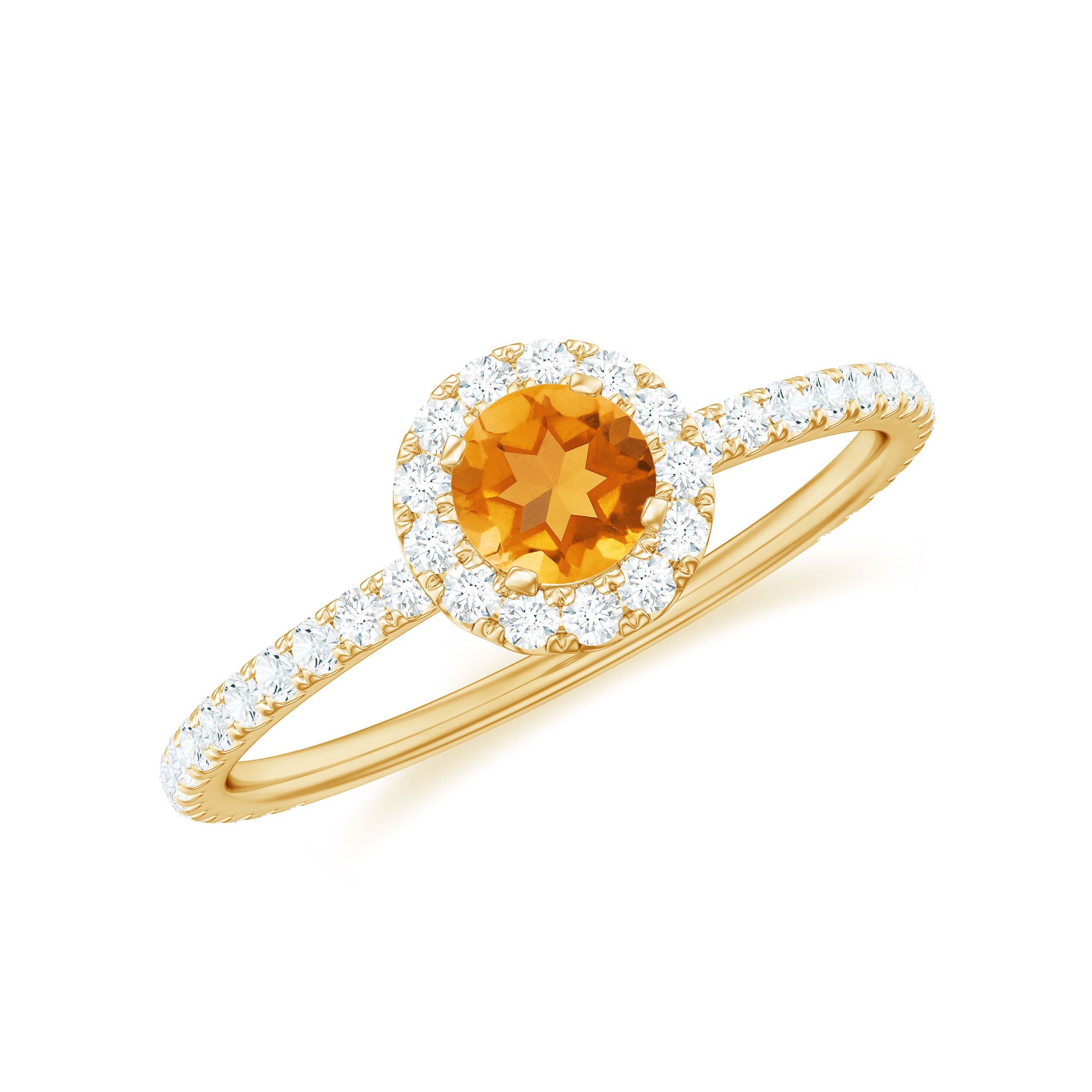 1/2 CT Citrine Solitaire Halo Ring with Diamond