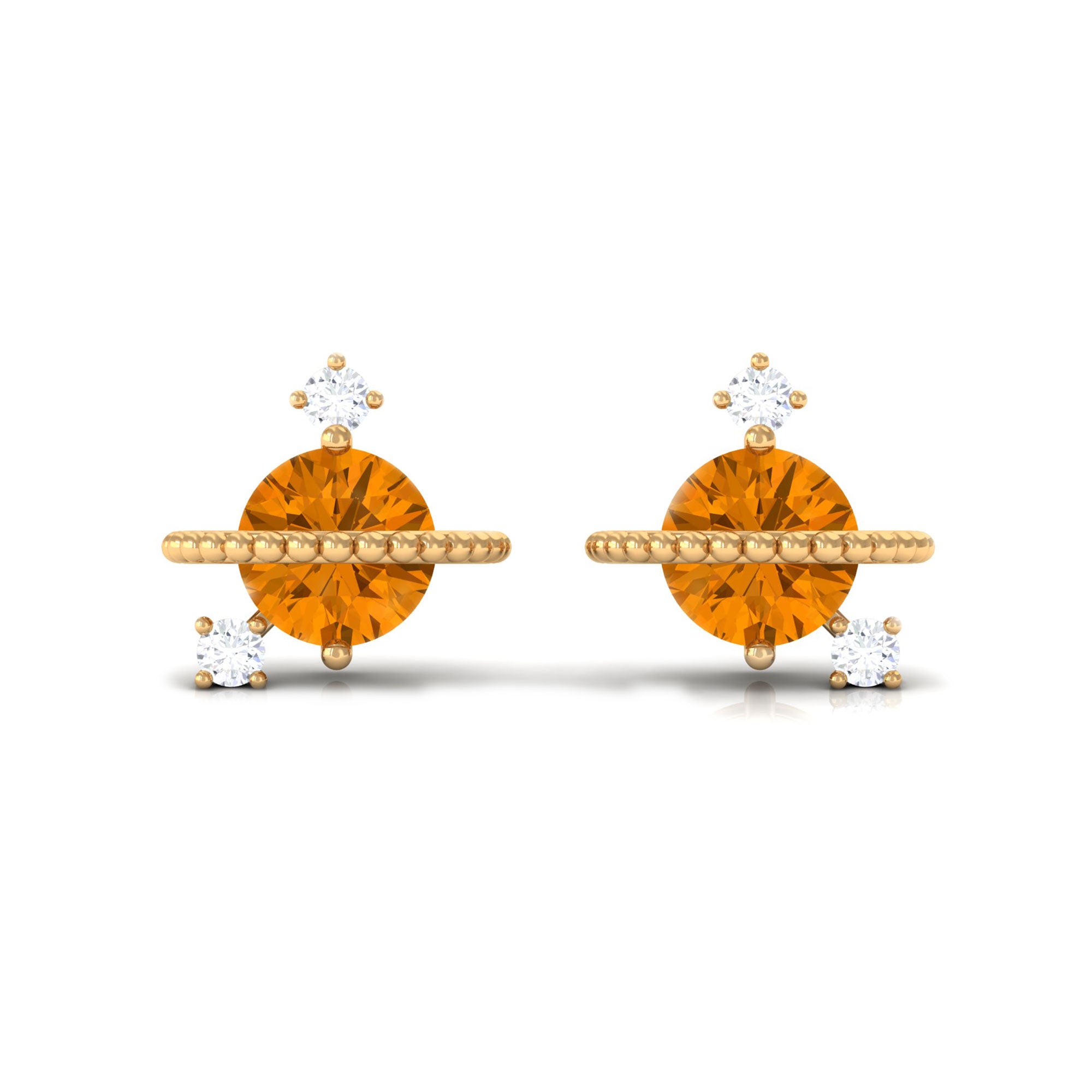 1/2 CT Contemporary Citrine and Diamond Celestial Stud Earrings