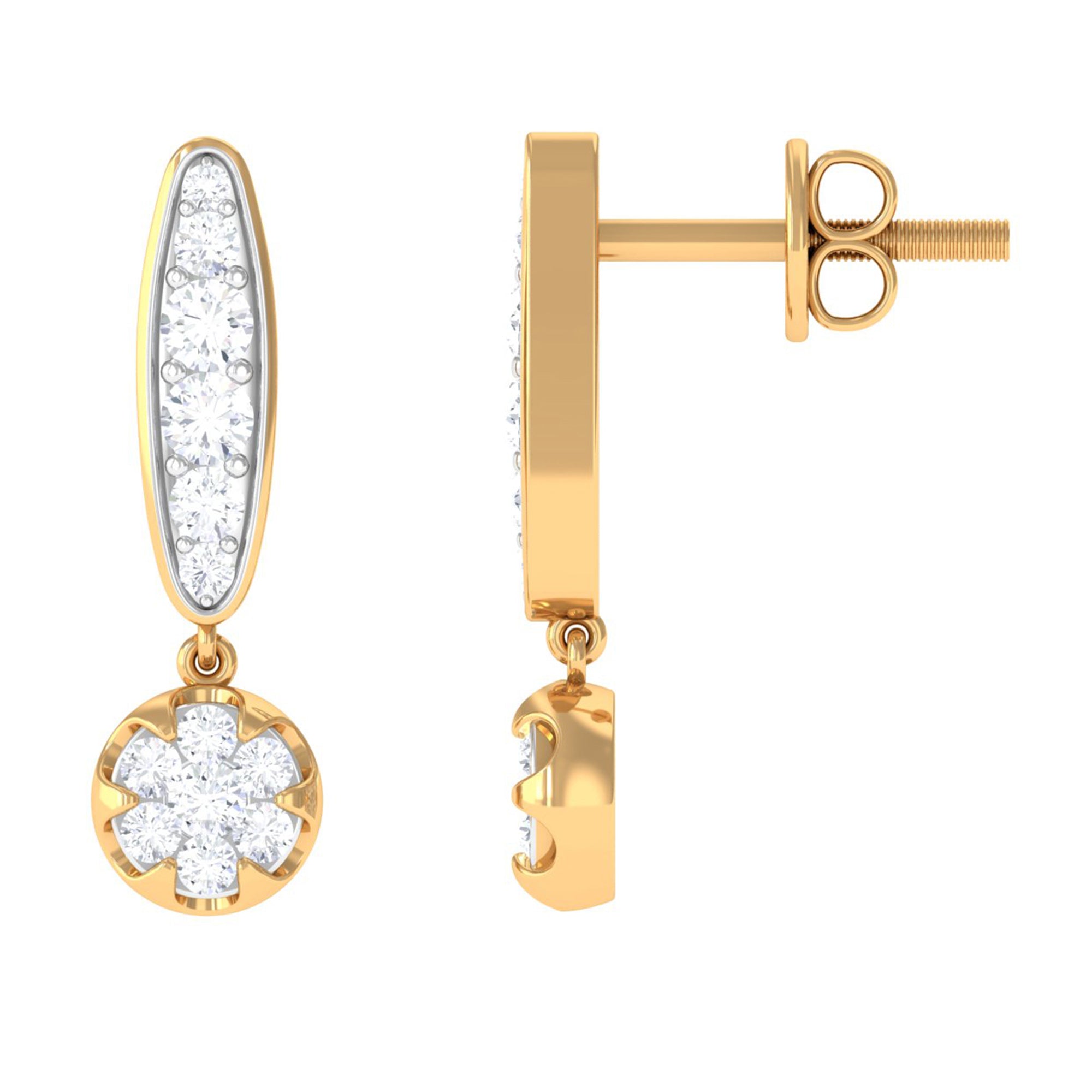 This Diamond Drop Earrings is adorned in Solid Gold with Round Cut Diamonds embellished in Prong Setting for you to curate an outstanding look.