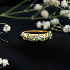 Timeless and full of meaning, this Emerald Half Eternity Ring captures the essence of elegance in every detail. Designed for those who appreciate beauty with timeless charm, it features round cut emerald stones, each stone symbolizing harmony, love, and renewal. The round cut emeralds are carefully placed in secure prong setting, forming a graceful band that shimmers softly with every movement. The half eternity design keeps the Emerald Wedding Band light and comfortable, perfect for daily wear or special occasions. What makes this Emerald Anniversary Ring truly captivating is the intricate filigree detailing along the band. The delicate metalwork, inspired by vintage artistry, adds texture, charm, and a touch of old-world romance to this modern classic. Crafted with precision, this Emerald Filigree Ring makes a wonderful wedding band, anniversary gift, or personal keepsake. Its deep green tones pair beautifully with metal, making it easy to style alone or stack with other rings. Whether you are celebrating a lifelong bond or simply want to treat yourself to something special, this Vintage Wedding Band embodies grace and lasting beauty.