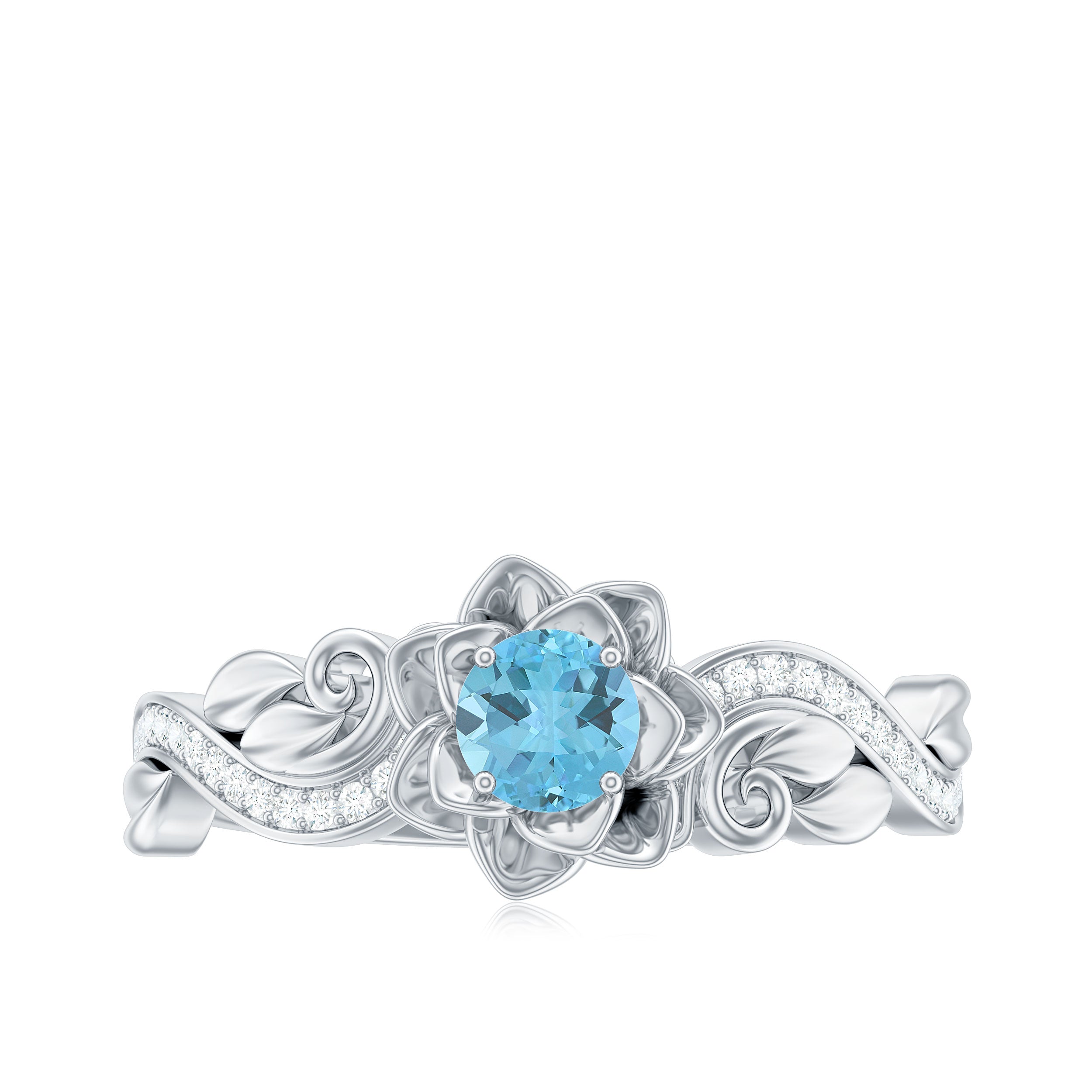 1/2 CT Floral Inspired Sky Blue Topaz and Diamond Engagement Ring
