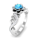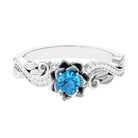 1/2 CT Floral Inspired Swiss Blue Topaz and Diamond Engagement Ring