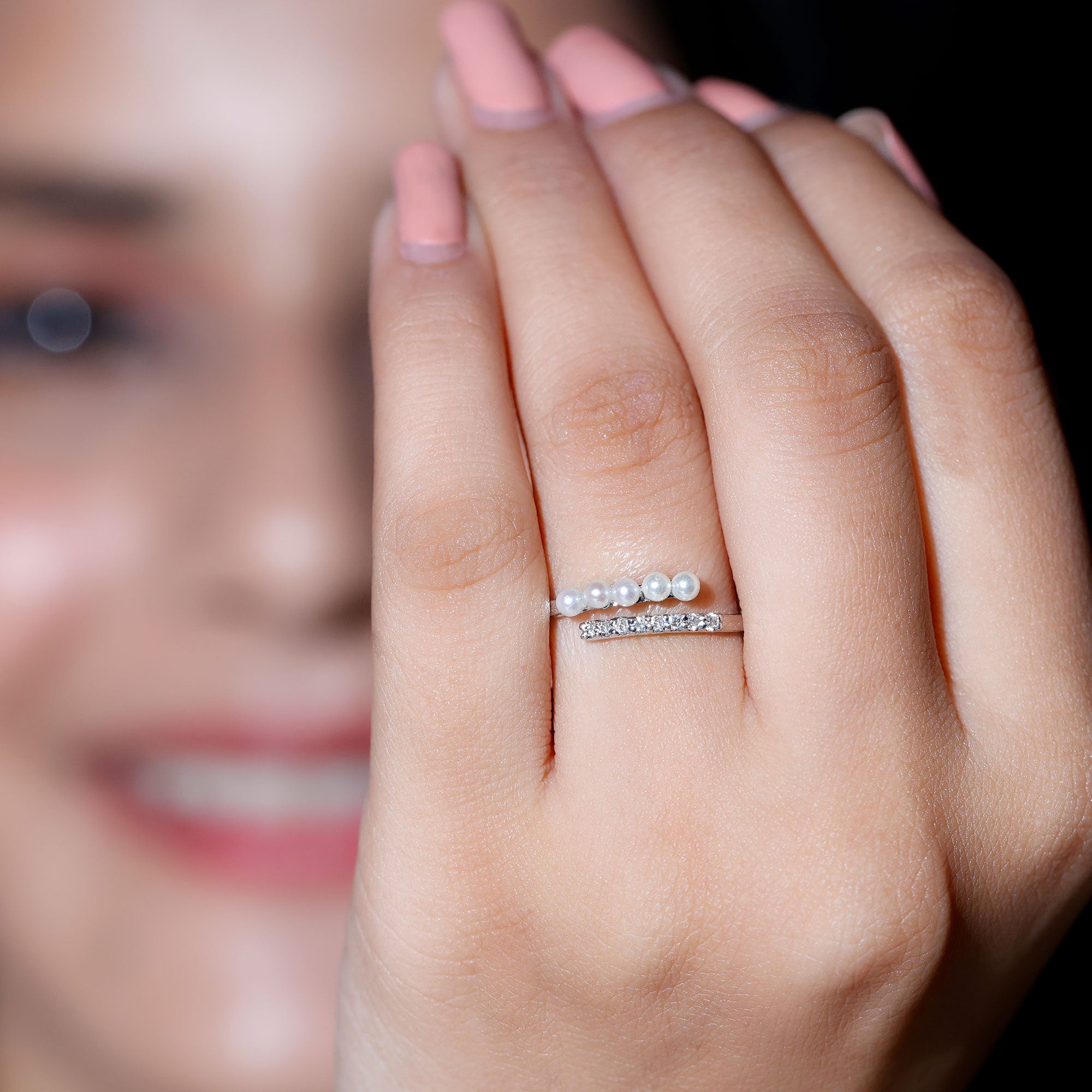 1/2 CT Freshwater Pearl and Diamond Wrap Ring
