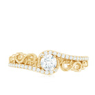 Ensuring a romantic proposal, our Diamond Engagement Ring embedded with Round Cut Diamond in the center in Claw Setting and gracefully bypassing shank glistens with smaller round accent diamonds. Crafted in Gold, this Engagement Ring is something no woman can resist.