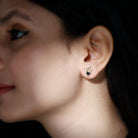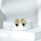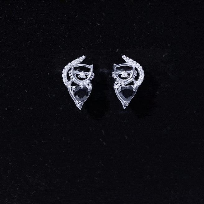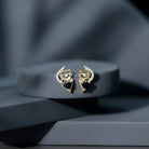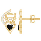 Add something different to your Jewelry Collection Get these Black Onyx and Moissanite Cat Stud Earrings. The Screw Back featured Stud earrings are embellished with Heart Shape Black Onyx in 3 Prong Setting as Center Stone with Tiny Round Cut Moissanite studded beautifully in Solid Gold crafted Cat.