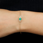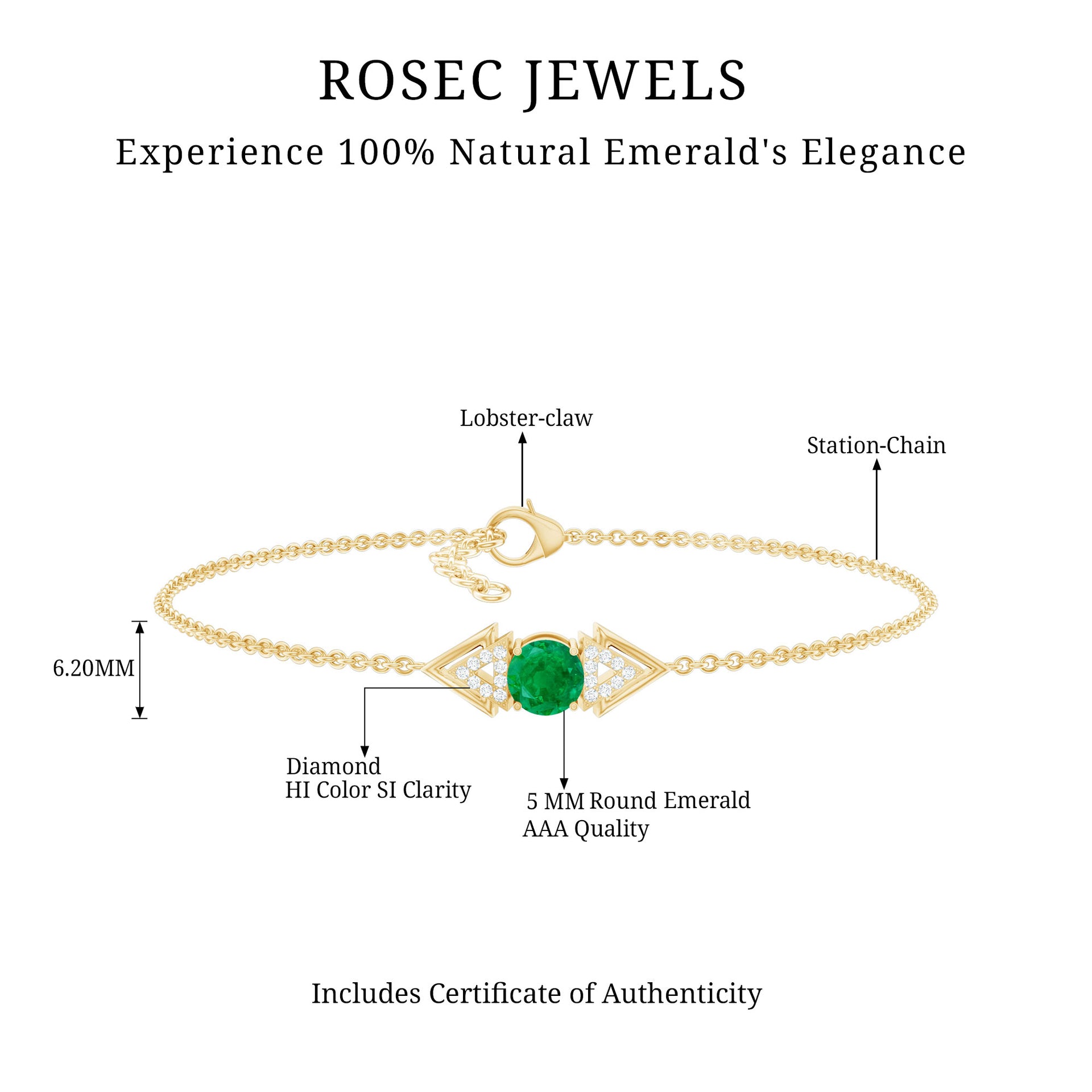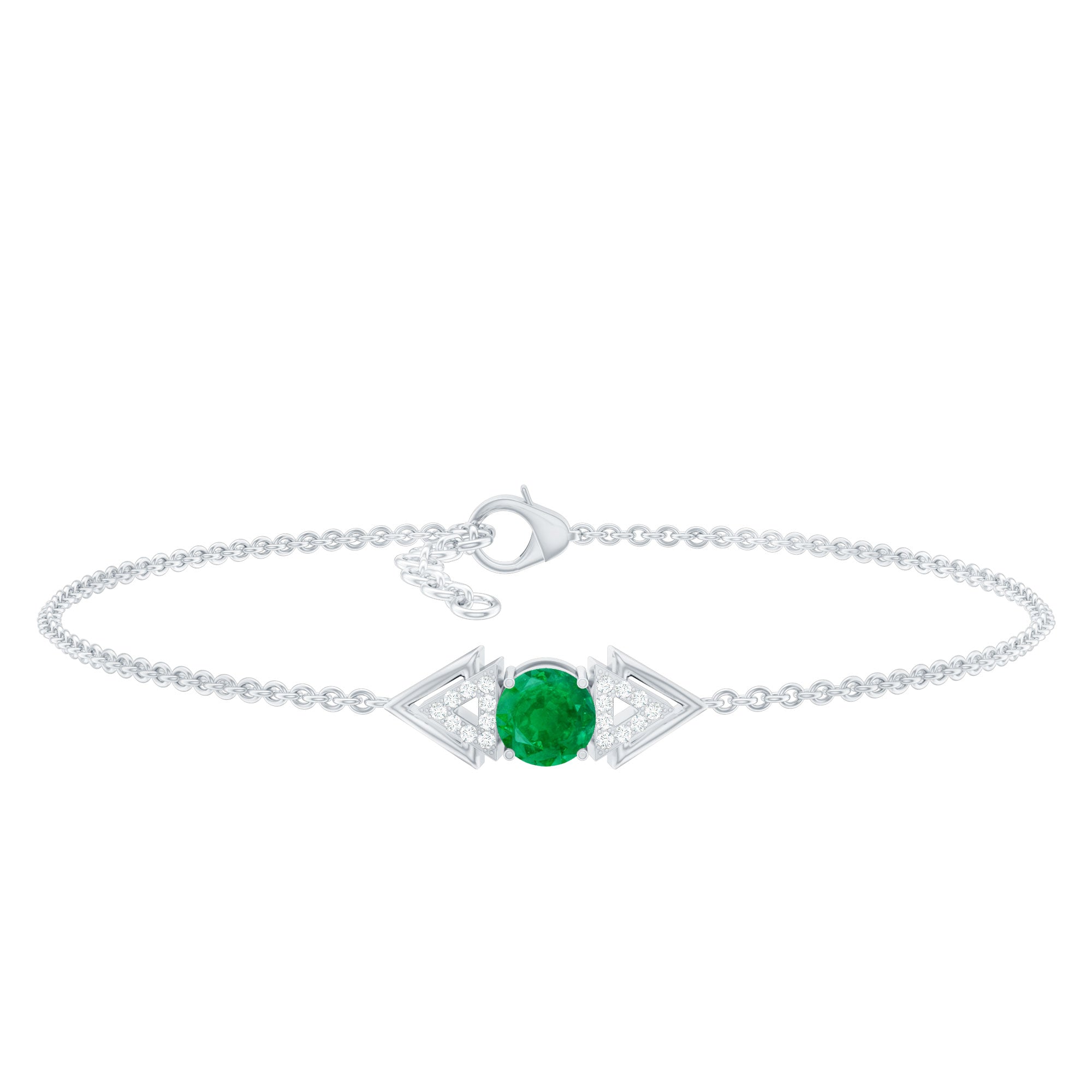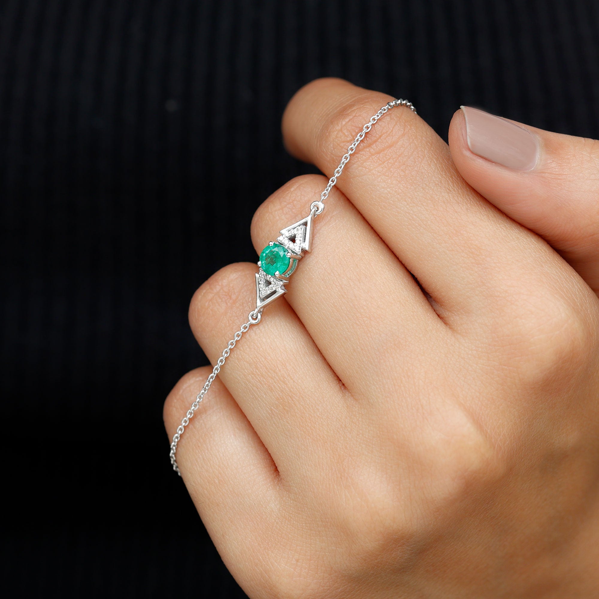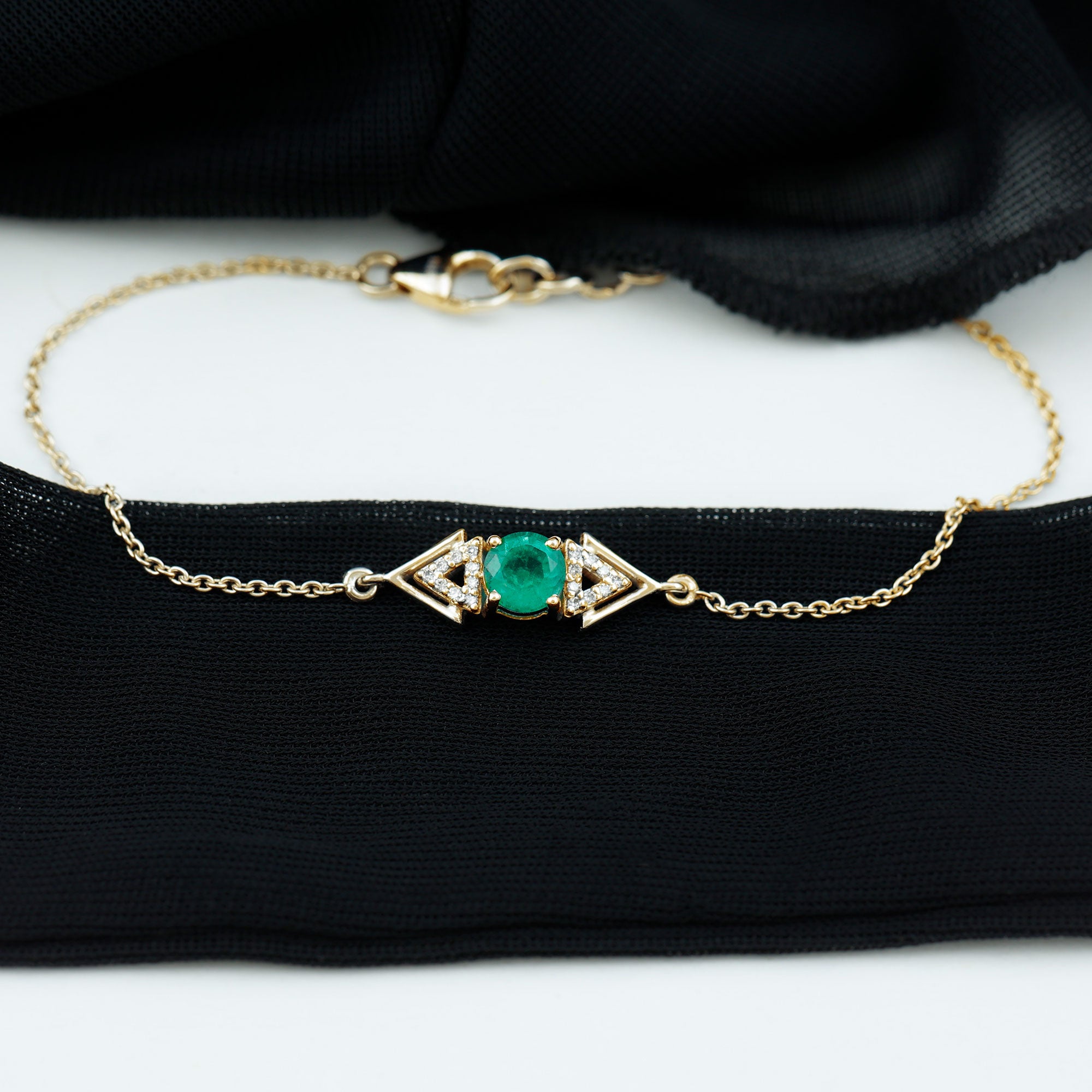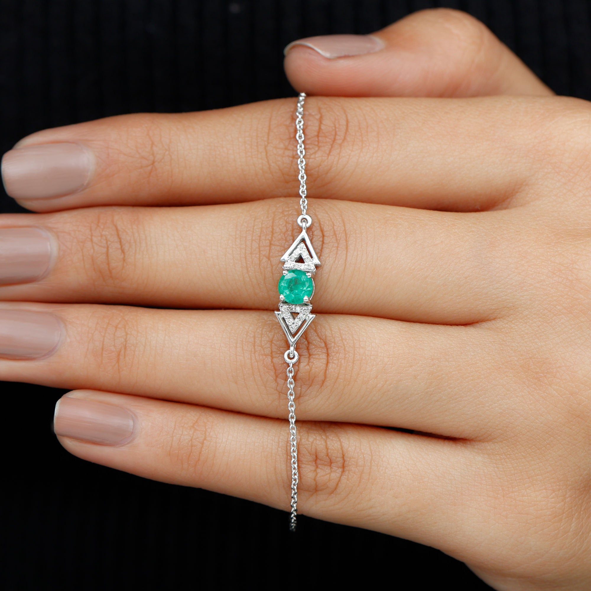 Make her feel special on this Valentines Day by dying this Beautiful Geometric Chain Bracelet engrafted with Round Shape Emerald Gemstone is set at the center in a Prong Setting with Diamond Accents embellished in a Triangular shape.