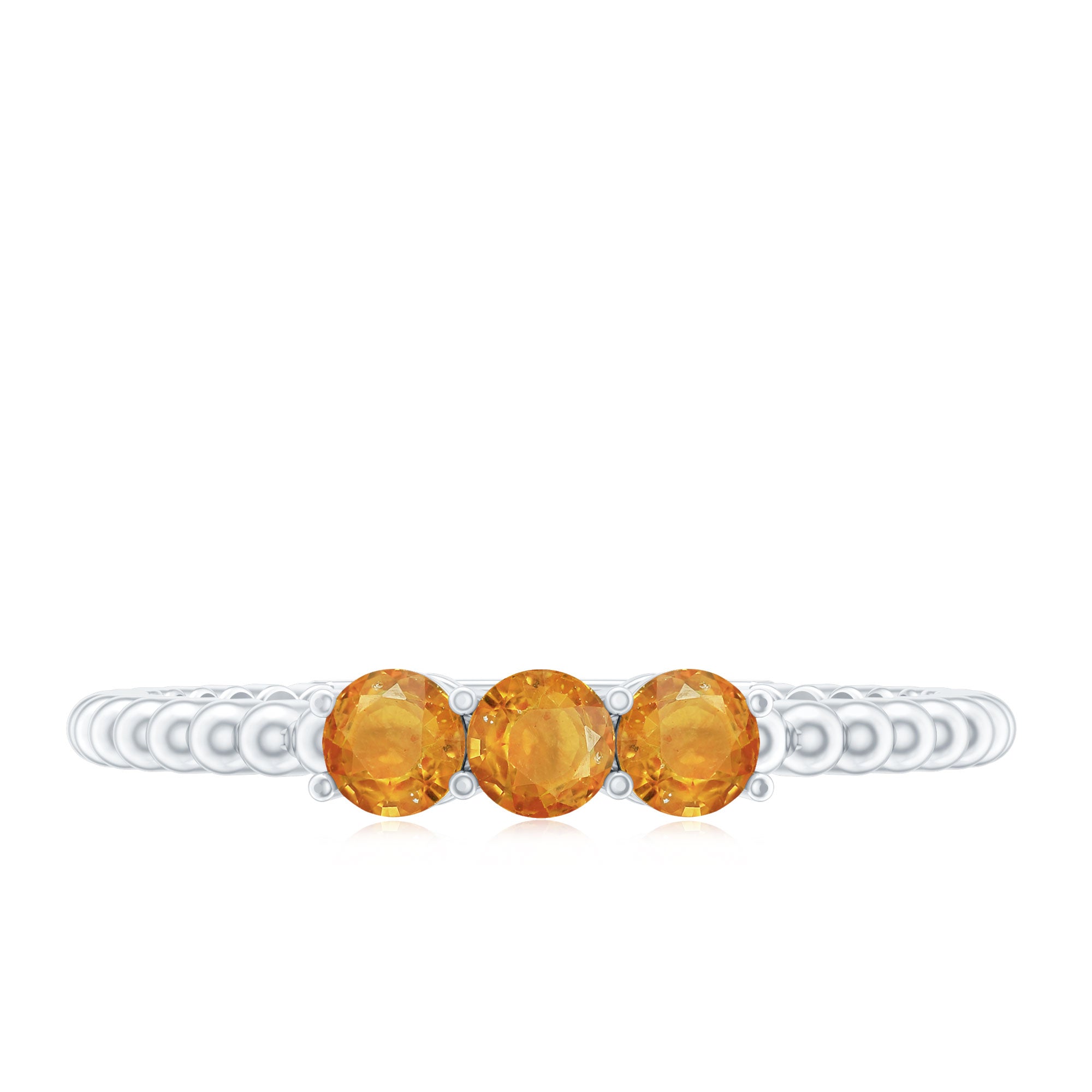Express your love to your beloved with this lovely Three Stone Promise Ring adorned with Round Cut Orange Sapphire in Prong Setting. This Promise Ring is crafted with Solid Gold with Beaded Details for a charming appeal.