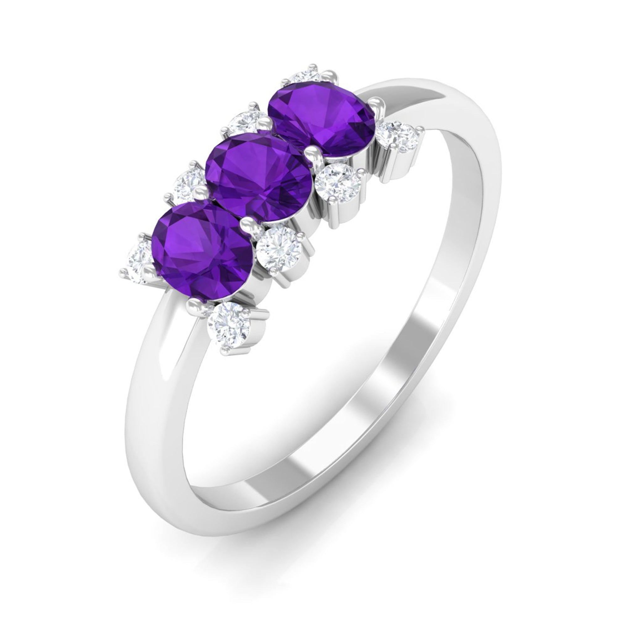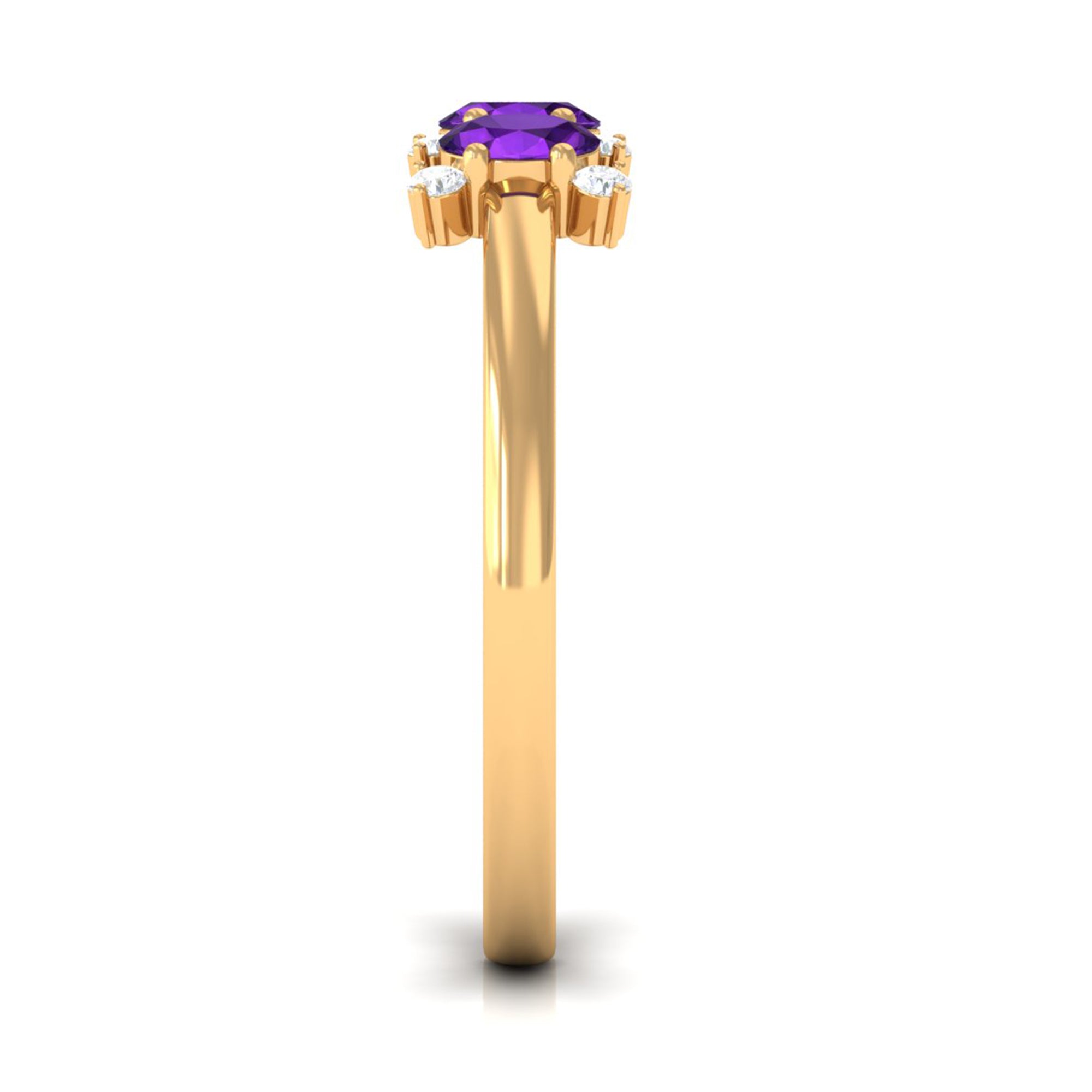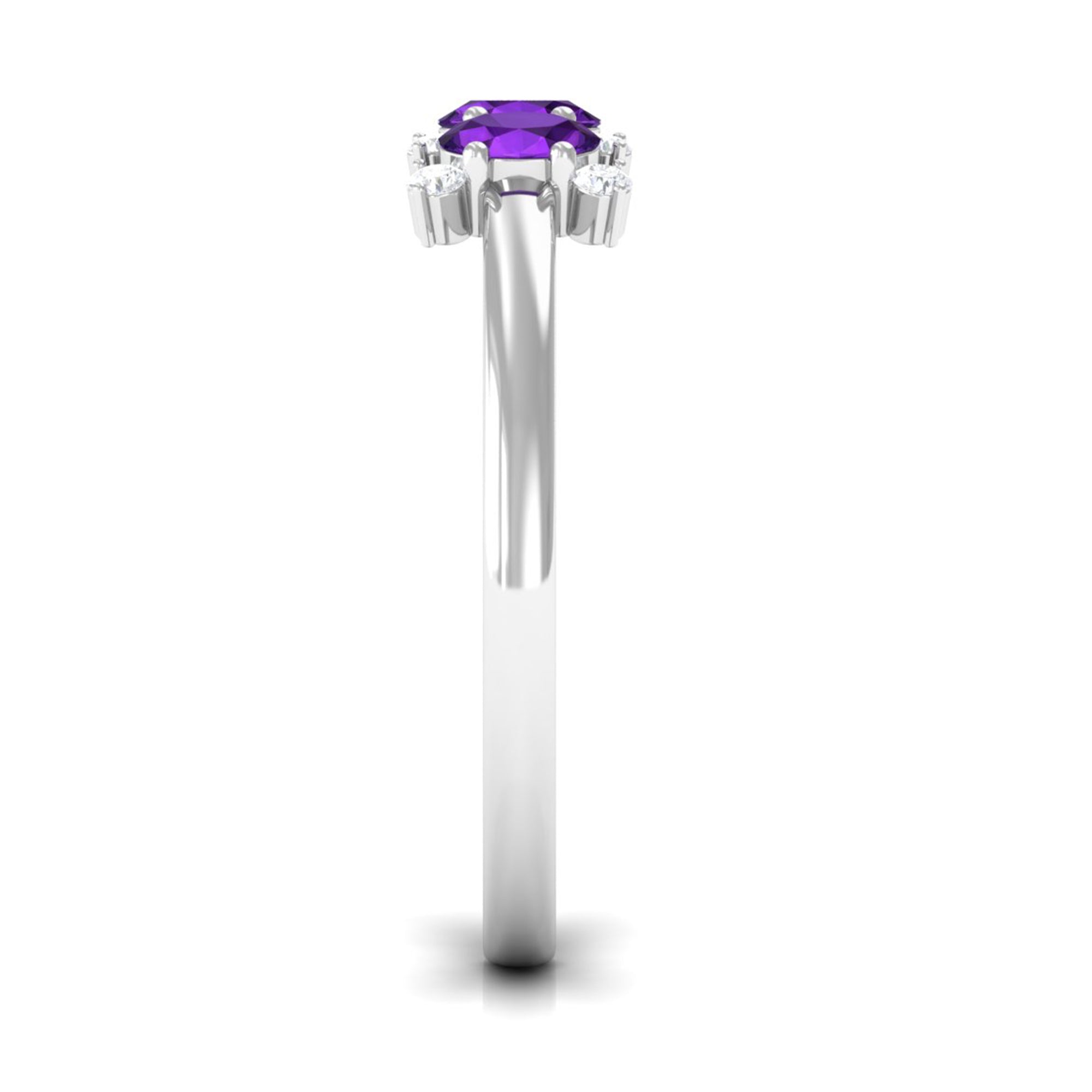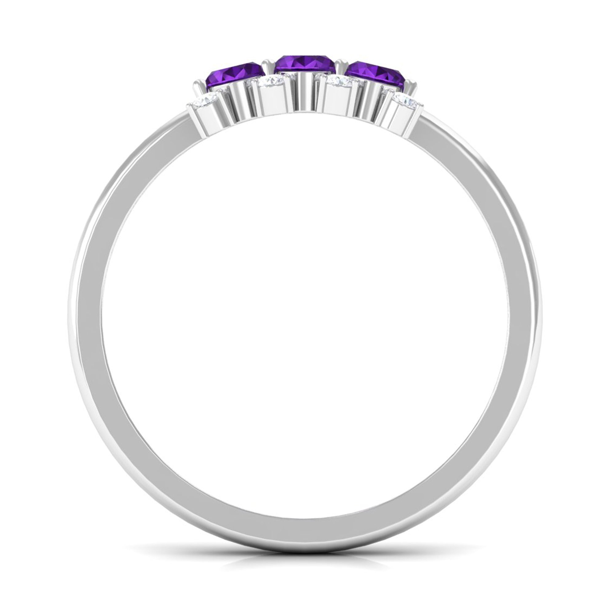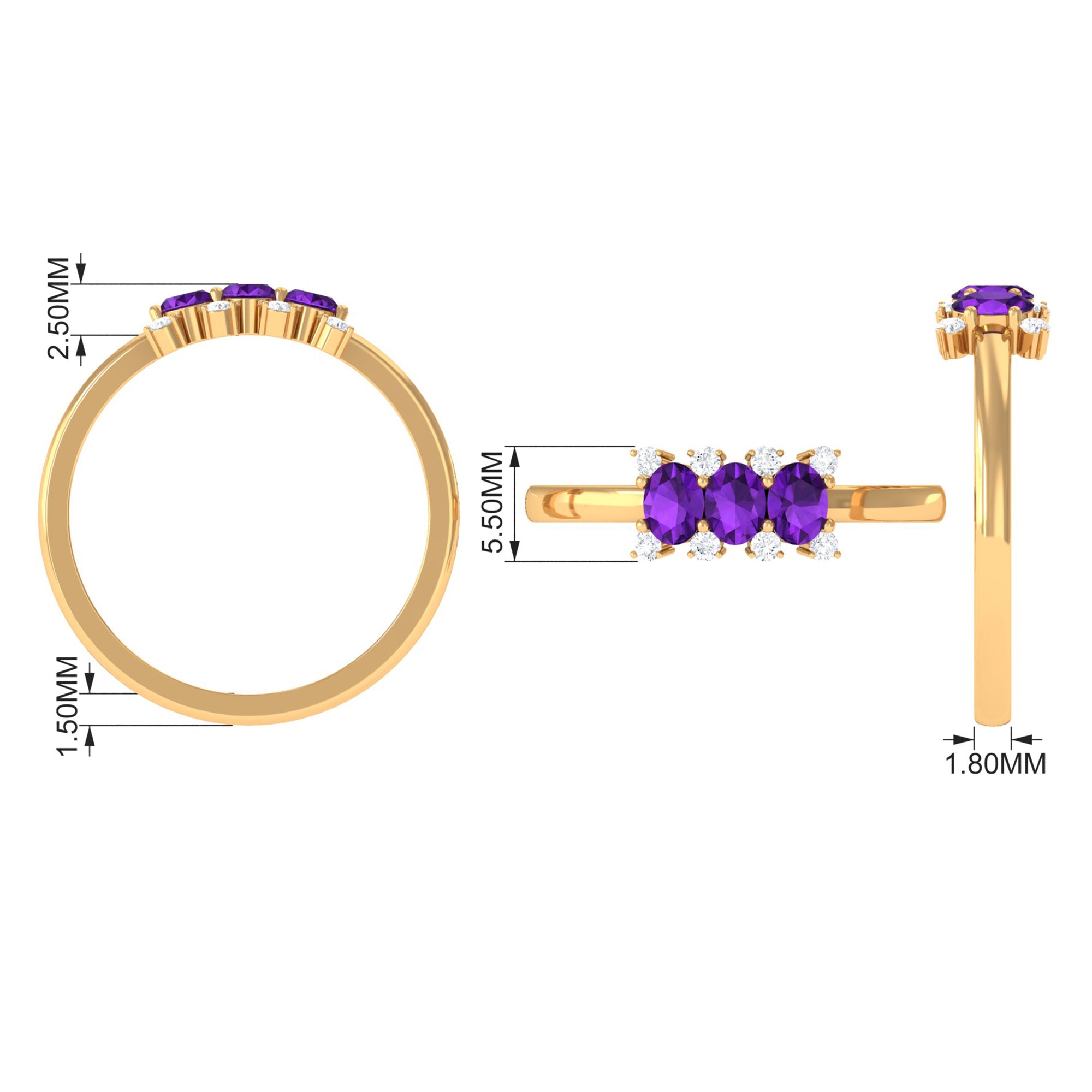 1/2 CT Oval Amethyst Three Stone Promise Ring with Diamond