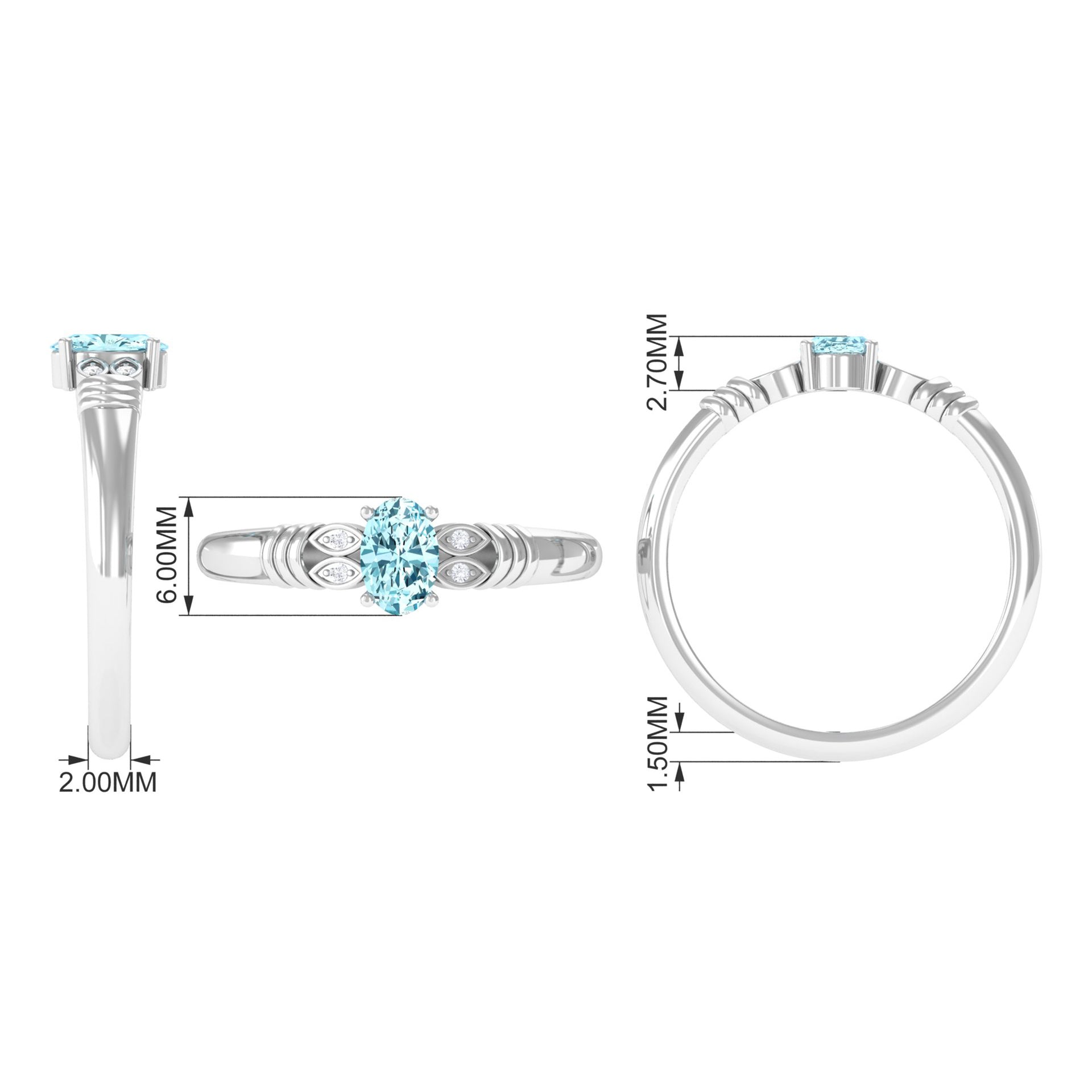 Natural 6X8mm Aquamarine Oval Engagement Ring with Diamond