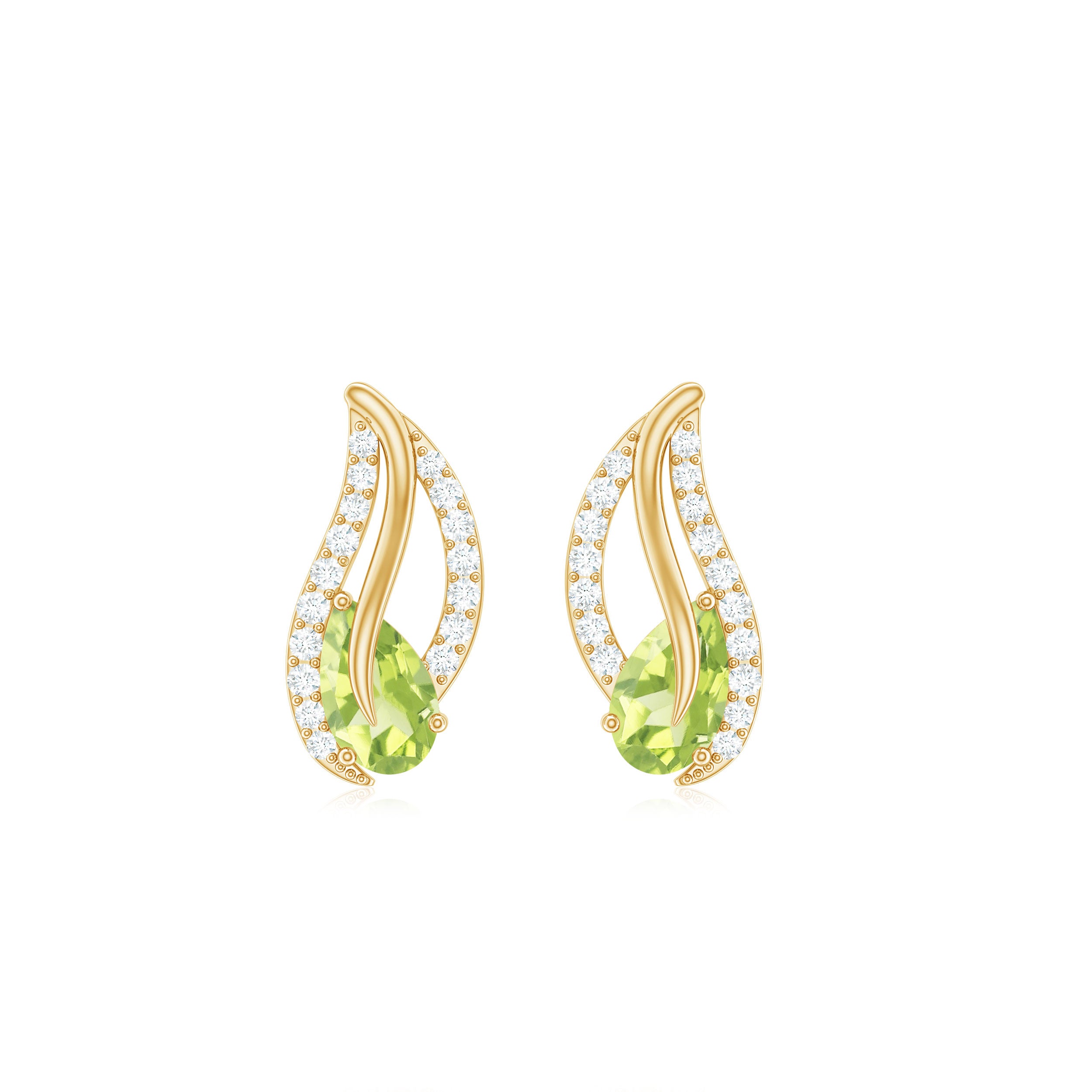 1/2 CT Pear Shape Peridot and Diamond Leaf Stud Earrings