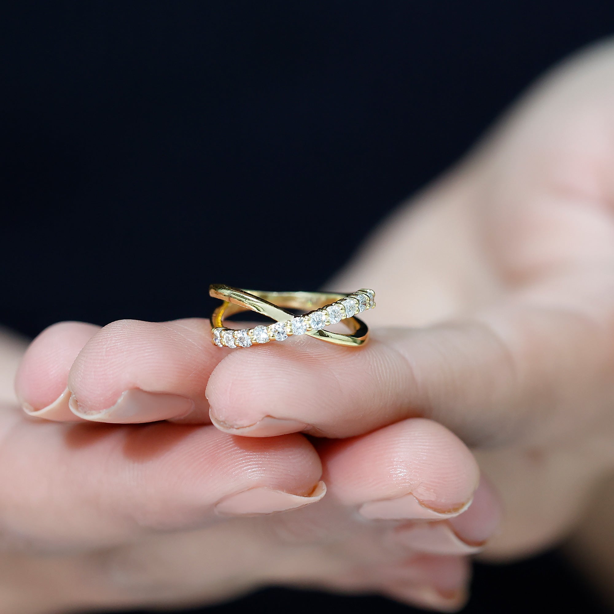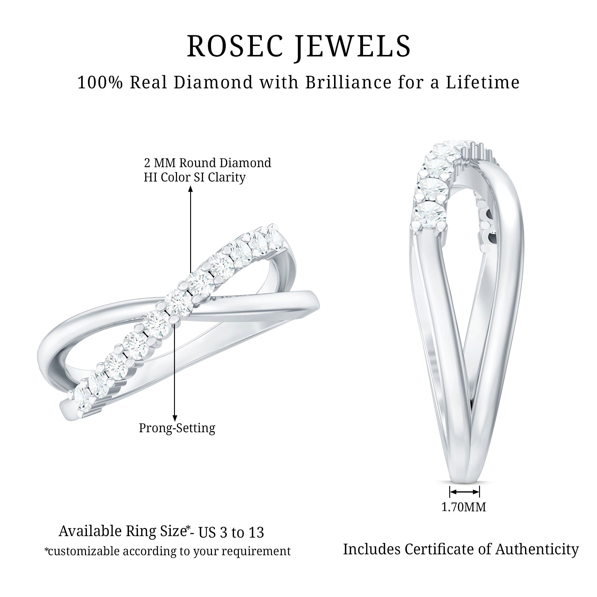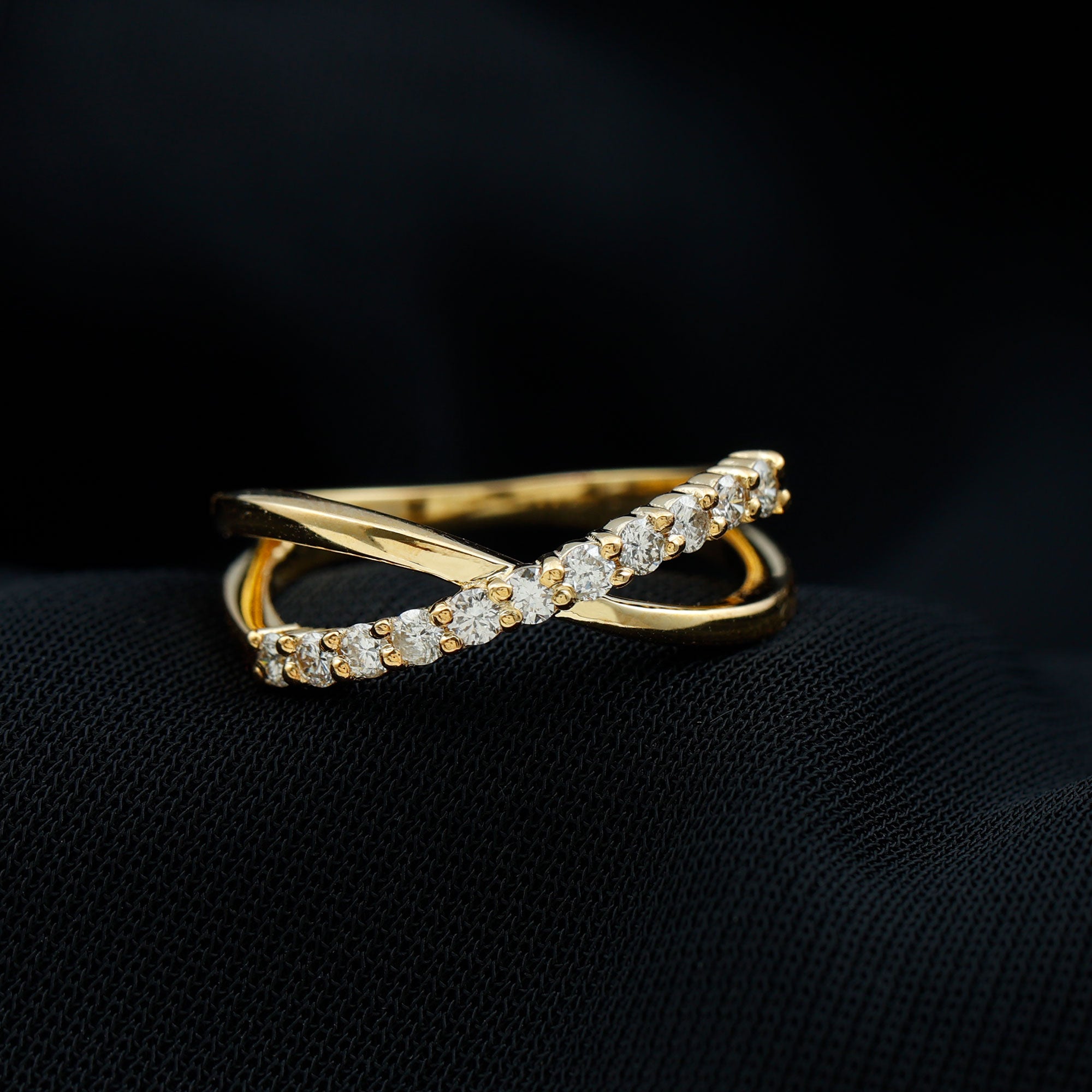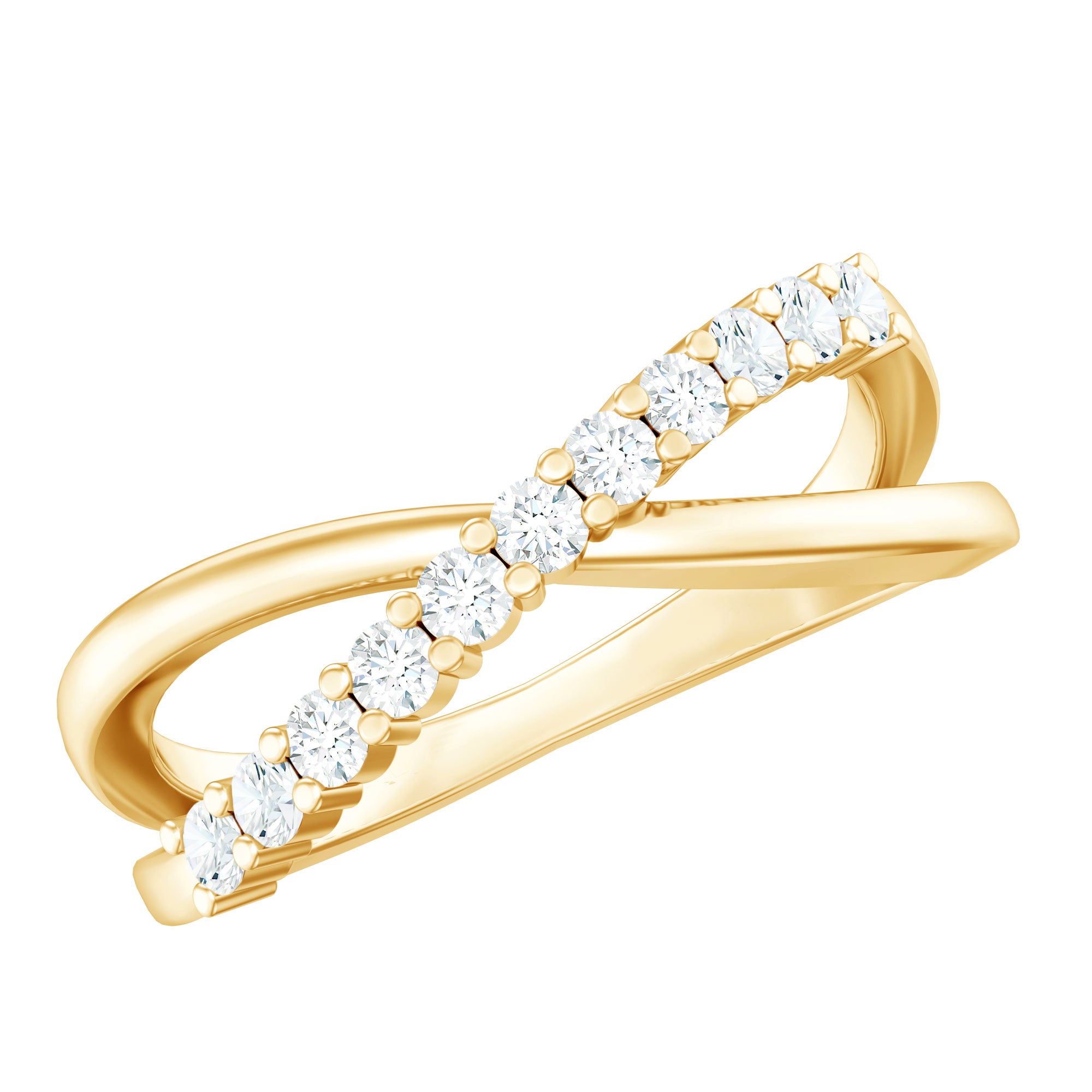 This Diamond Band Ring has an extra twinkling Diamond that makes a statement with the sentence I Do. This Diamond Crossover Ring intertwines the shimmering beauty with endless love with a simple and stackable piece for expressing the style. The row of shimmering Diamond creates a beautiful and unique eye-catching piece of jewelry that dazzles sparkle in a sleek and minimal design that offers a timeless and elegant look for the glamorous sparkle. This gorgeous Diamond Promise Ring is stunning on its own or as part of a stack, a perfect choice for a wedding band. Its charming sparkle is sure to impress and delight! This versatile piece makes a meaningful present for a loved one.