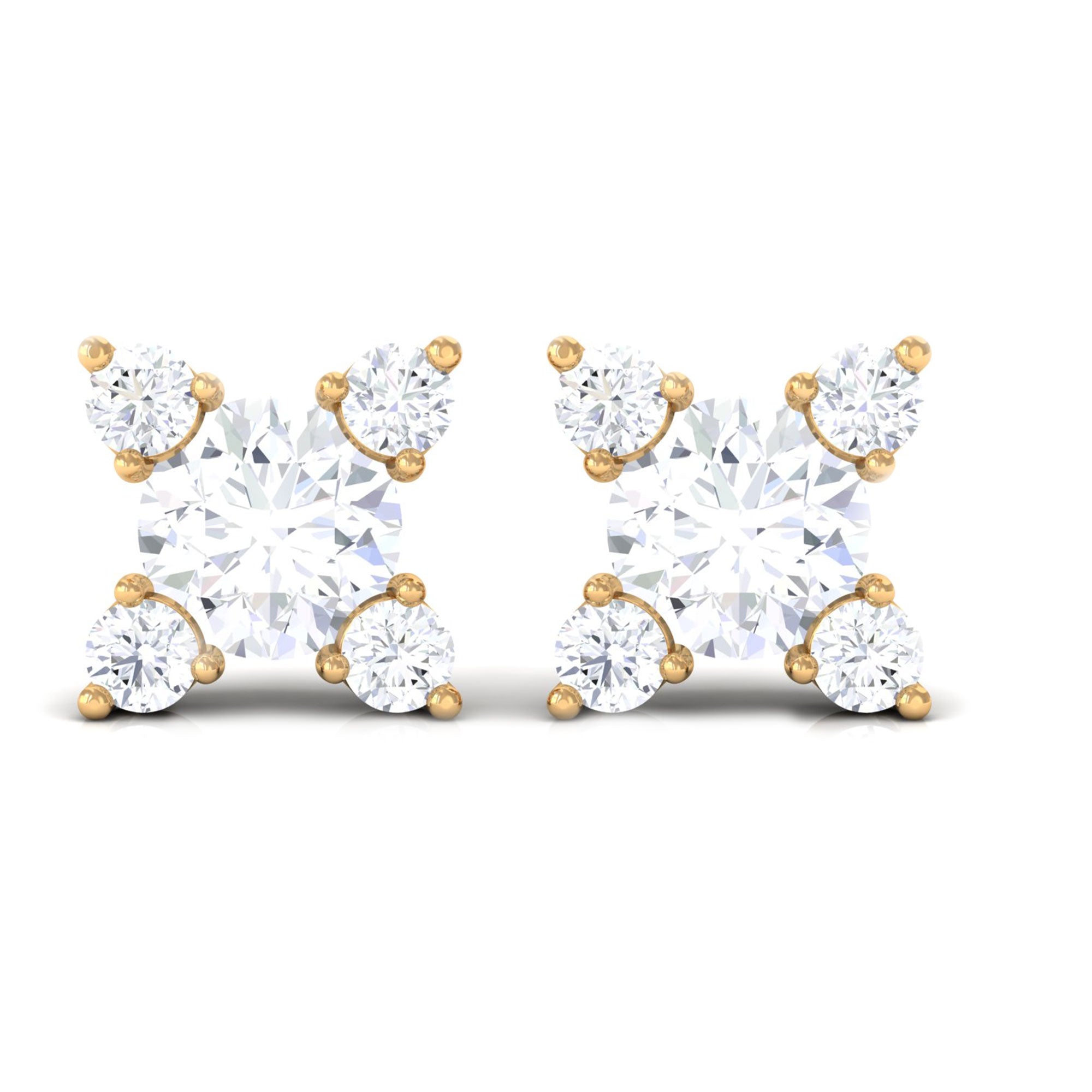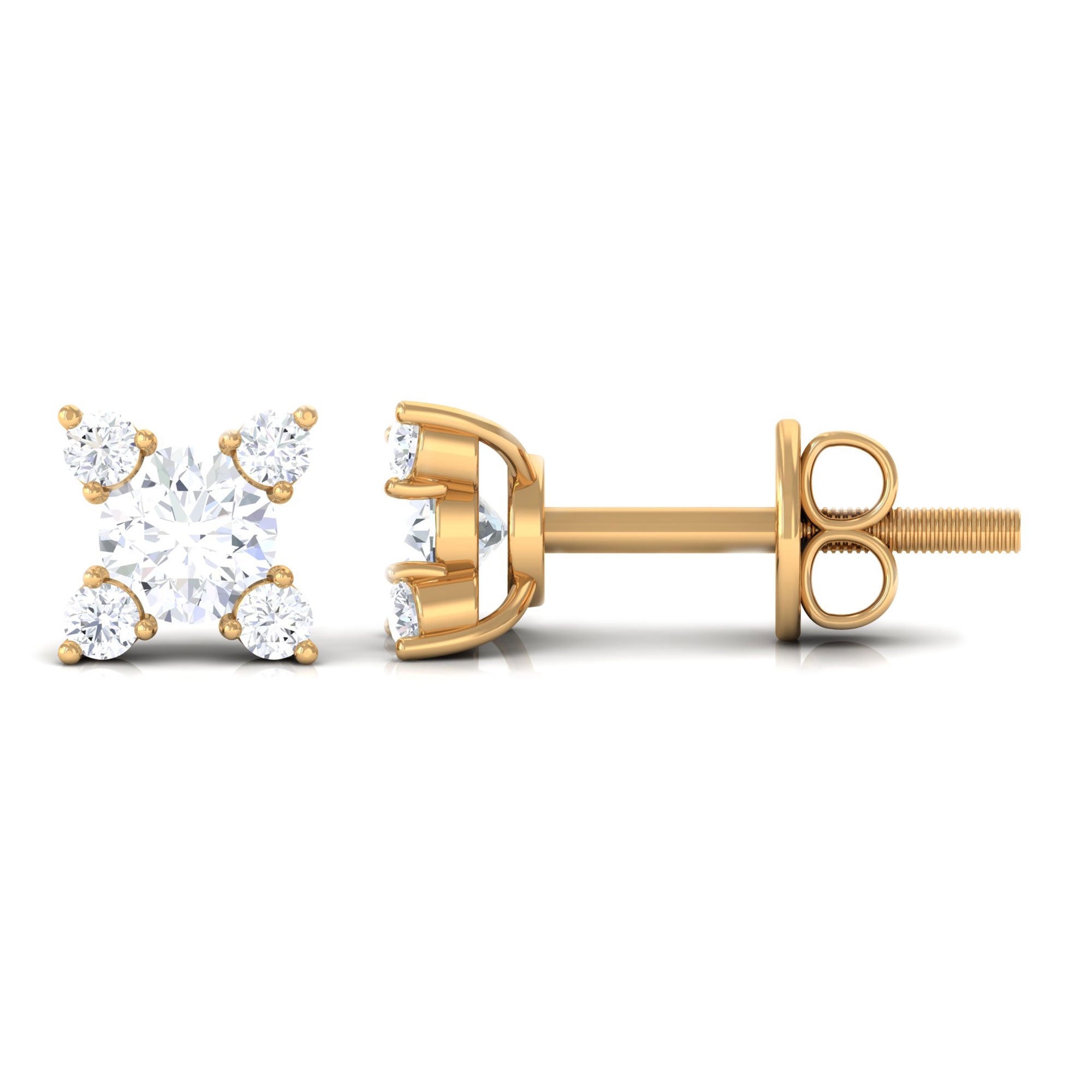 1/2 CT Real Diamond Gold Stud Earrings in Prong Setting