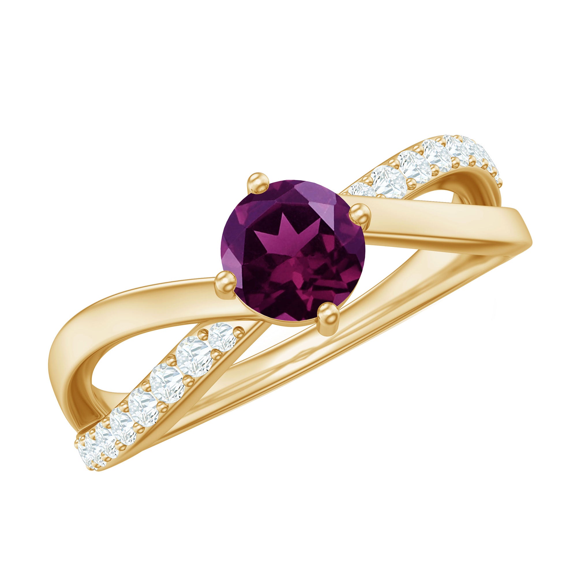 Enhance your love with this Solitaire Ring is adorned with Round Shape Rhodolite set as a solitaire in a prong setting and Round Shape Diamond in a prong setting. This Gold Infinity Ring is available in solid gold.