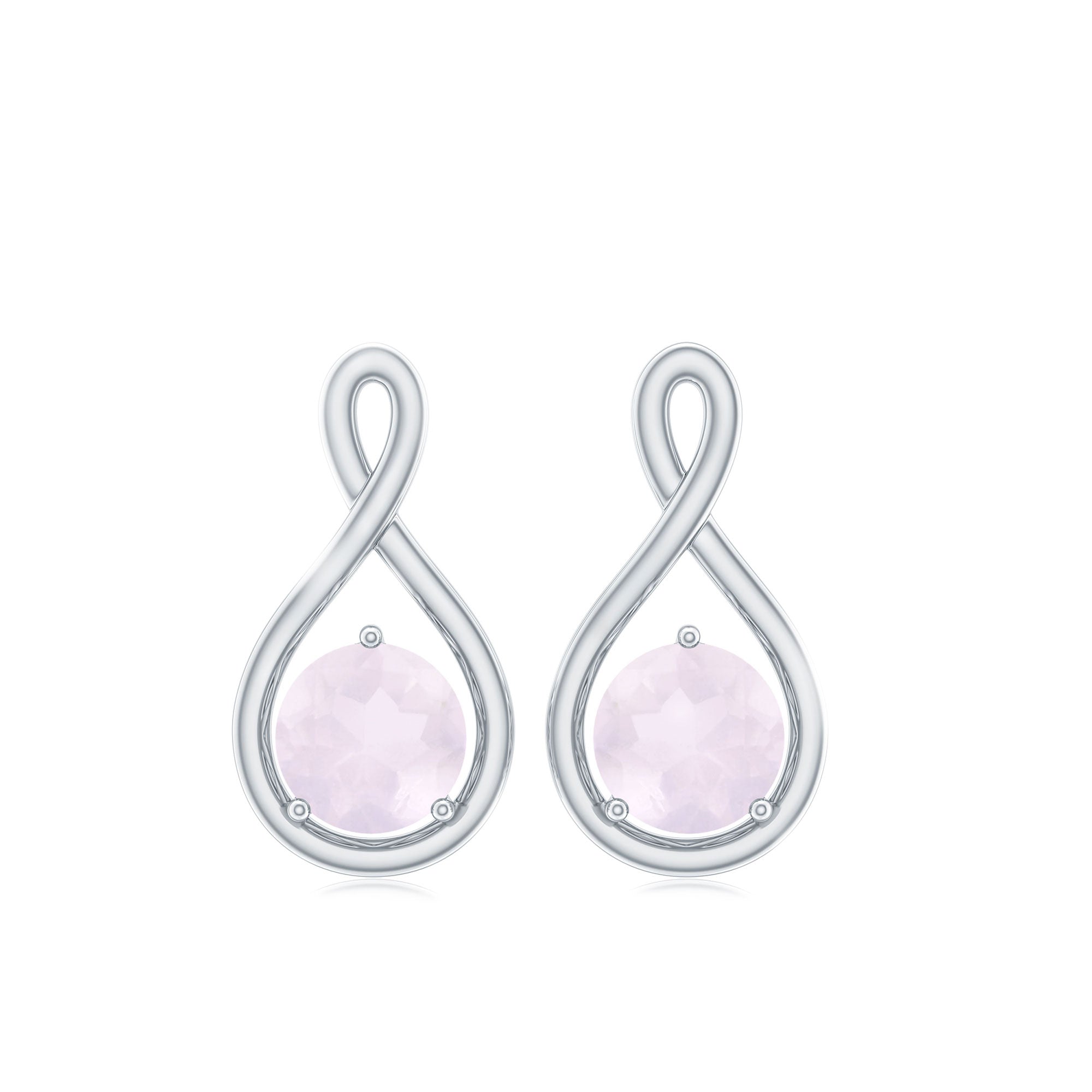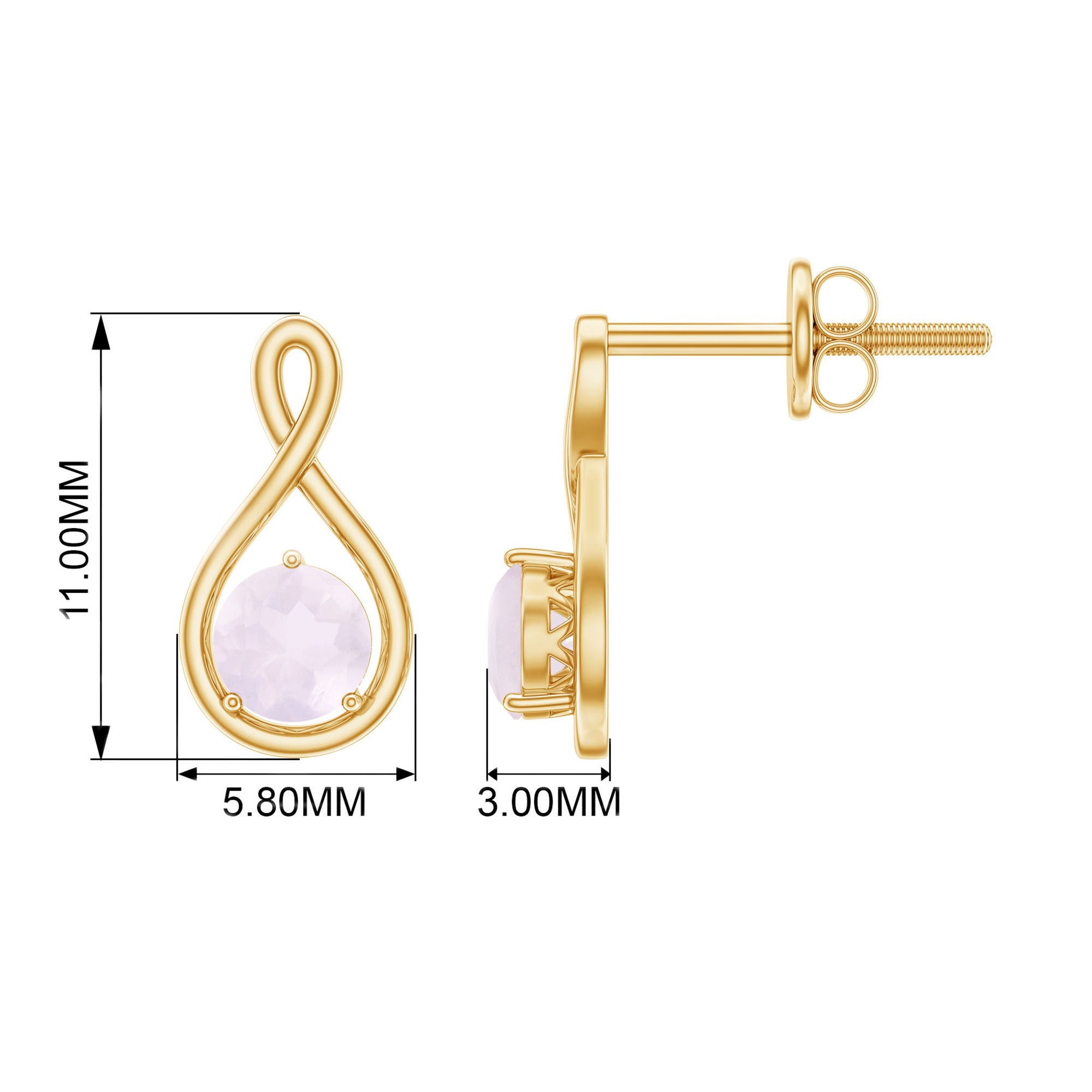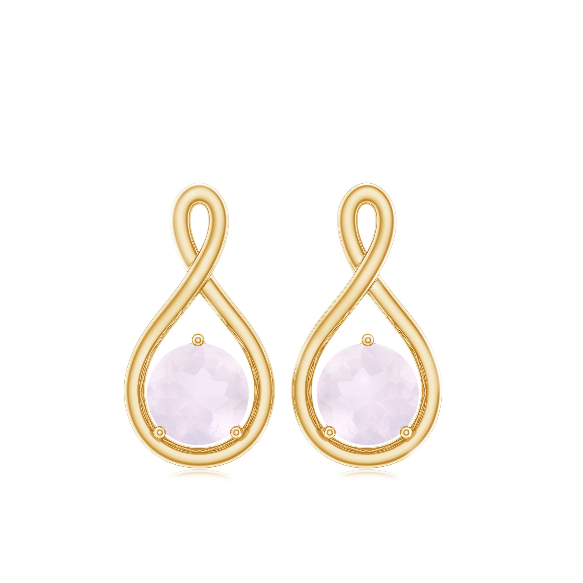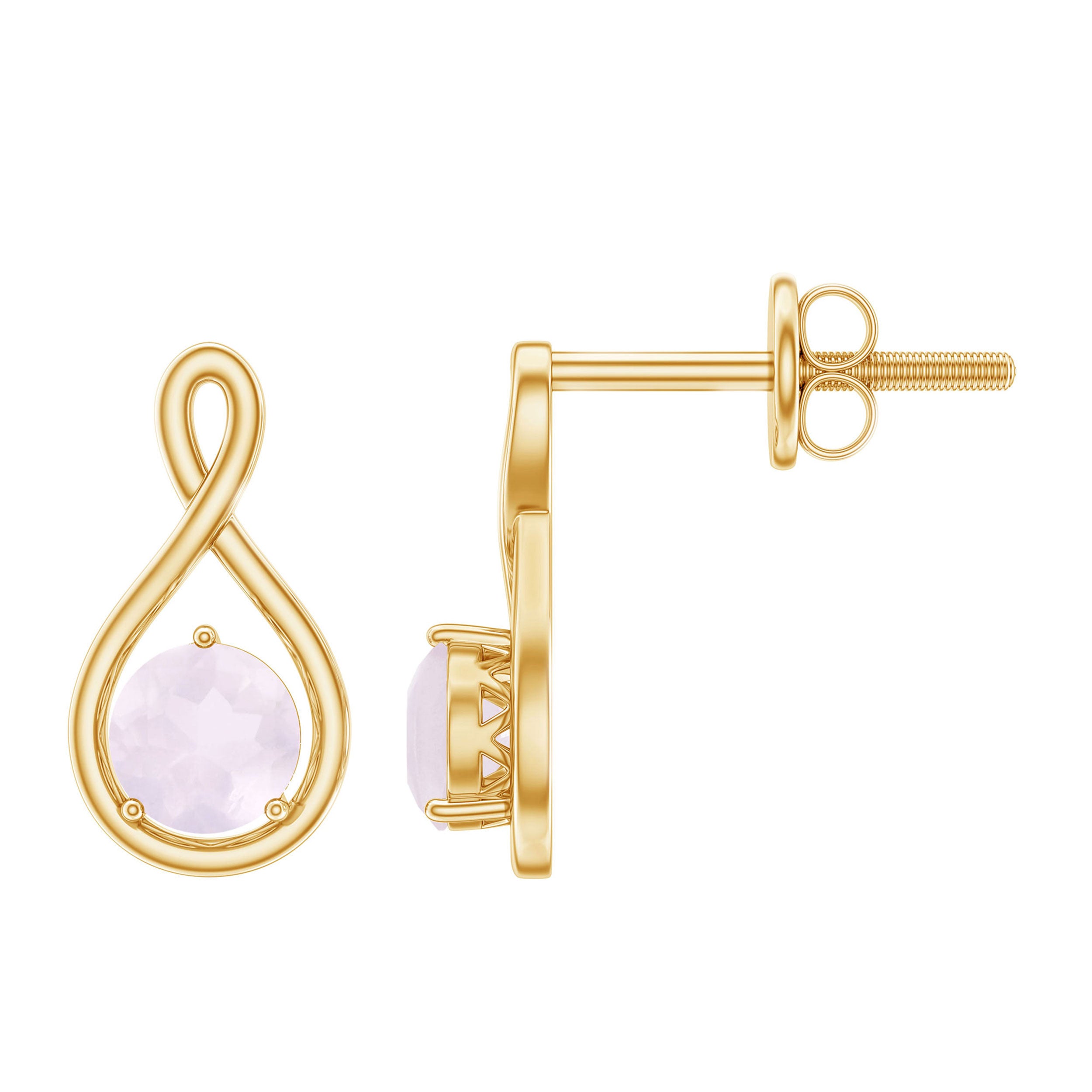 This Infinity Pattern Stud Earrings embellished with Round Cut Rose Quartz Gemstone is set as Solitaire in a Prong Setting, crafted in a Solid Gold.