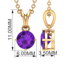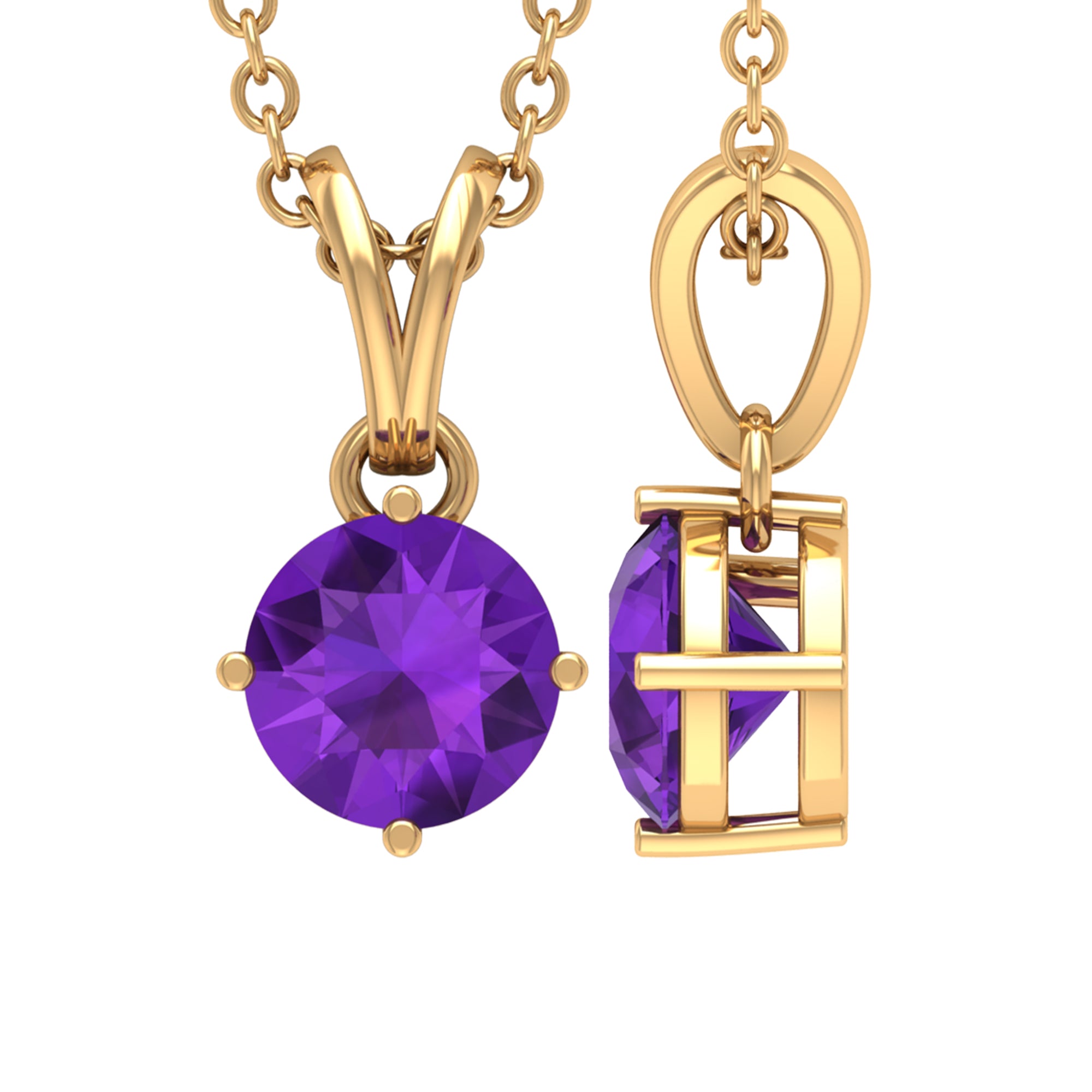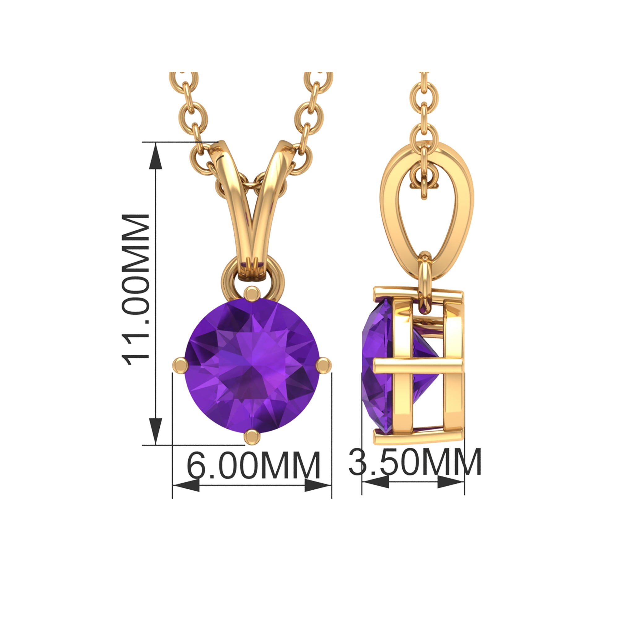Be Dazzle with this Beautiful Amethyst Solitaire Pendant necklace and get Admiration. The Pendant is embellished with 5 MM Round Shape Amethyst Solitaire as single stone in 4 Prong Diagonal Setting. Solid Gold encasing around Gemstone and Rabbit Ear Bail make this Pendant more Elegant.