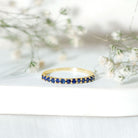 Gracefully designed, this Semi Eternity Ring makes for a beautiful gift for your beloved. Round Cut Blue Sapphire stones adorn this Stackable Anniversary Band Ring to create a charming appeal. This Eternity Band Ring is crafted in Solid Gold for an opulent appeal.
