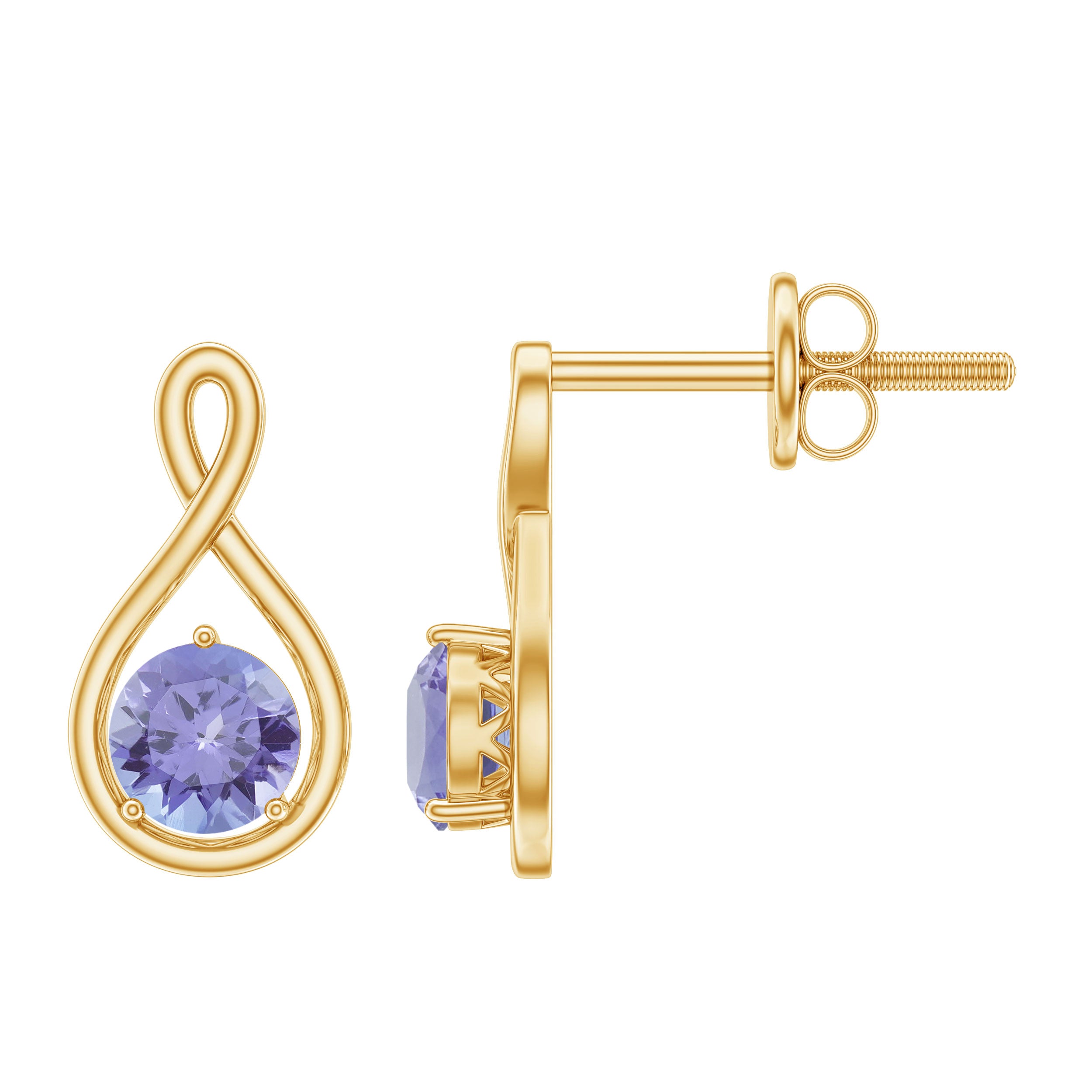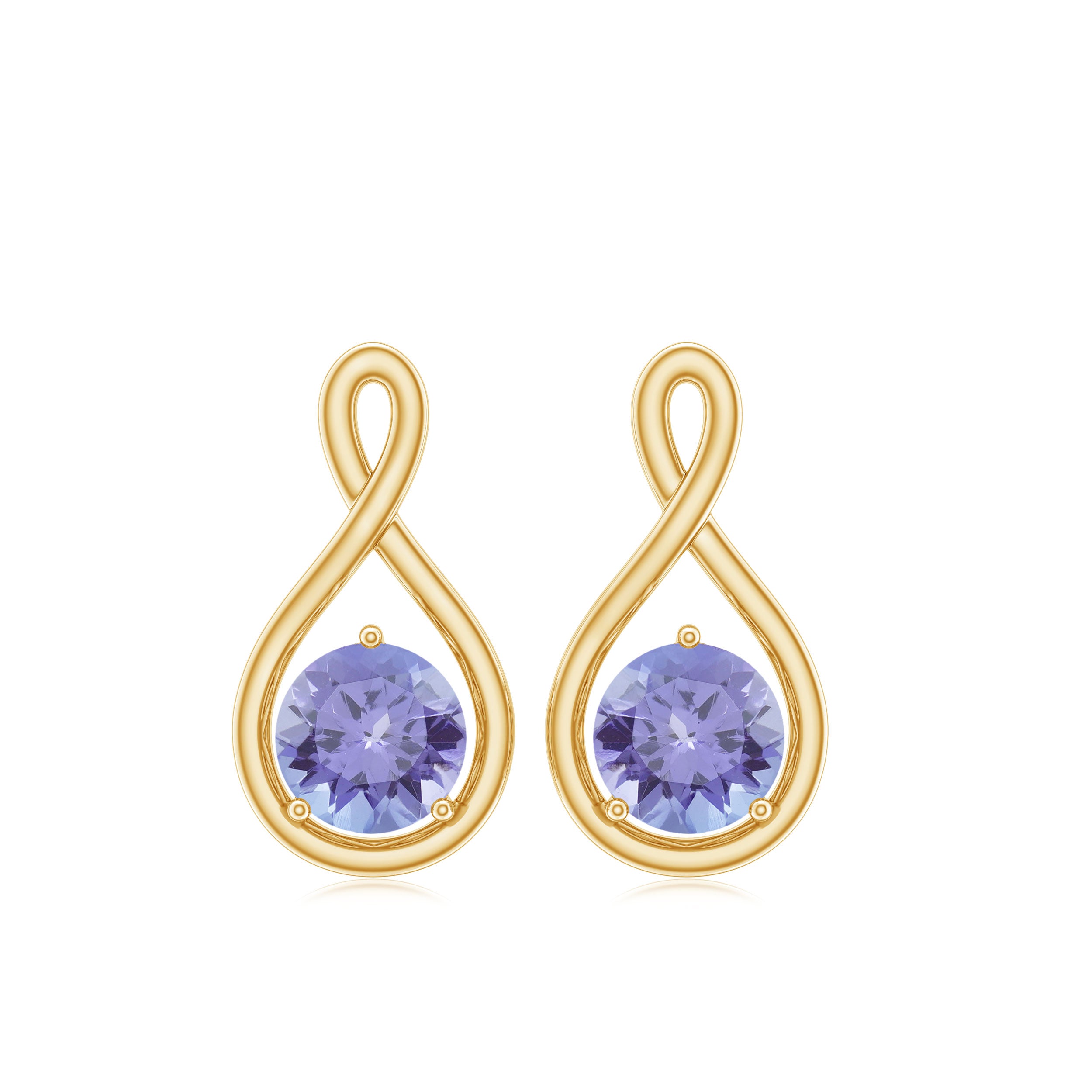 This Infinity Stud Earrings is embellished with Round Cut Tanzanite in Prong Setting, crafted in a Solid Gold.