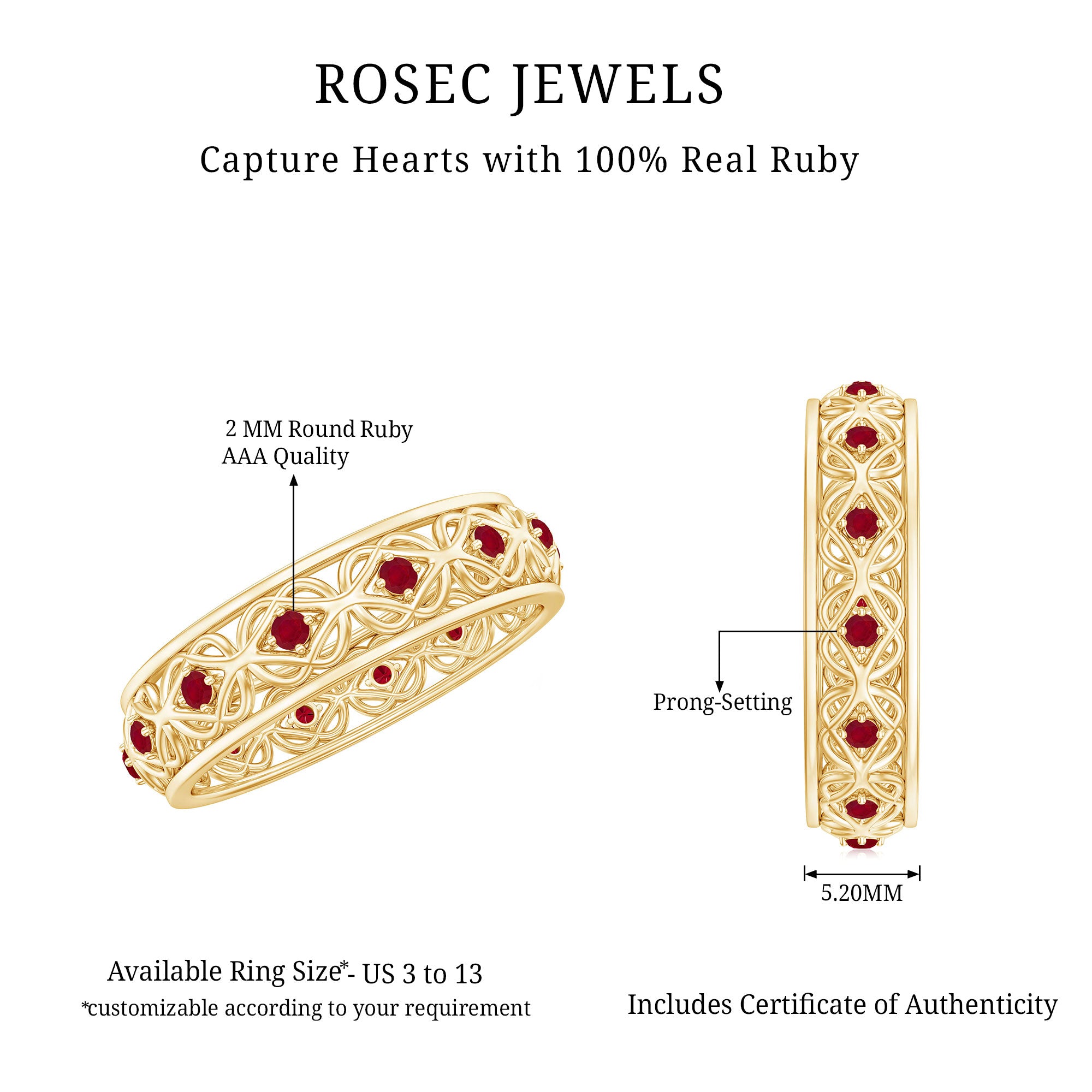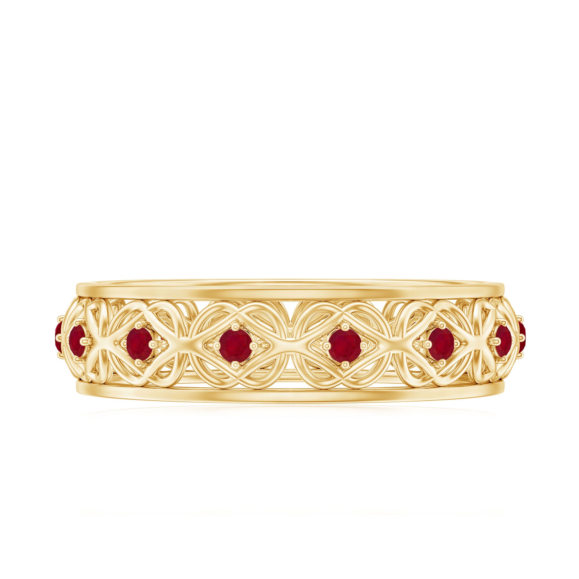 1/2 CT Ruby Celtic Band Ring in 4 Prong Diagonal Setting