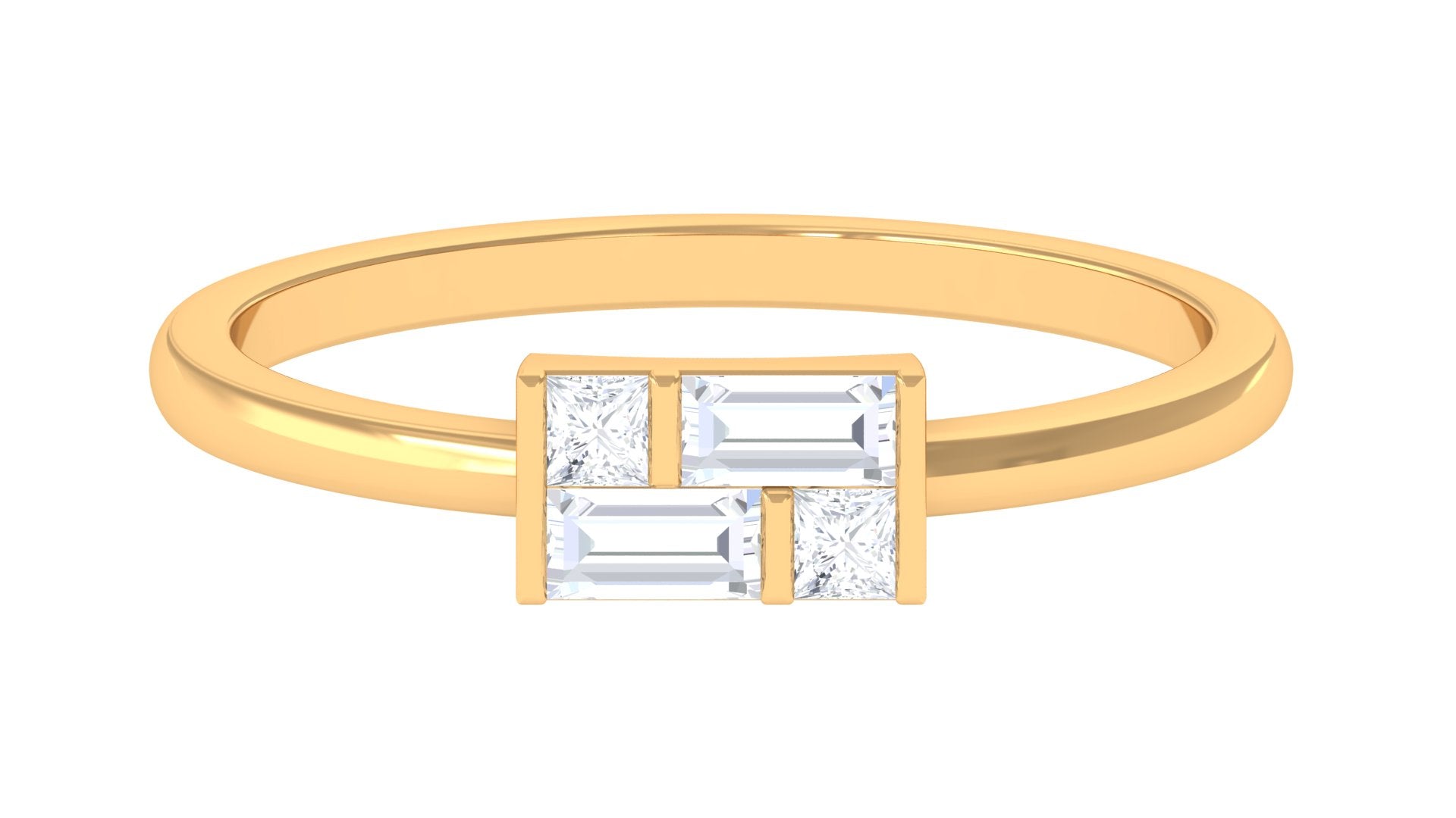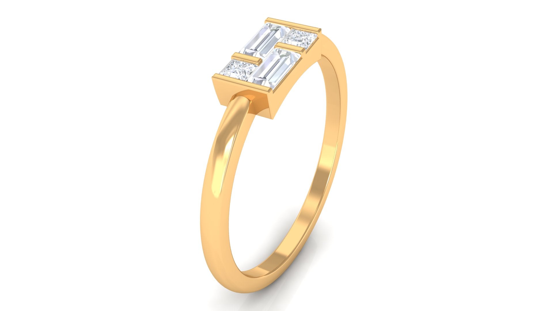 Achieve a casual and cute look with this Promise Ring, a charming choice youll wear with everything. Crafted in Gold, this shimmering style features a Baguette and Princess Cut Diamond are set in Bar Setting.