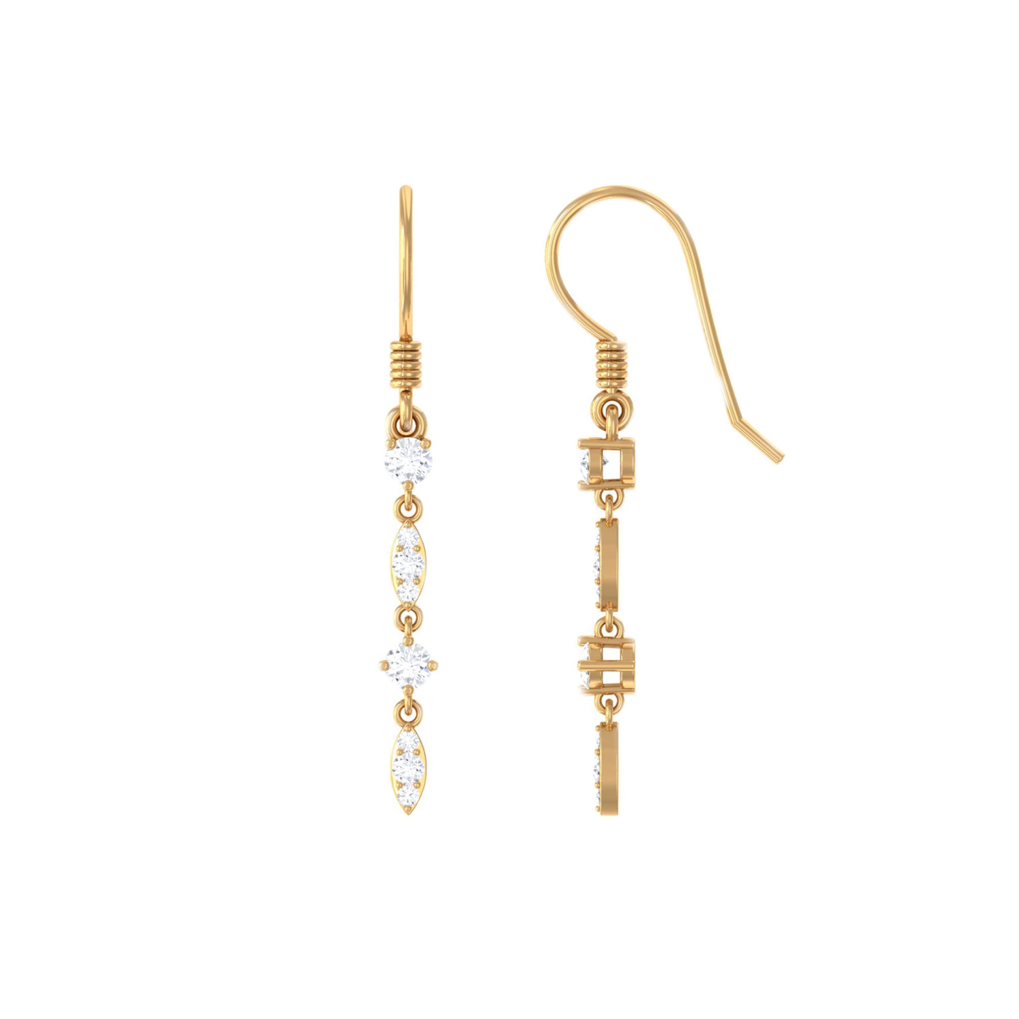 Add some dazzle to your days with these Sparkling Moissanite Simple Dangle Earrings. These Moissanite earrings feature a dangle pattern adorned with round Moissanite, and are secured with a fish hook. Crafted from solid gold, these earrings radiate a brilliant shine that will enhance your appearance and catch the eye. Make a statement with these exquisite earrings that are sure to bedazzle any outfit.