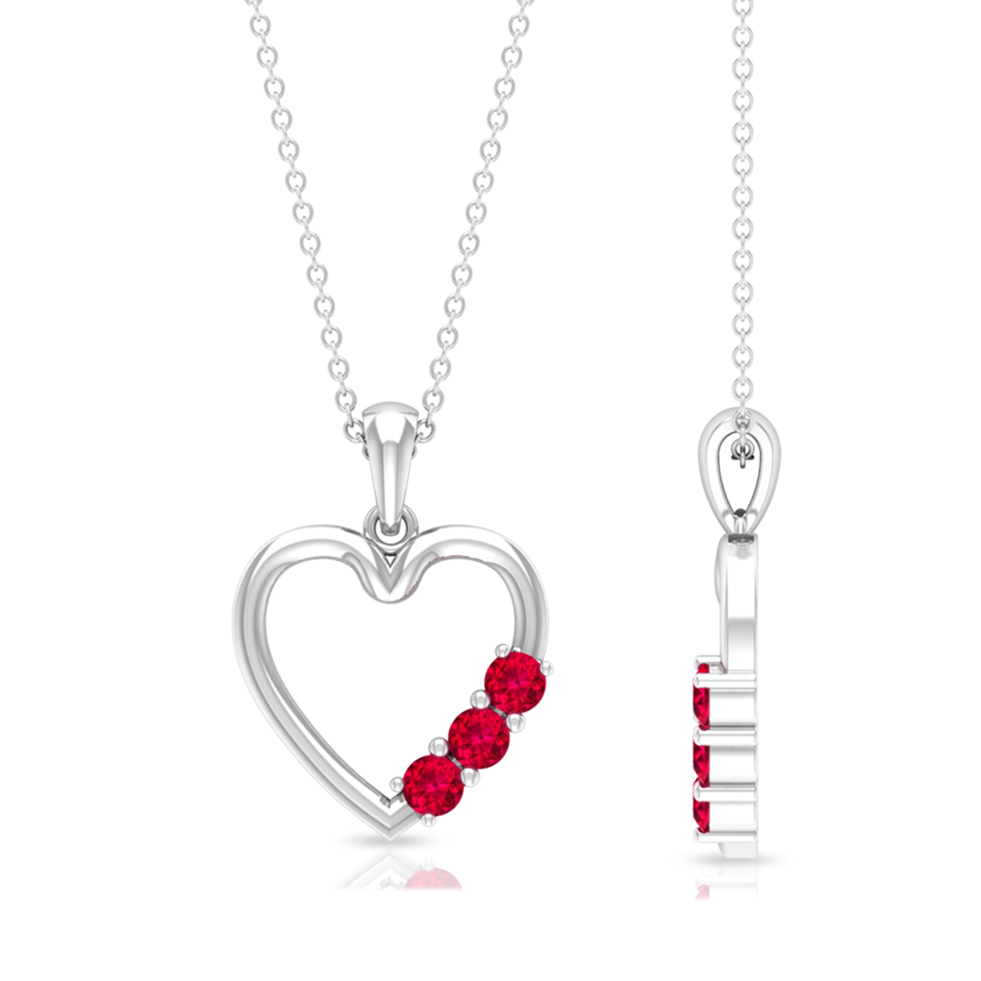 This Gorgeous Gold Heart Pendant is Embellished with Round Shape Ruby set in Prong setting, This Simple Open Heart Pendant is Composed of Solid 10K, 14K, 18K Solid Gold, A Perfect Gift for Your Love