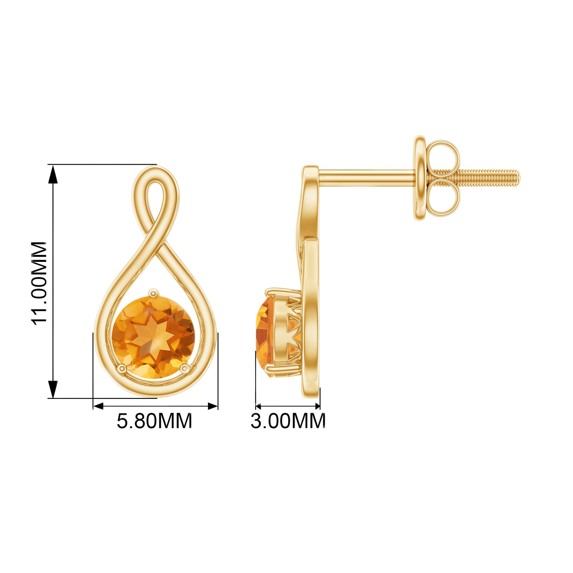 1/2 CT Solitaire Citrine Gold Infinity Stud Earring