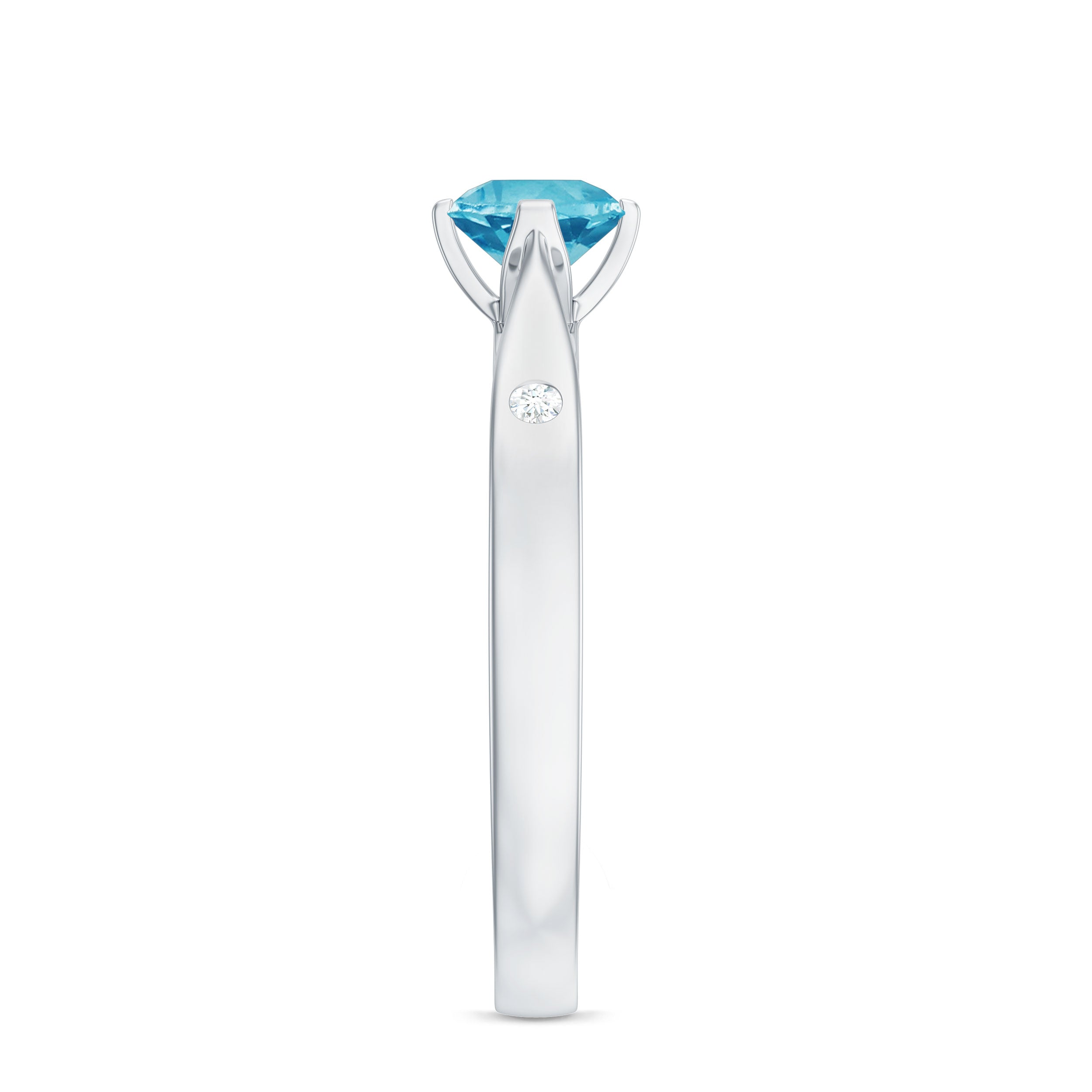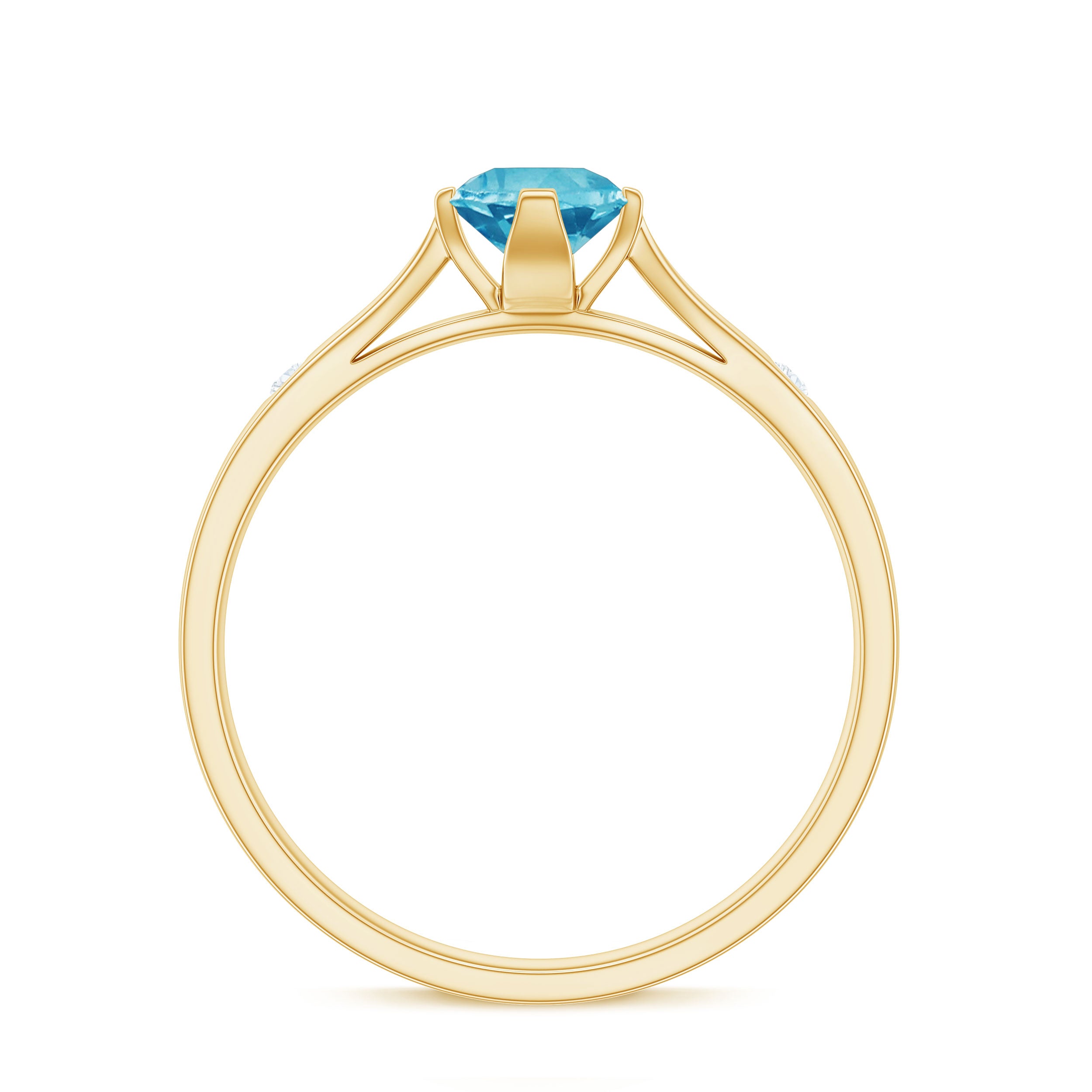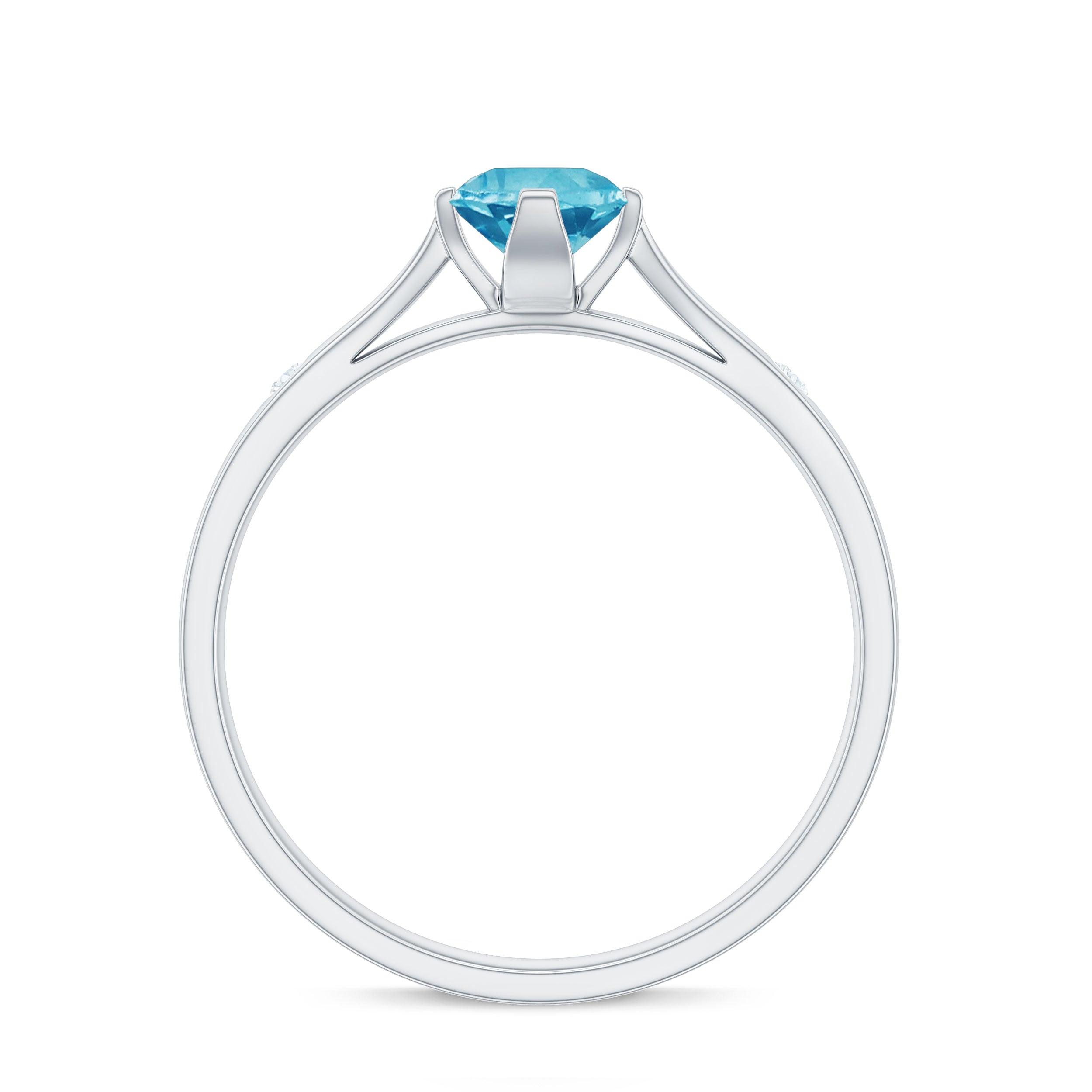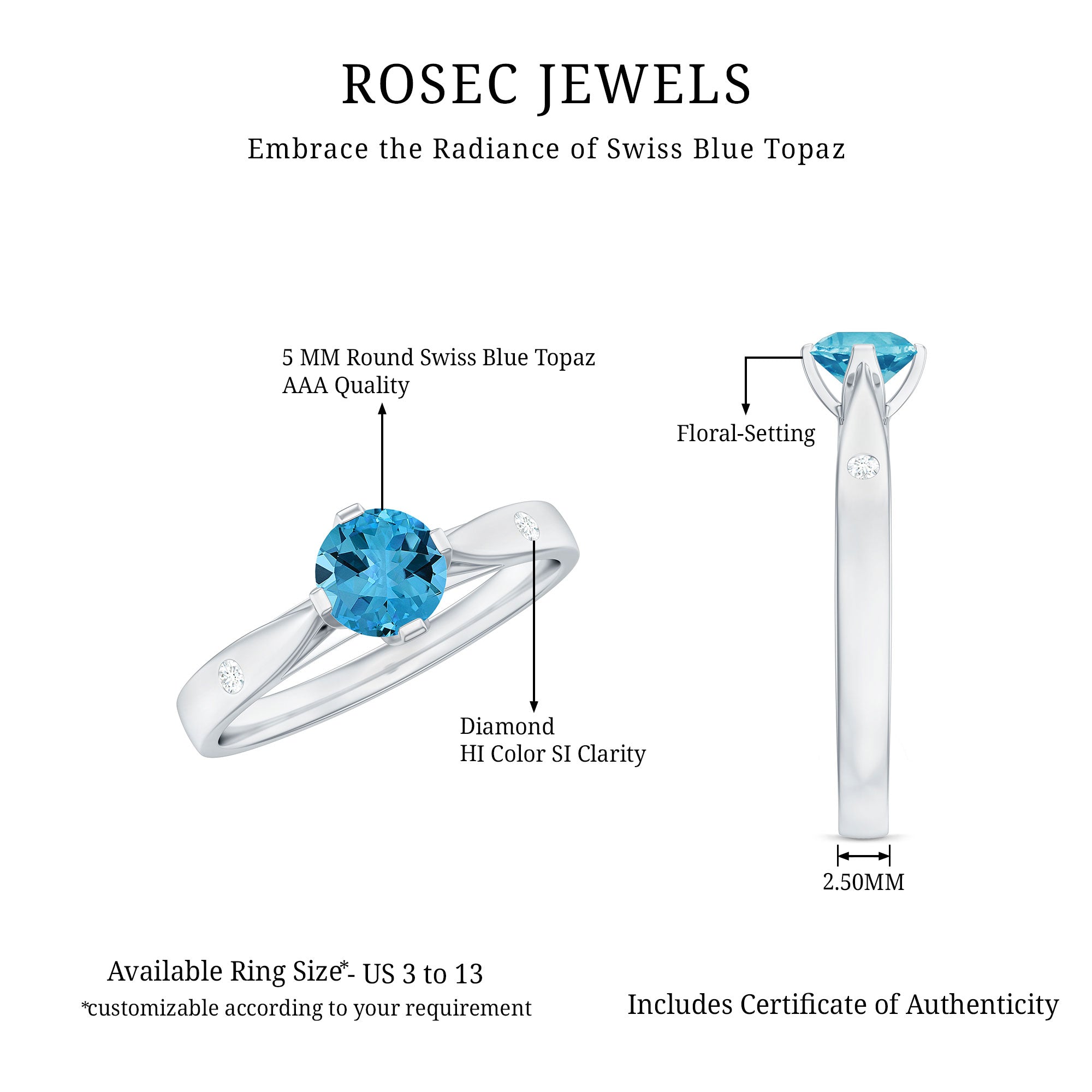 1/2 CT Solitaire Ring with Swiss Blue Topaz and Diamond for Her