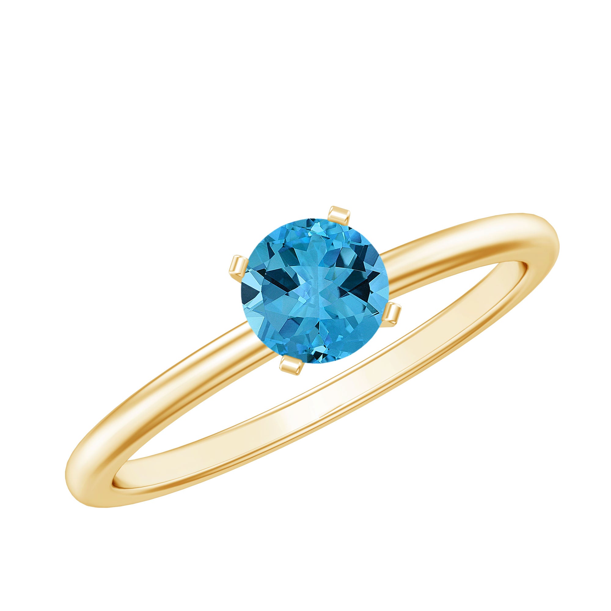 Encased with sparkling 5 MM Round Shaped Swiss Blue Topaz as Solitaire in the Prong Setting in Gold for you to look exceptional and wonderful.