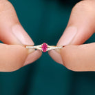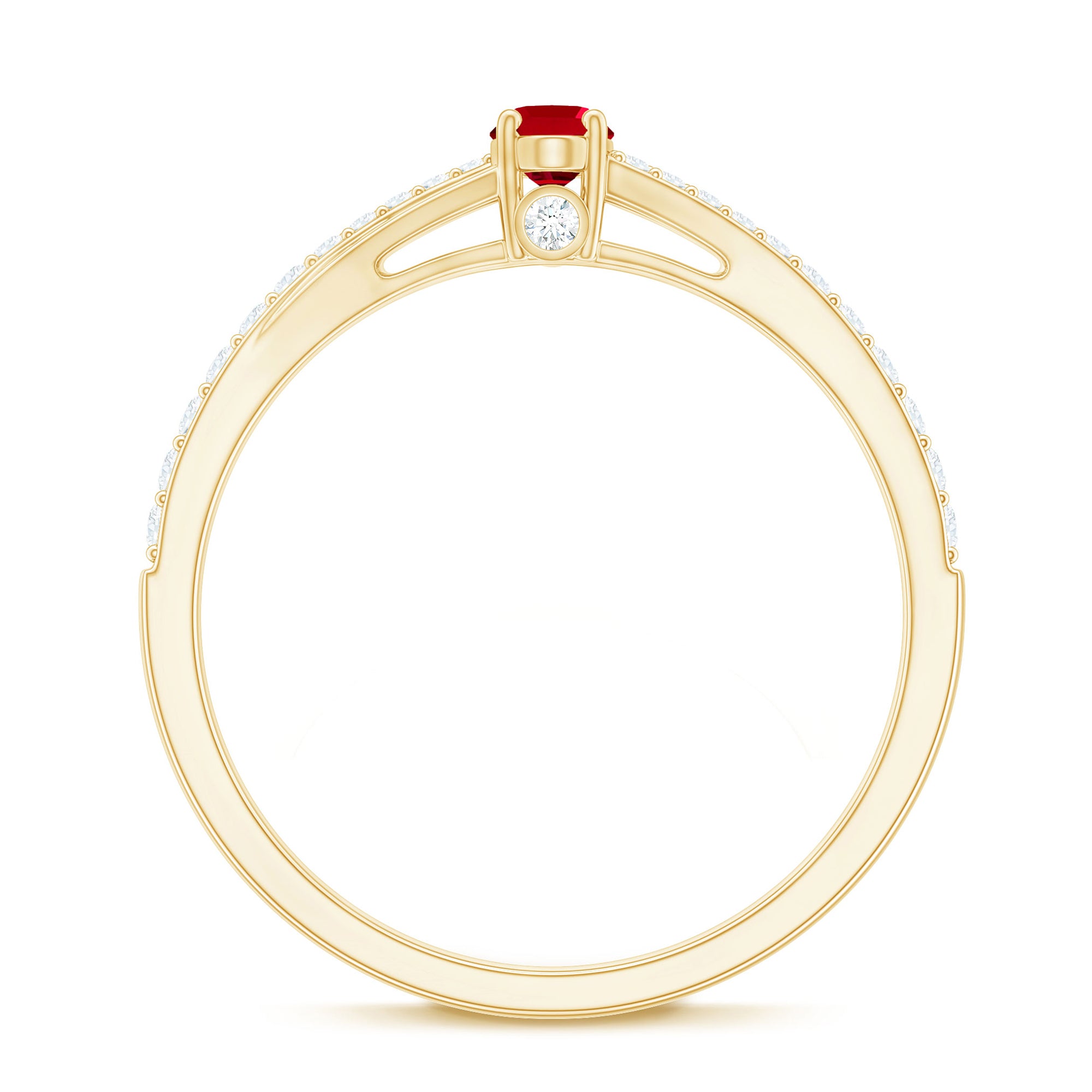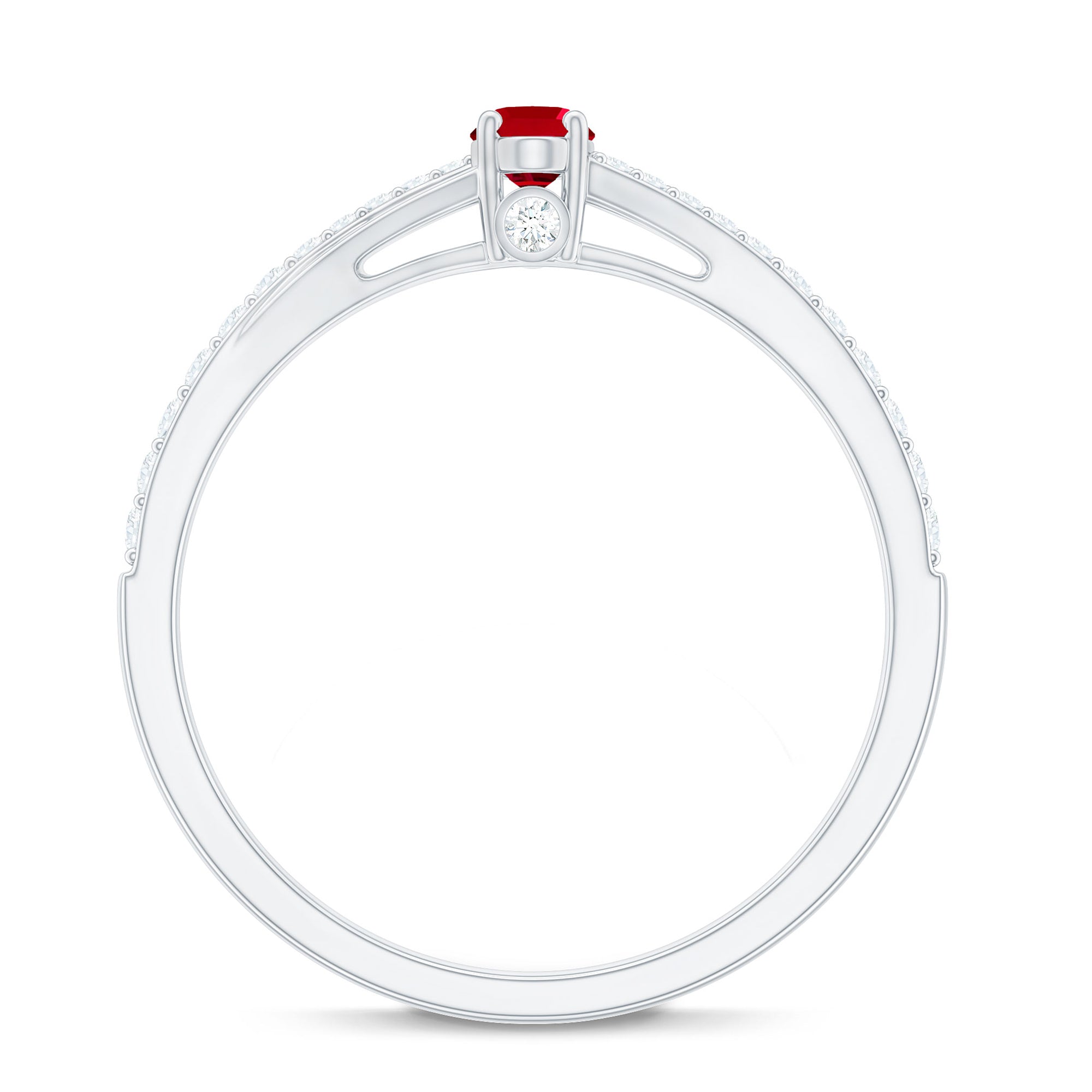 1/2 CT Split Shank Lab Grown Ruby Simple Solitaire Ring with Diamond