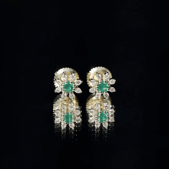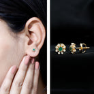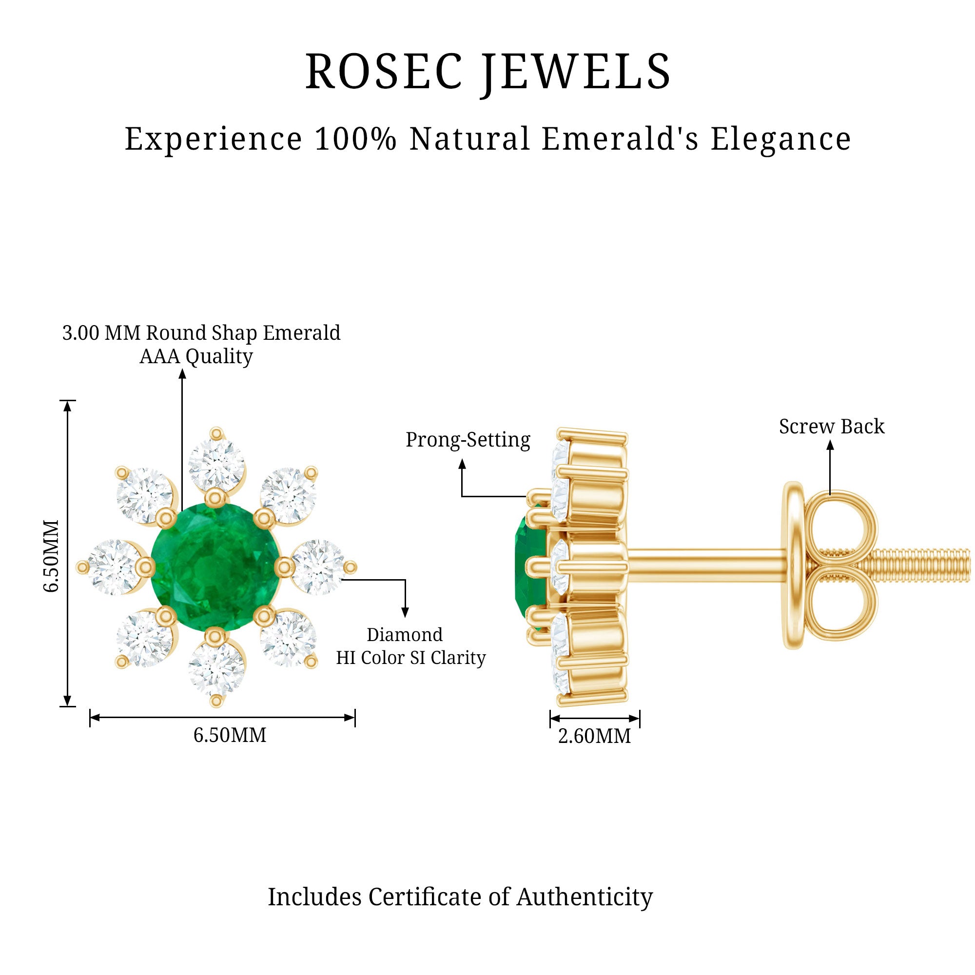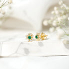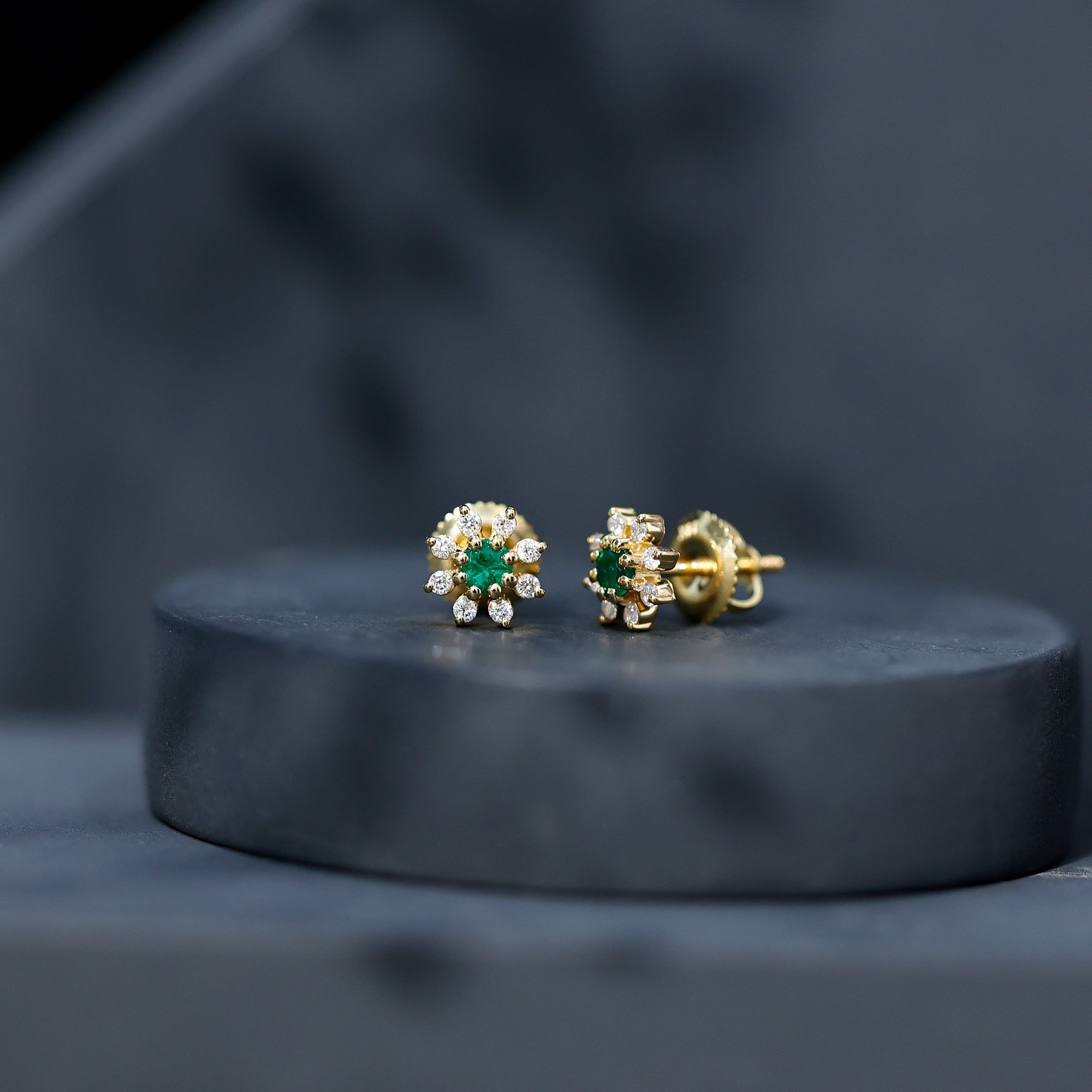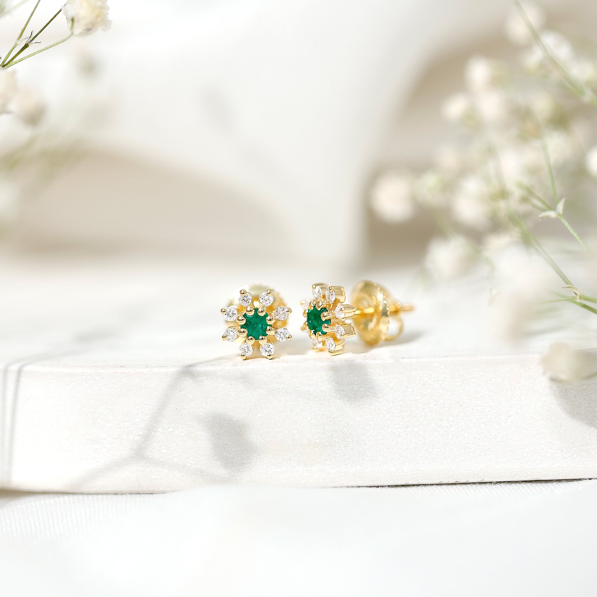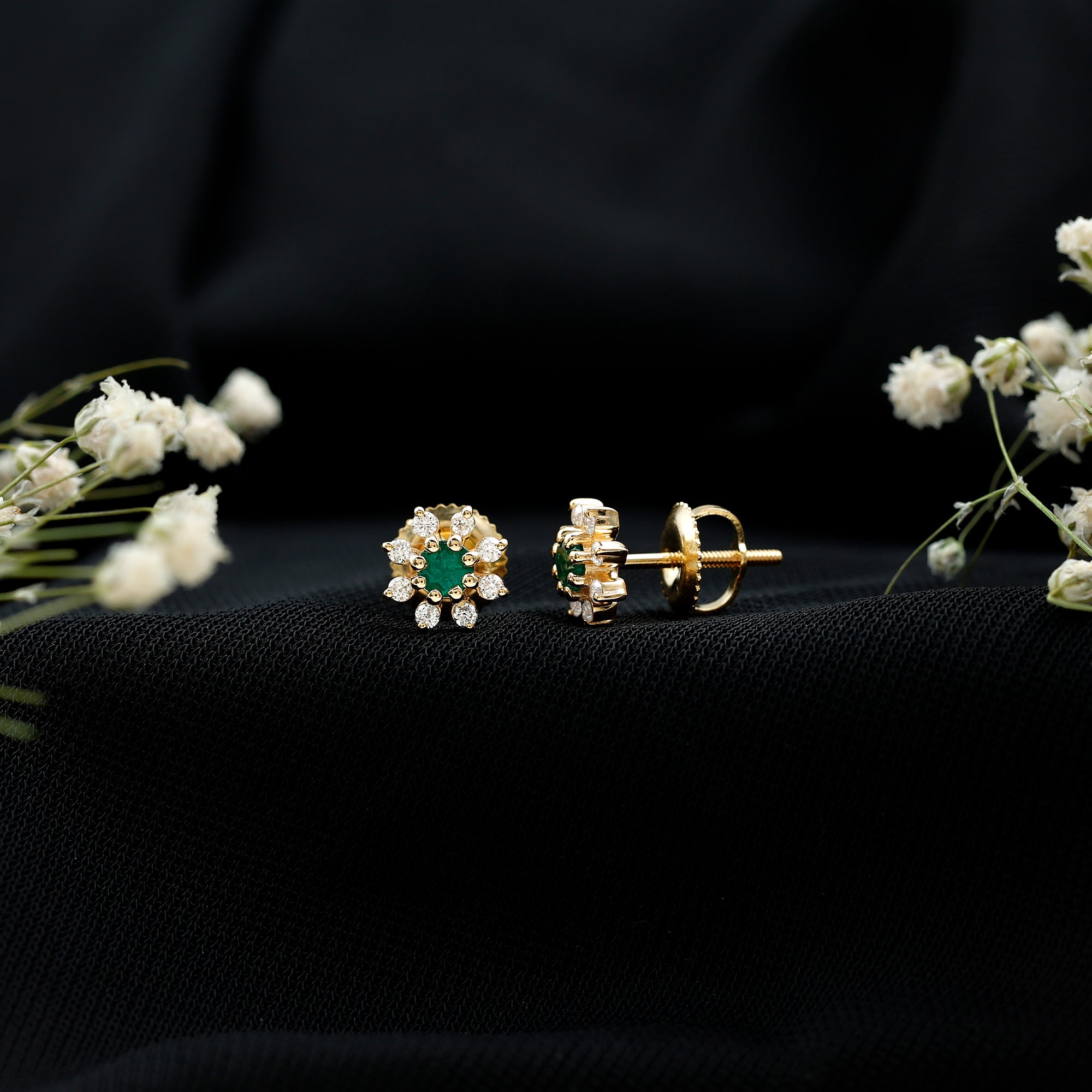 1/2 CT Statement Emerald and Diamond Floral Stud Earrings