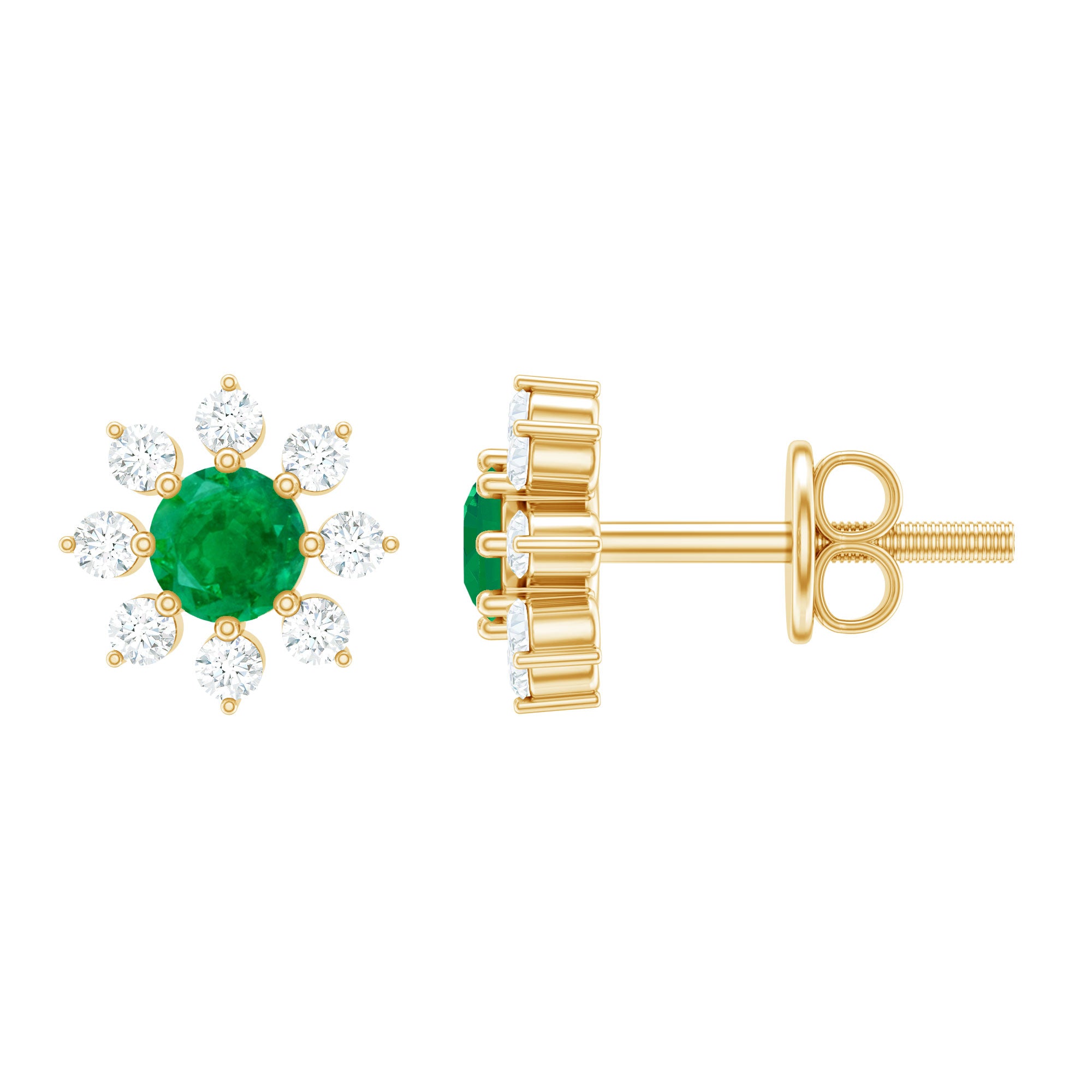 1/2 CT Statement Emerald and Diamond Floral Stud Earrings