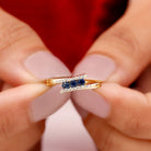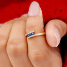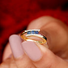 1/2 CT Three Stone Blue Sapphire Bypass Engagement Ring with Diamond