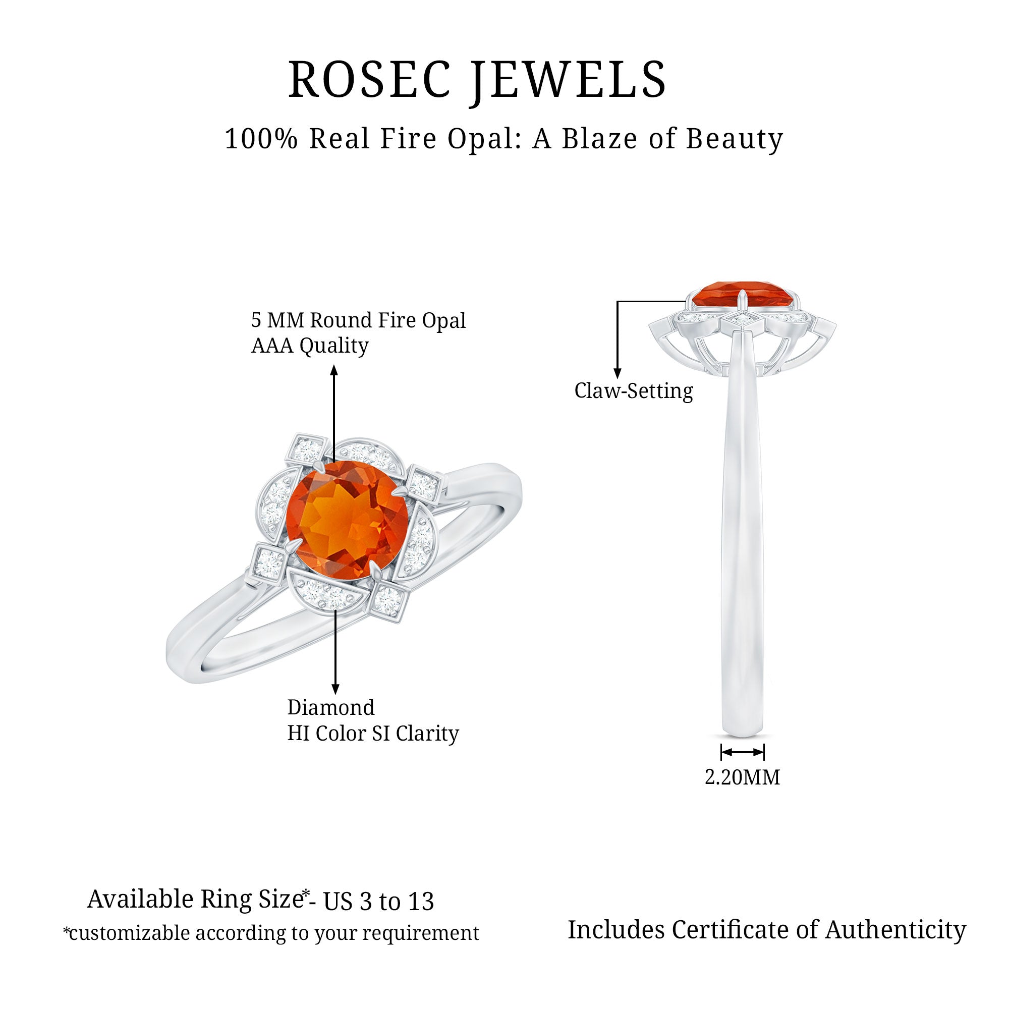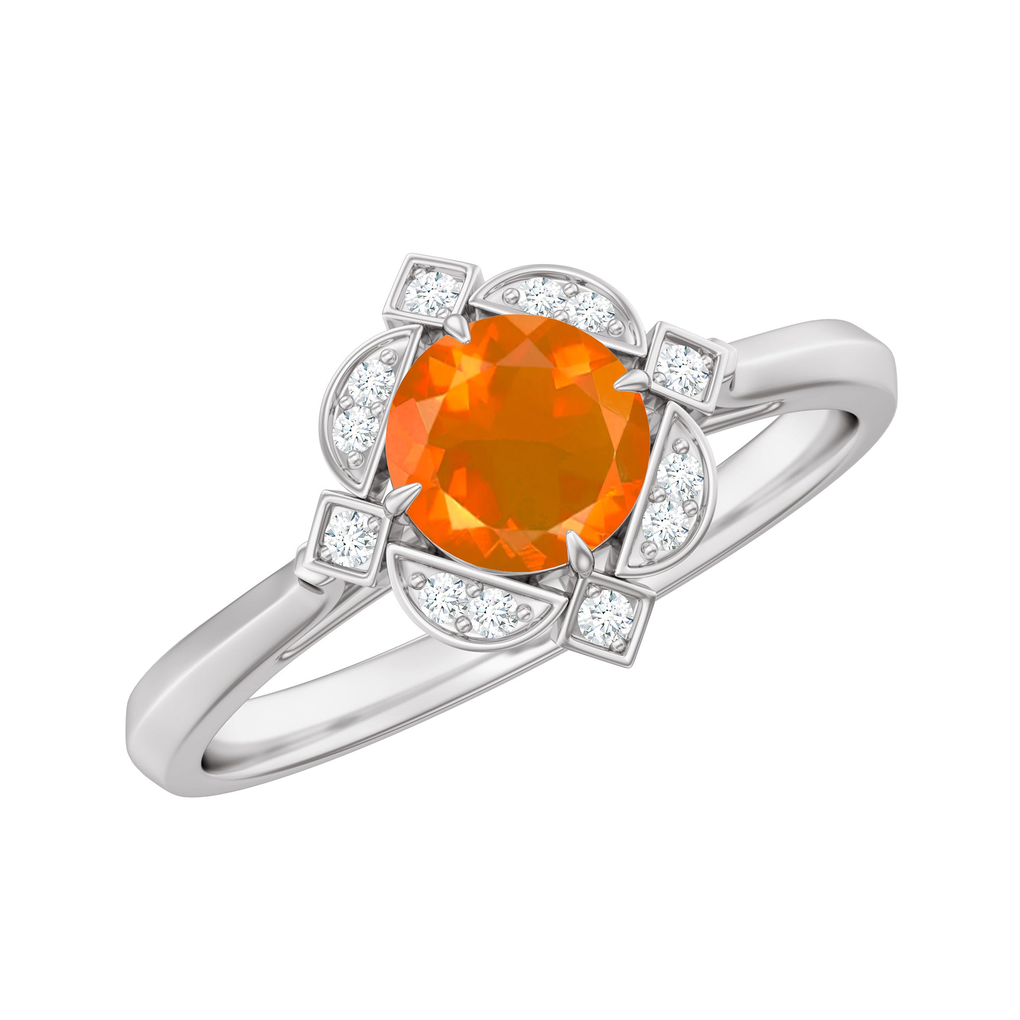 1/2 CT Vintage Fire Opal and Diamond Engagement Ring