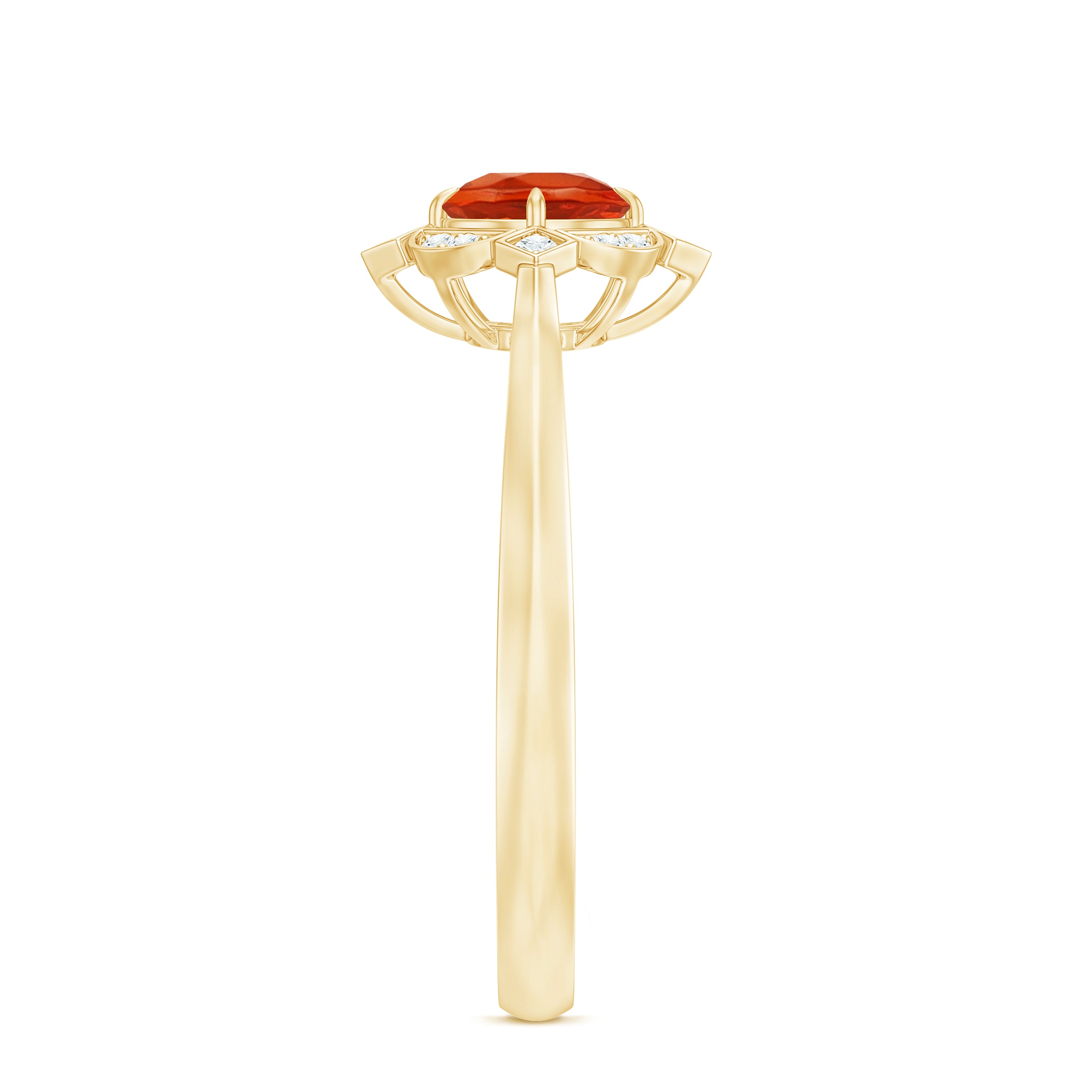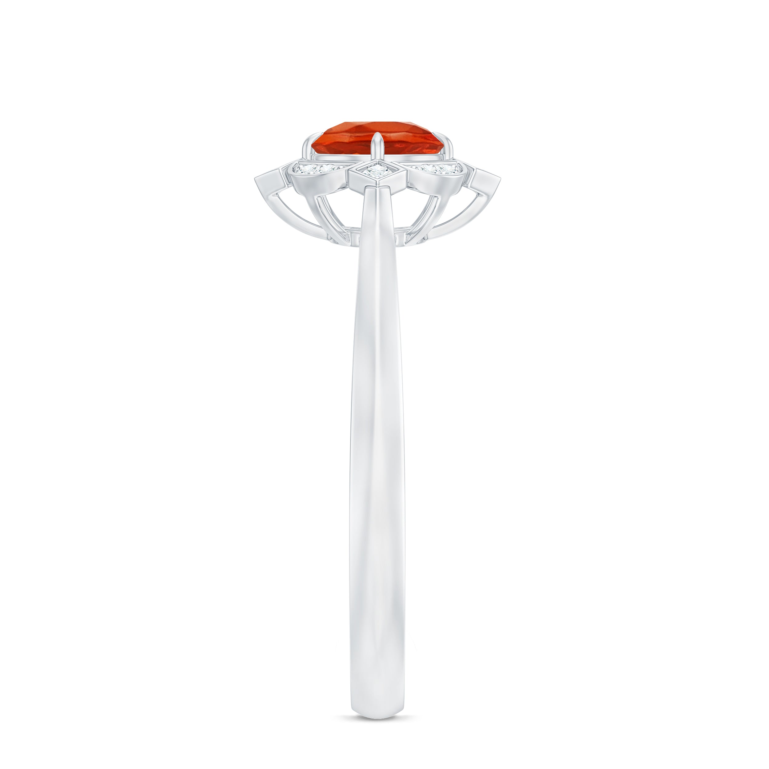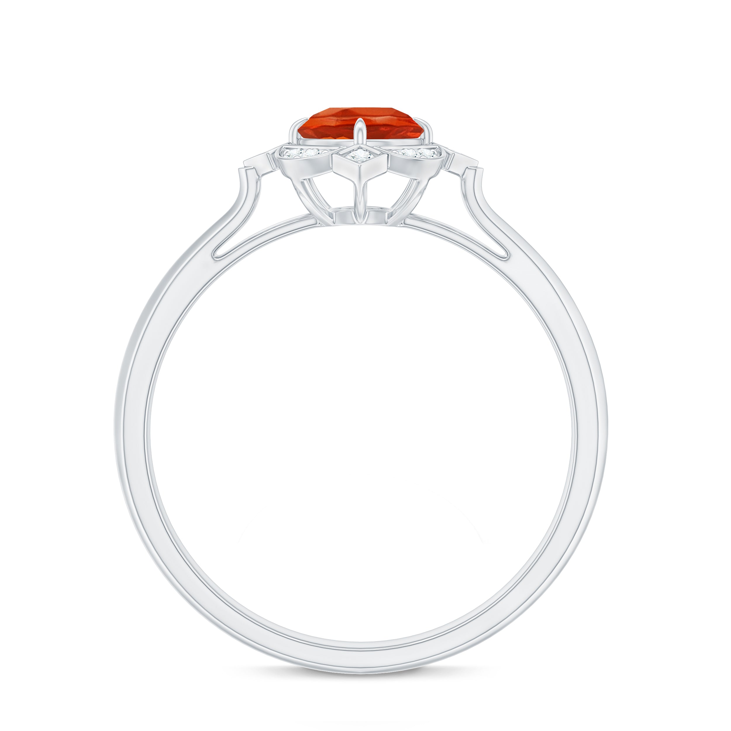 The enchanting Fire Opal Vintage Engagement Ring is blooming with Accented Diamond. This Fire Opal and Diamond Engagement Ring is crafted for sumptuous appeal. Add more charm to your occasion with this Vintage Ring, having a unique design makes this ring extremely delightful.
