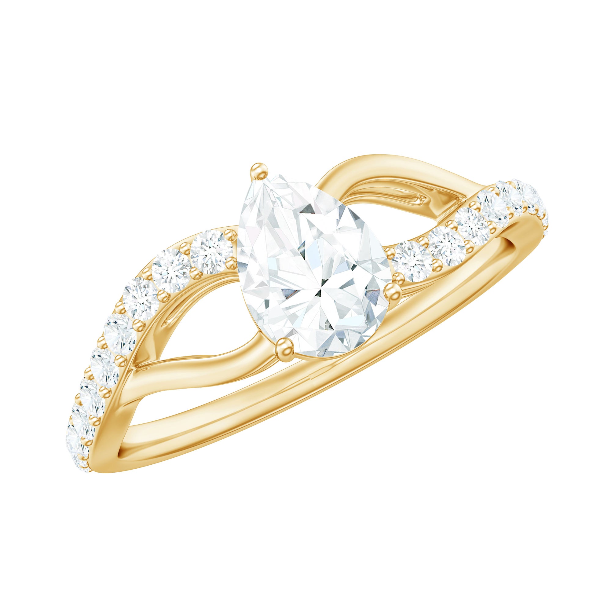 Grab attention with a ring that redefines elegance. This Moissanite Engagement Ring is crafted to shine and capture your heart. Featuring a breathtaking 5X7 MM Pear Shaped Moissanite as the focal point in 3-Prong Setting, it radiates drama, sophistication, and brilliance. Set on a modern Split Shank Band adorned with sparkling stones on one side, the design creates a stunning frame that feels both contemporary and timeless. Made with D-VS1 Quality Moissanite, this Solitaire Engagement Ring provides clarity and sparkle that are hard to miss, because love deserves nothing less than extraordinary. Beautifully packaged in a chic jewelry box, this Pear Shaped Engagement Ring is ideal not just for proposals but also for anniversaries, milestones, and those unforgettable moments. Available in US sizes 3 to 13, this Teardrop Engagement Ring is designed to fit every love story and every hand that proudly wears it. From every angle, this Split Shank Engagement Ring is a masterpiece that radiates beauty, confidence, and purpose. So go ahead, make a bold statement, celebrate your journey, and let this beauty remind you daily of your unique love.