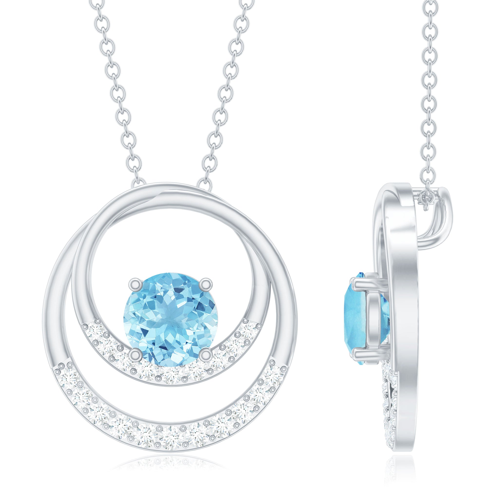 1.25 CT Aquamarine and Diamond Circle Pendant Necklace