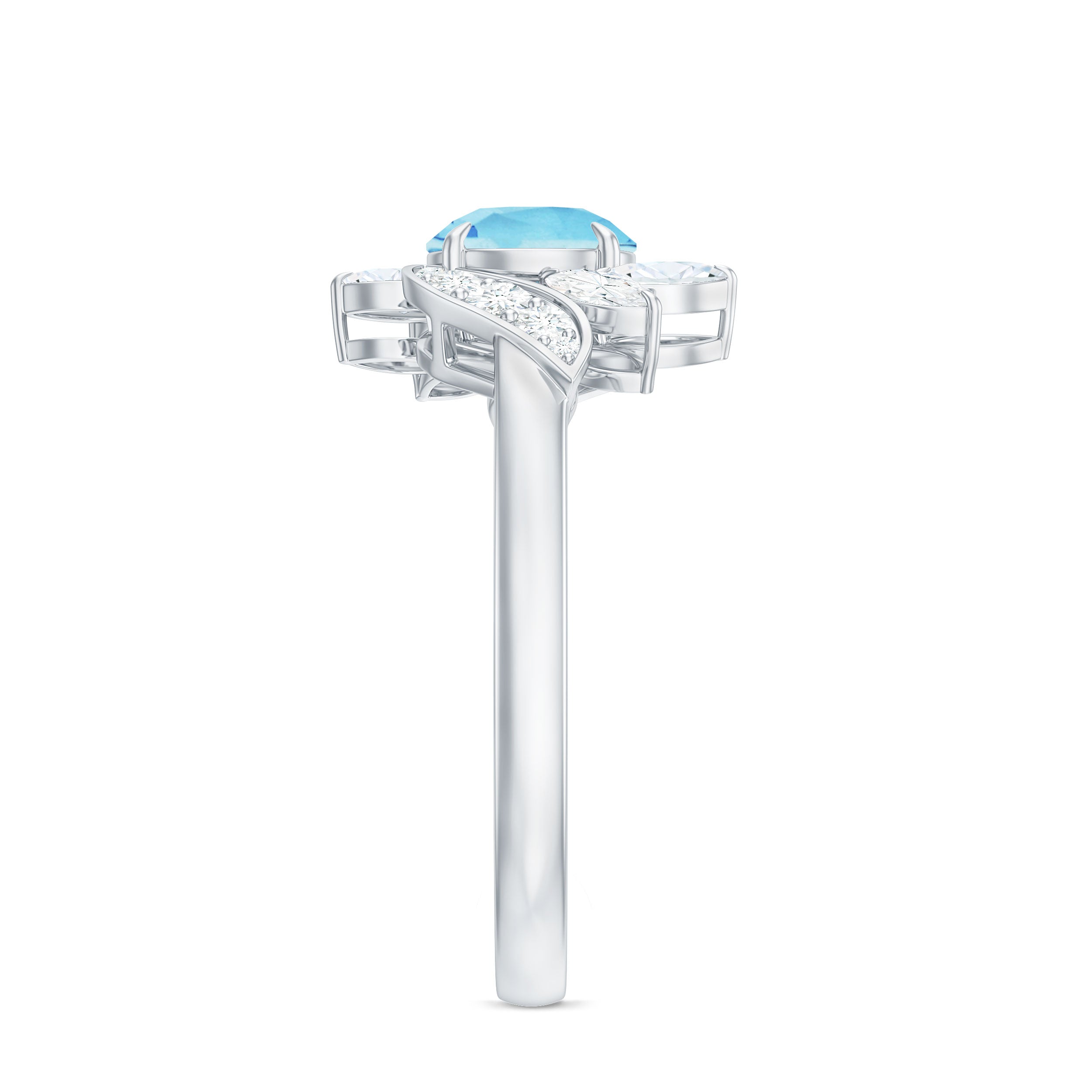 1.25 CT Aquamarine and Diamond Flower Cocktail Ring