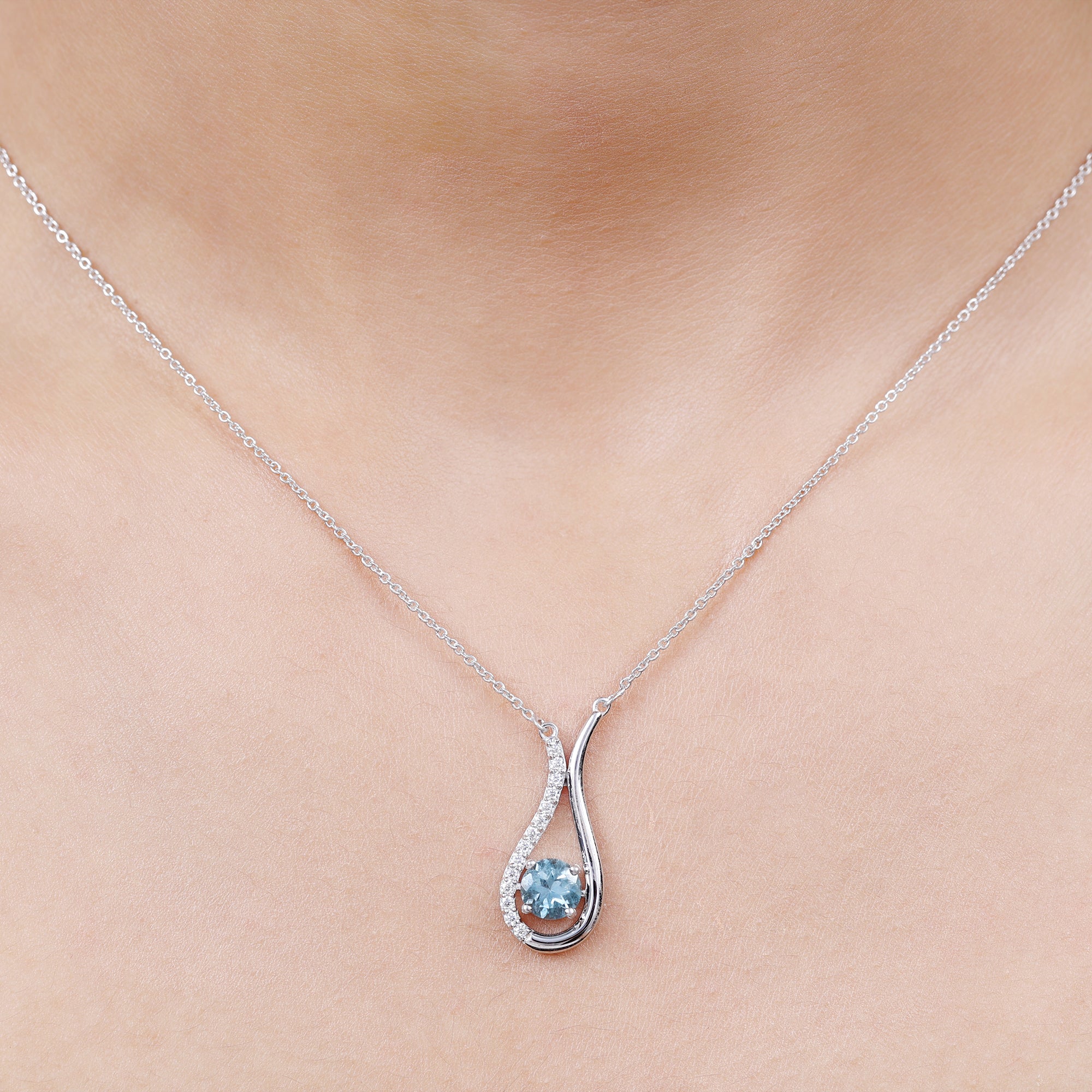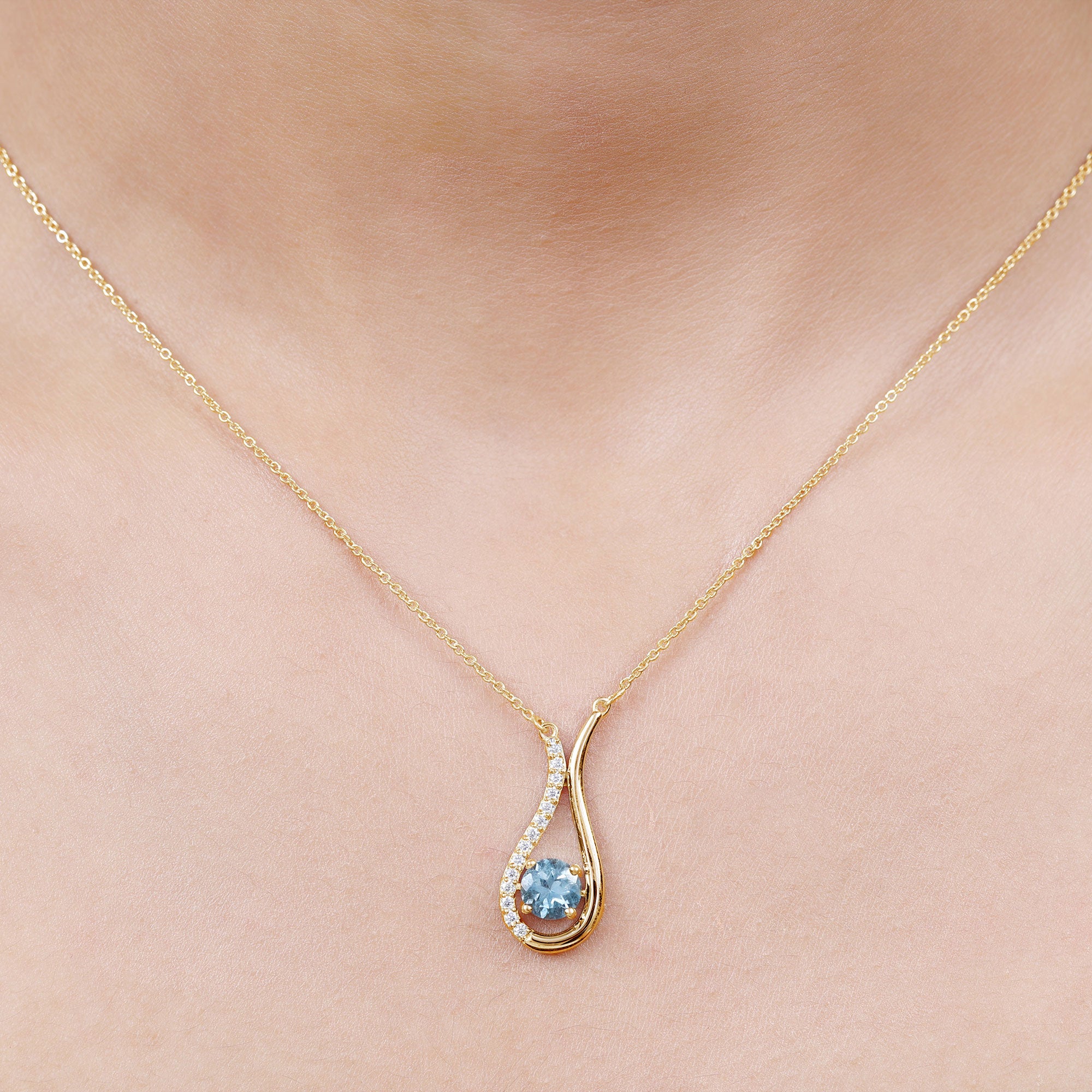 This Teardrop Pendant Necklace is embellished with Round Shape Aquamarine is set as Solitaire with Brilliant Round Shape Diamonds, crafted in a Solid Gold.