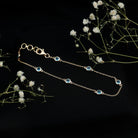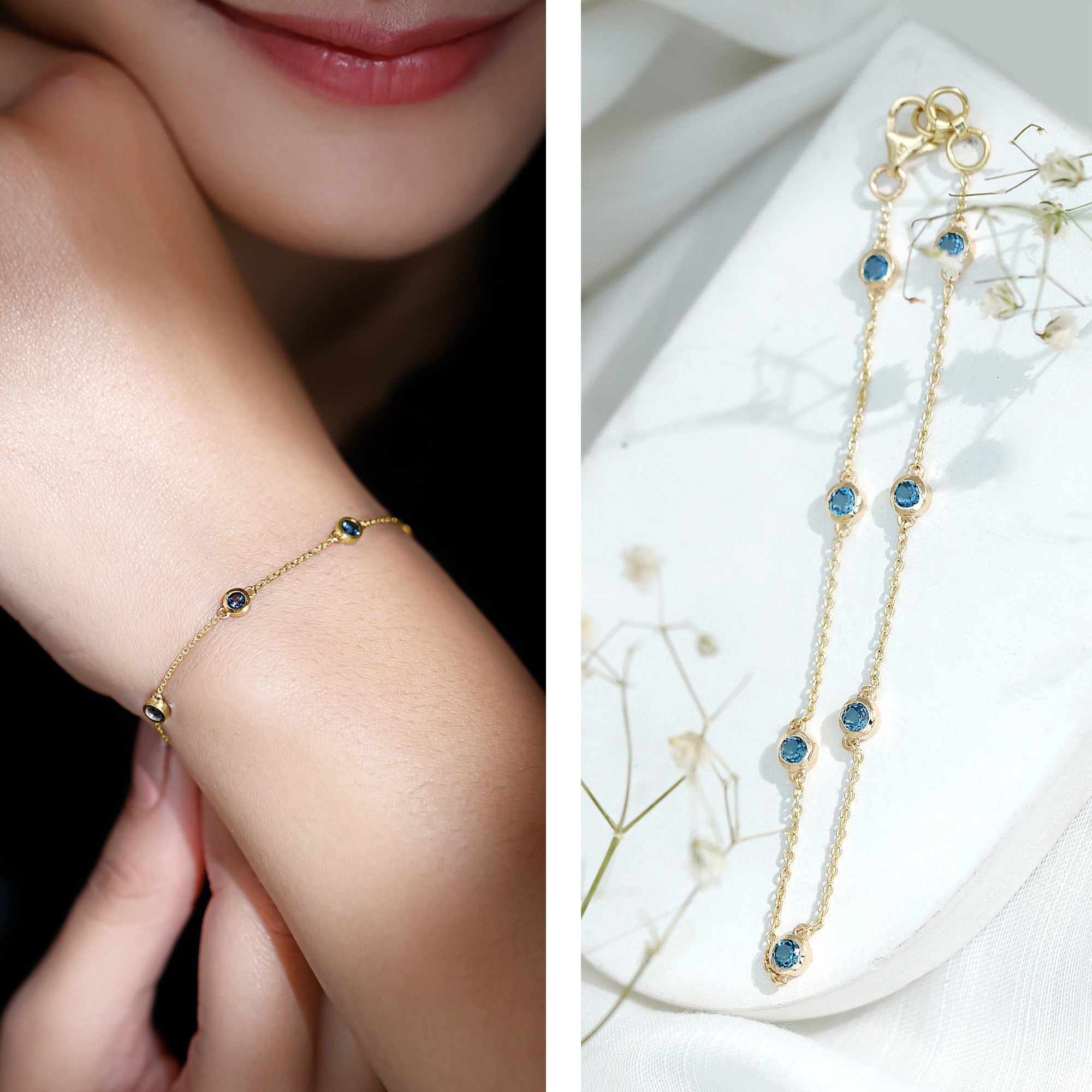 Express your love and make her happy by giving her this glossy London Blue Topaz Bracelet this Valentine. This Gold Chain Bracelet will magnify the beauty of your wrist and make your wrist glossy. This Eternity Bracelet is perfectly composed of Solid Gold and decorated with Round Cut London Blue Topaz in a Bezel Setting over Station Chain.