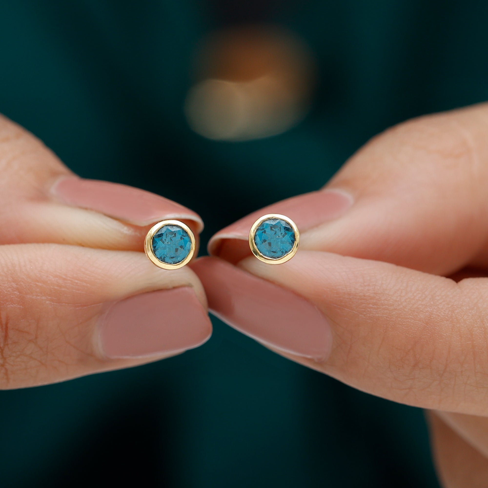 Elevate your everyday style with these elegant London Blue Topaz Solitaire Stud Earrings. Featuring round cut London Blue Topaz stones in a bezel setting, this minimalistic pair adds a touch of sophistication to any outfit. Crafted with solid gold, these earrings are perfect for those who appreciate subtle beauty and effortless comfort.