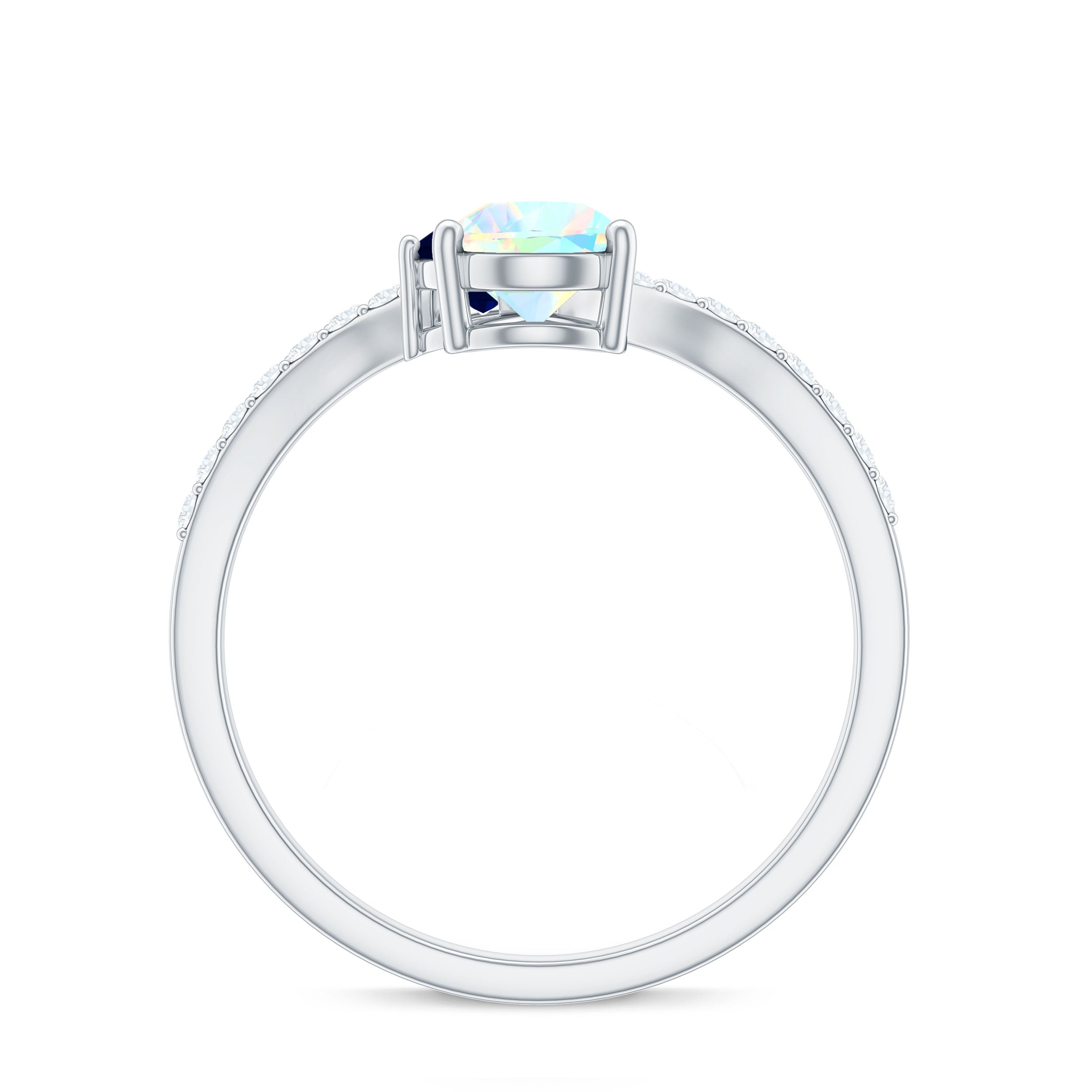 1.25 CT Blue Sapphire and Ethiopian Opal Minimal Chevron Ring with Moissanite