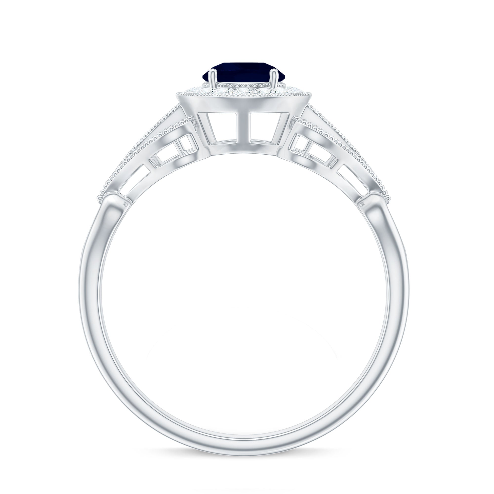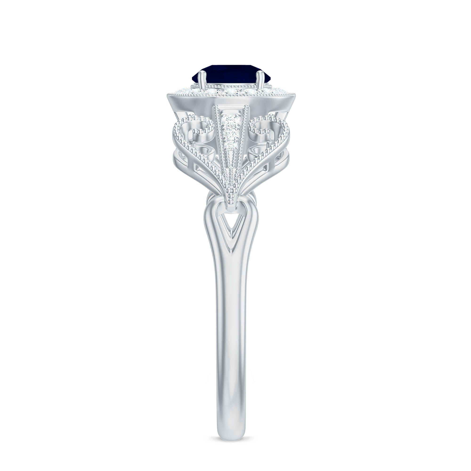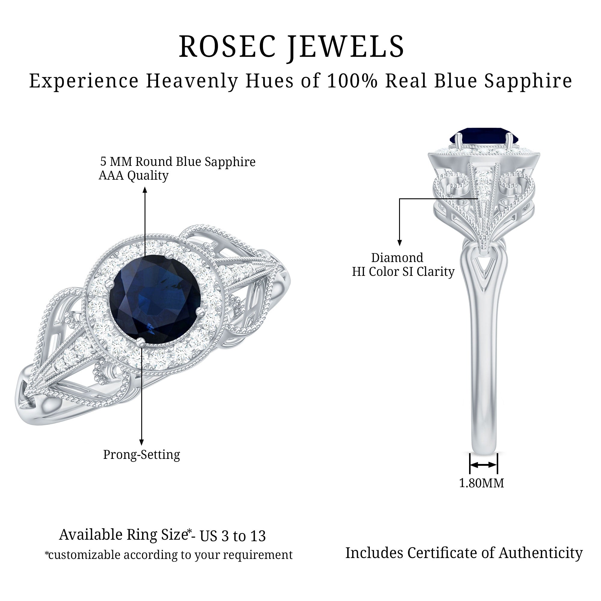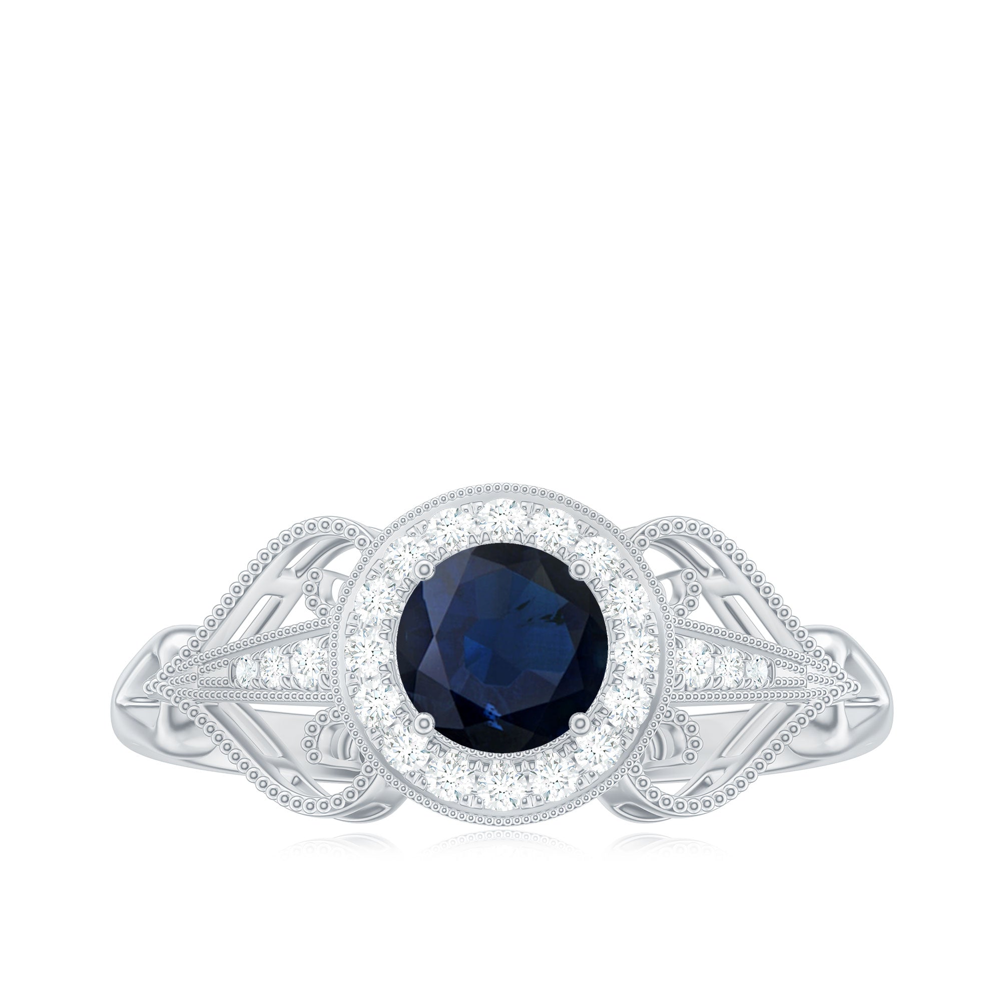 1.25 CT Blue Sapphire Solitaire with Diamond Milgrain Engagement Ring