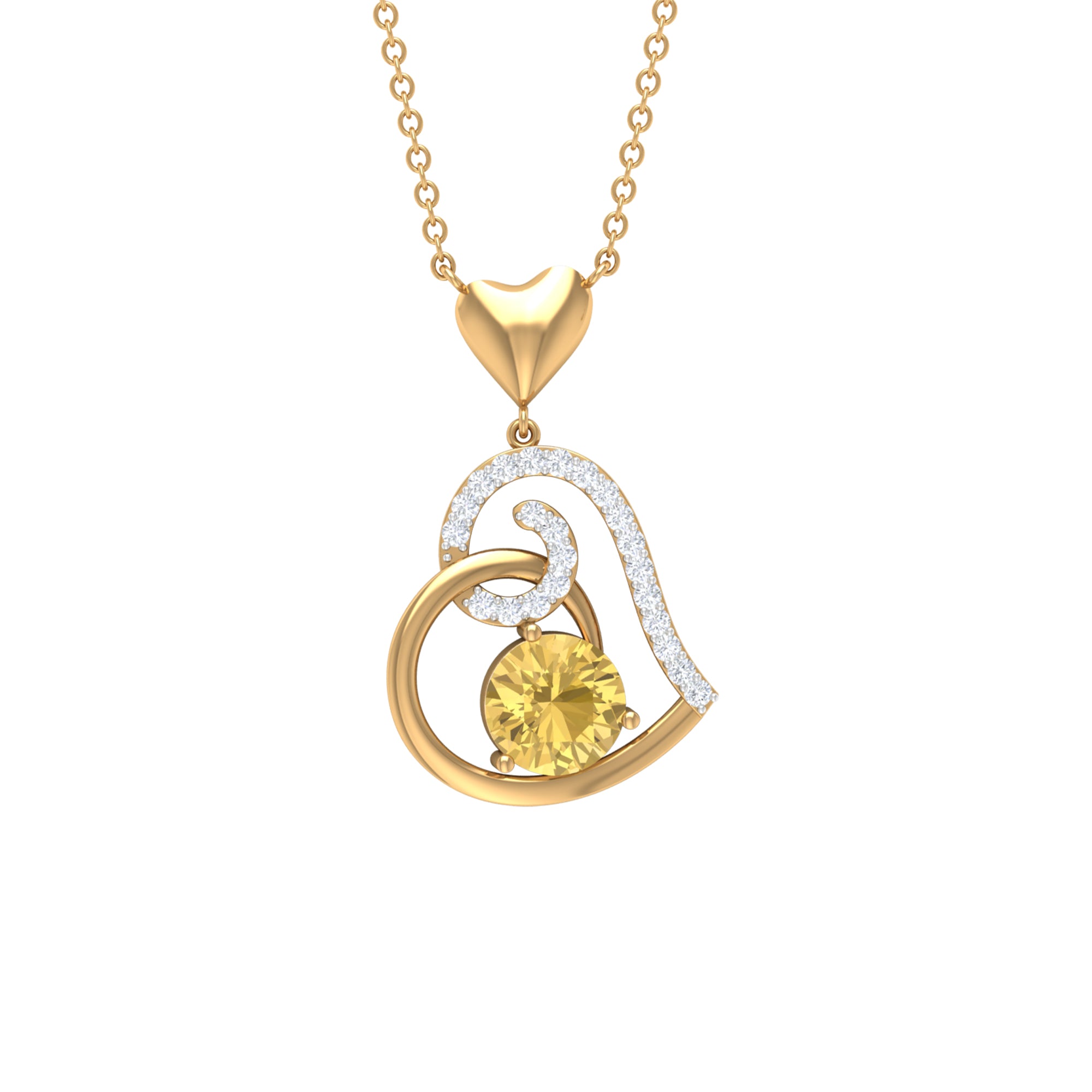 Be Dazzle with these beautiful Heart Drop Pendant embellished with Round Shape Citrine as Solitaire in 3 Prong Setting and Round Shape Diamond in Prong Setting, Crafted in Solid Gold.